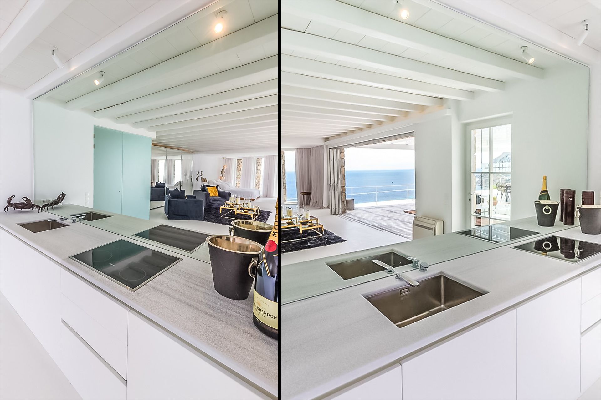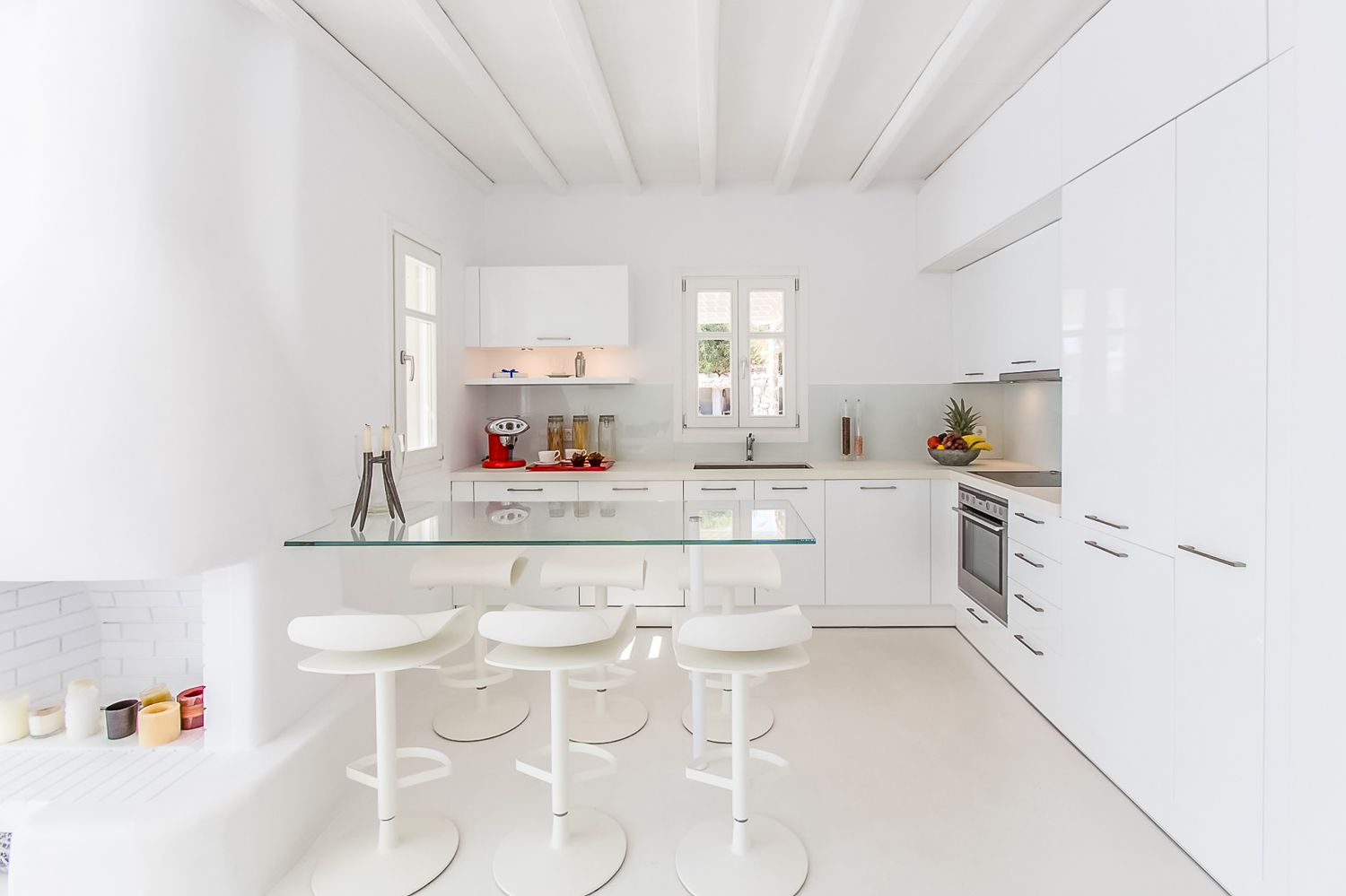 The villa has been refurnished completely last year with top standard and modern furniture respecting the Myconian style.
