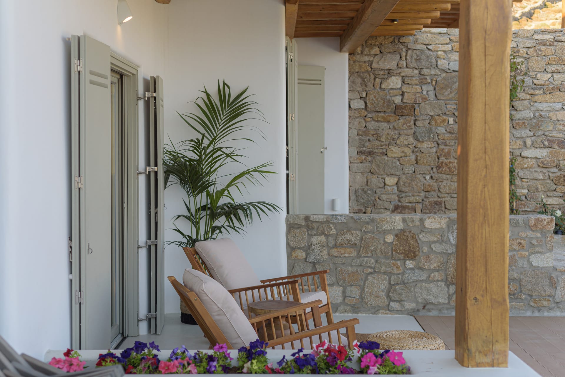 Orion is a totally independent villa of 210 m2 size and consists of 5 bedrooms with private bathrooms, a separate guest WC on the ground floor, and a staff room by the pool, with a private WC.