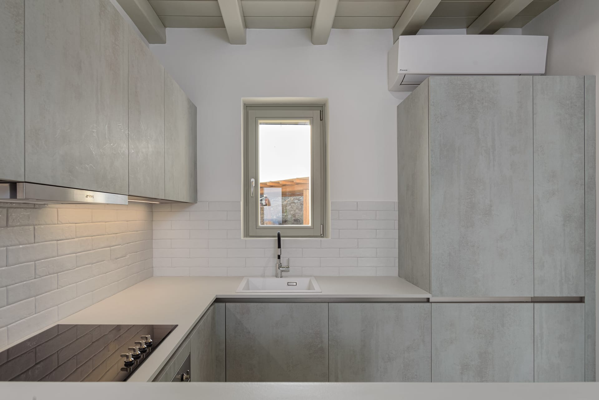 Outdoor area : Entrance floor: well-desinged private pool, loungers, outdoor kitchenette with built in-BBQ,fridge, bar with high chairs, outdoor dining area [8 seats] outdoor shower