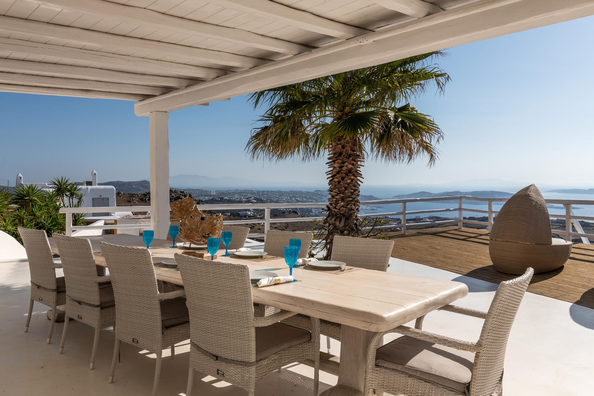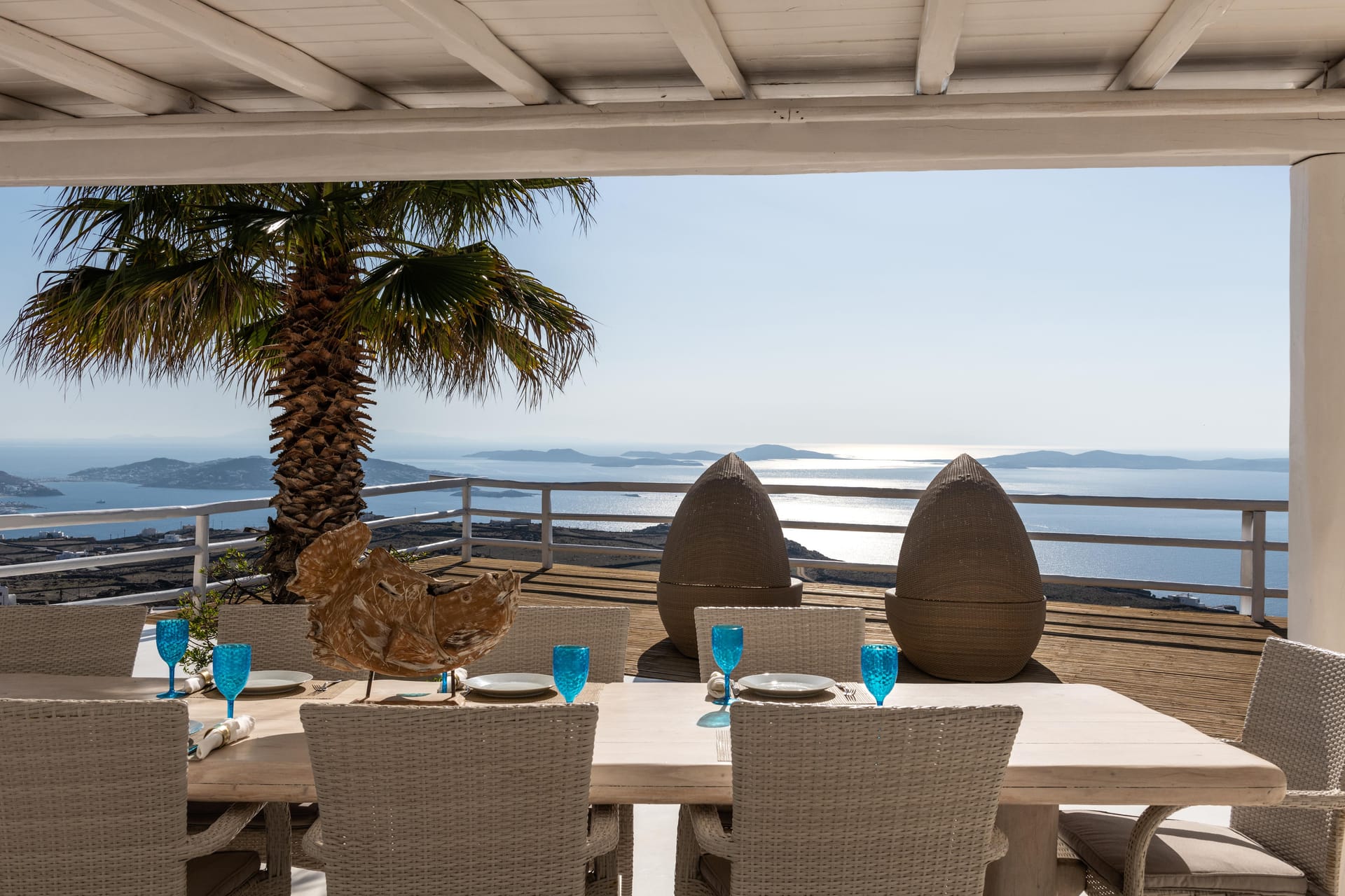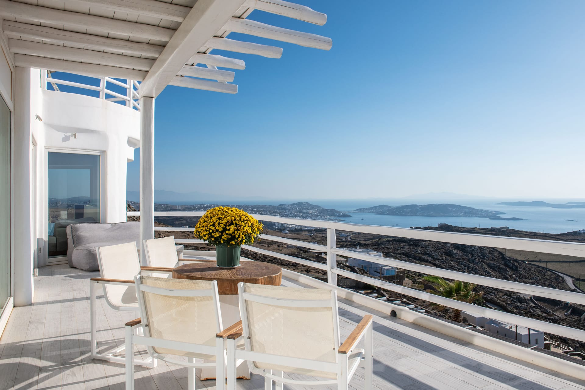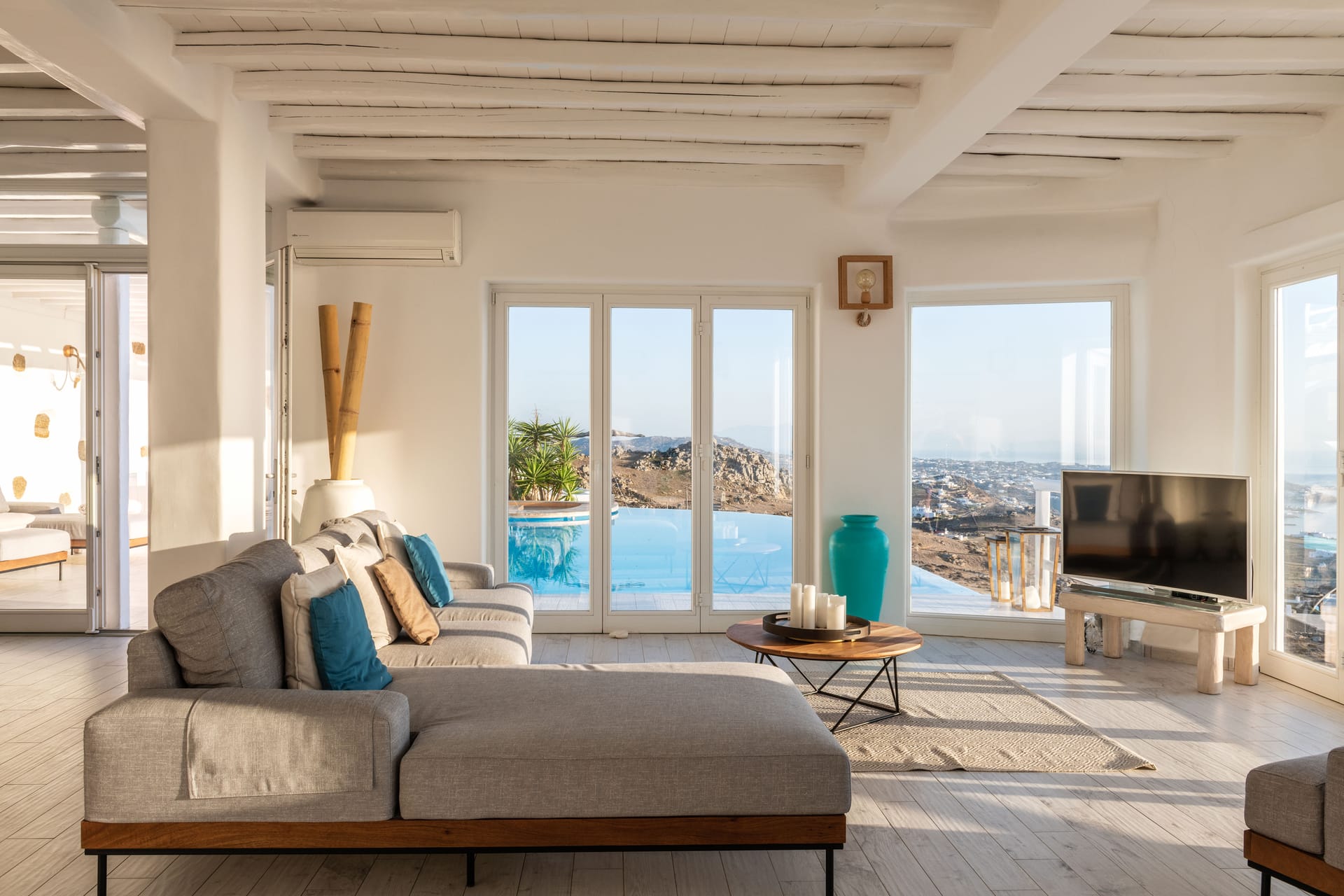 - Living room, 100 sq.m, with 270-degree Aegean views via floor-to-ceiling windows