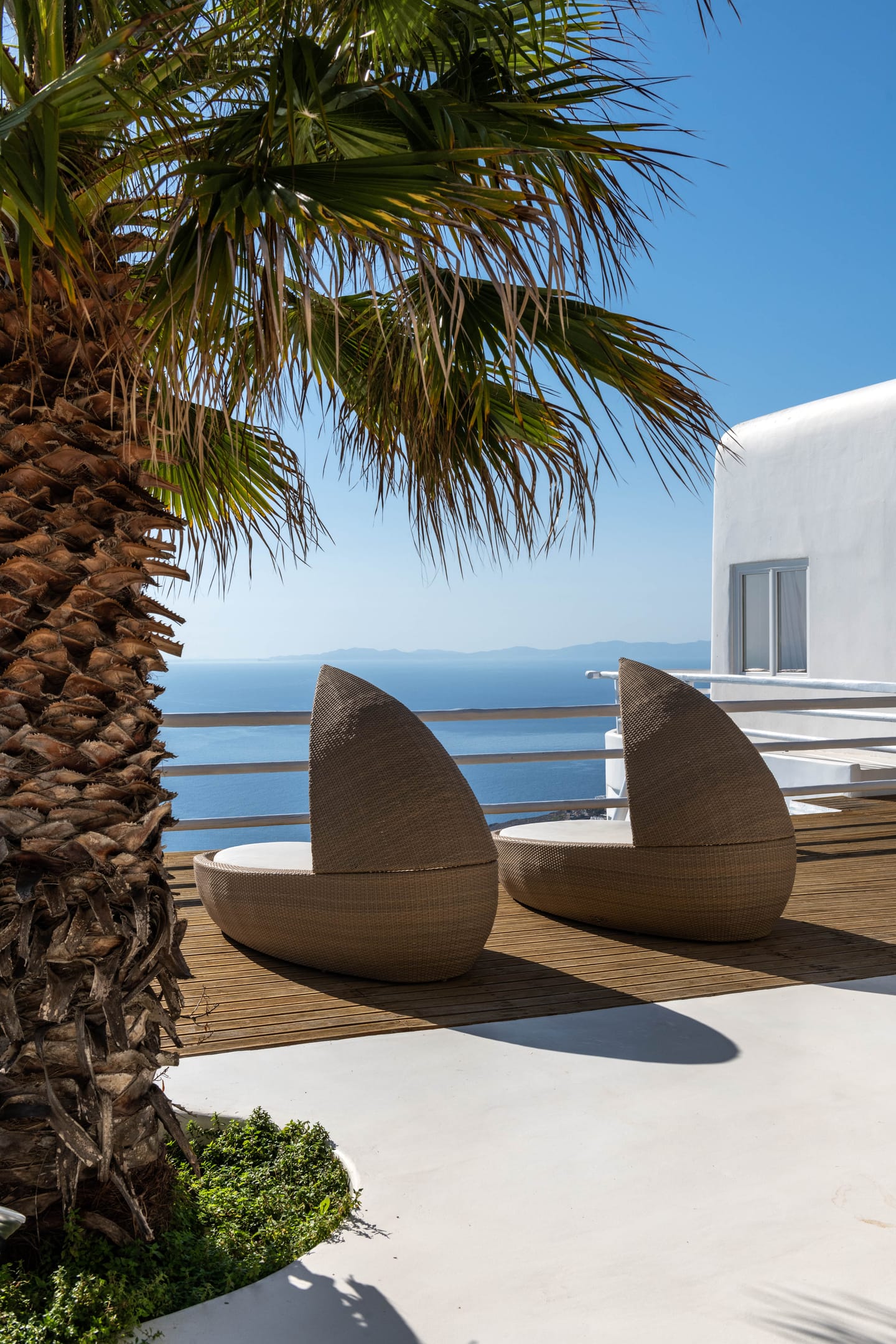 - Sunbeds with views of the Aegean