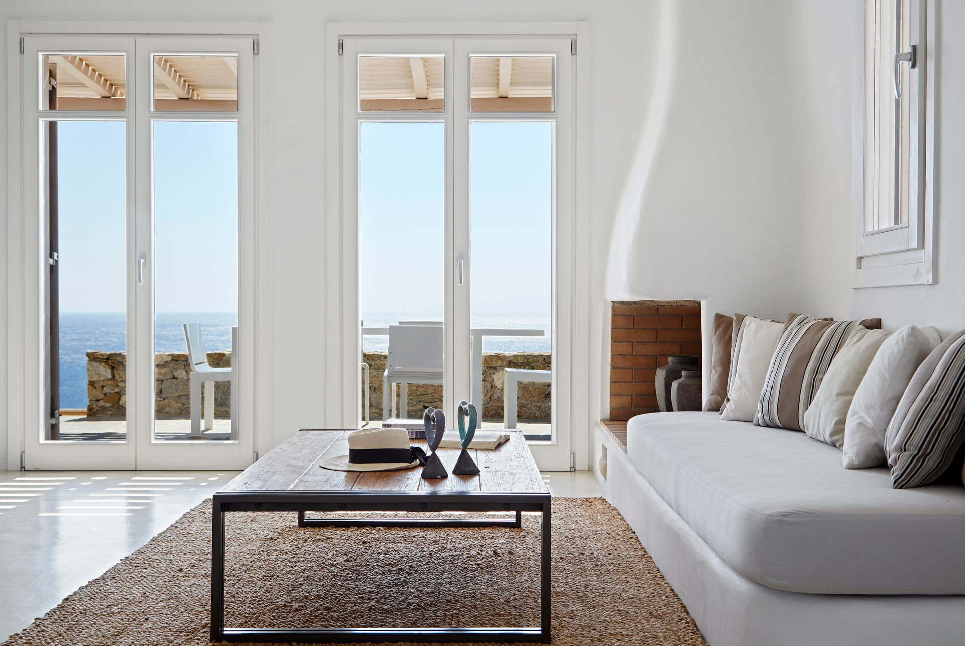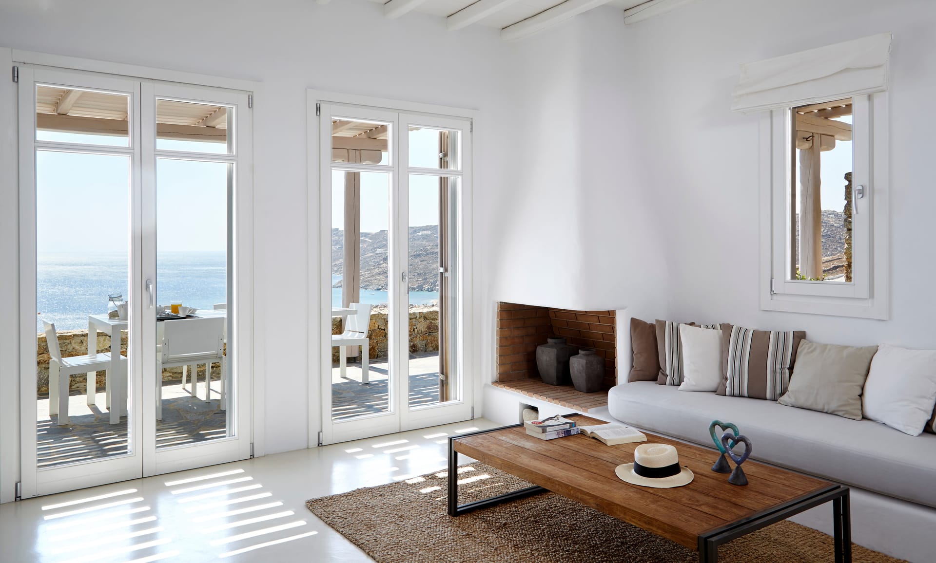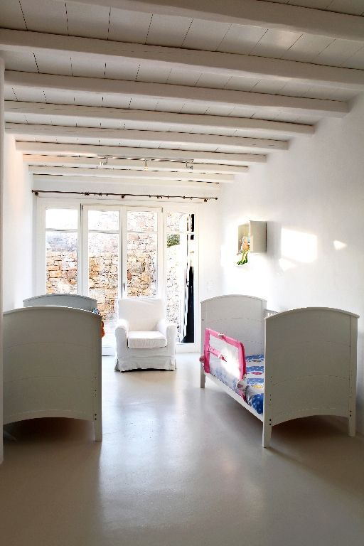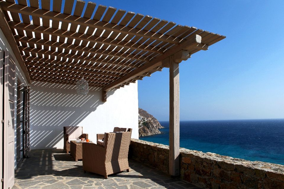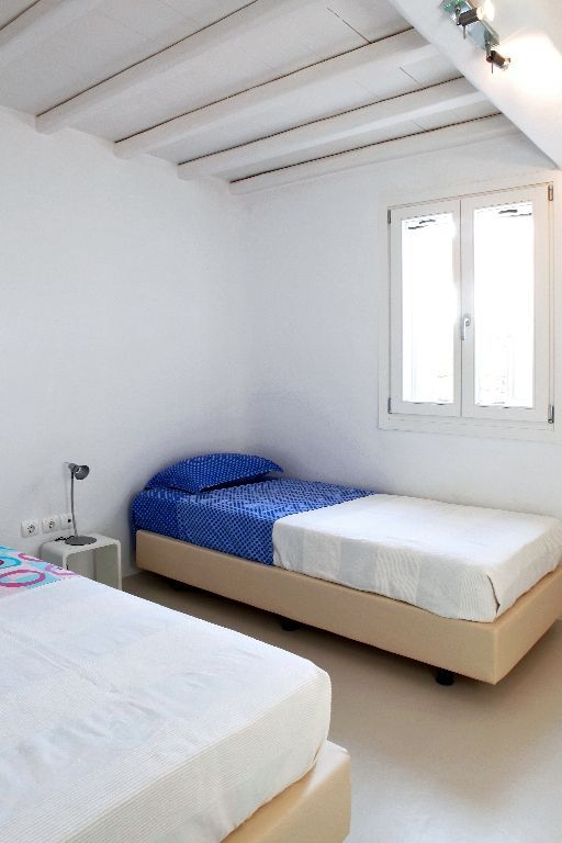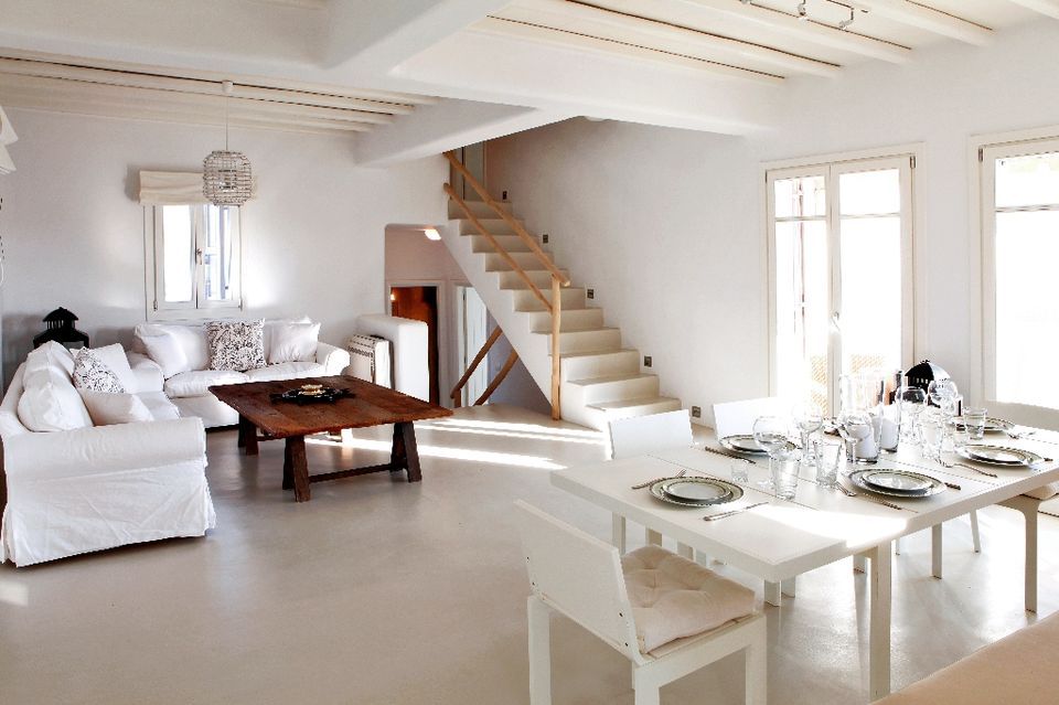 This white Mykonos Villa is spread in 3 levels.