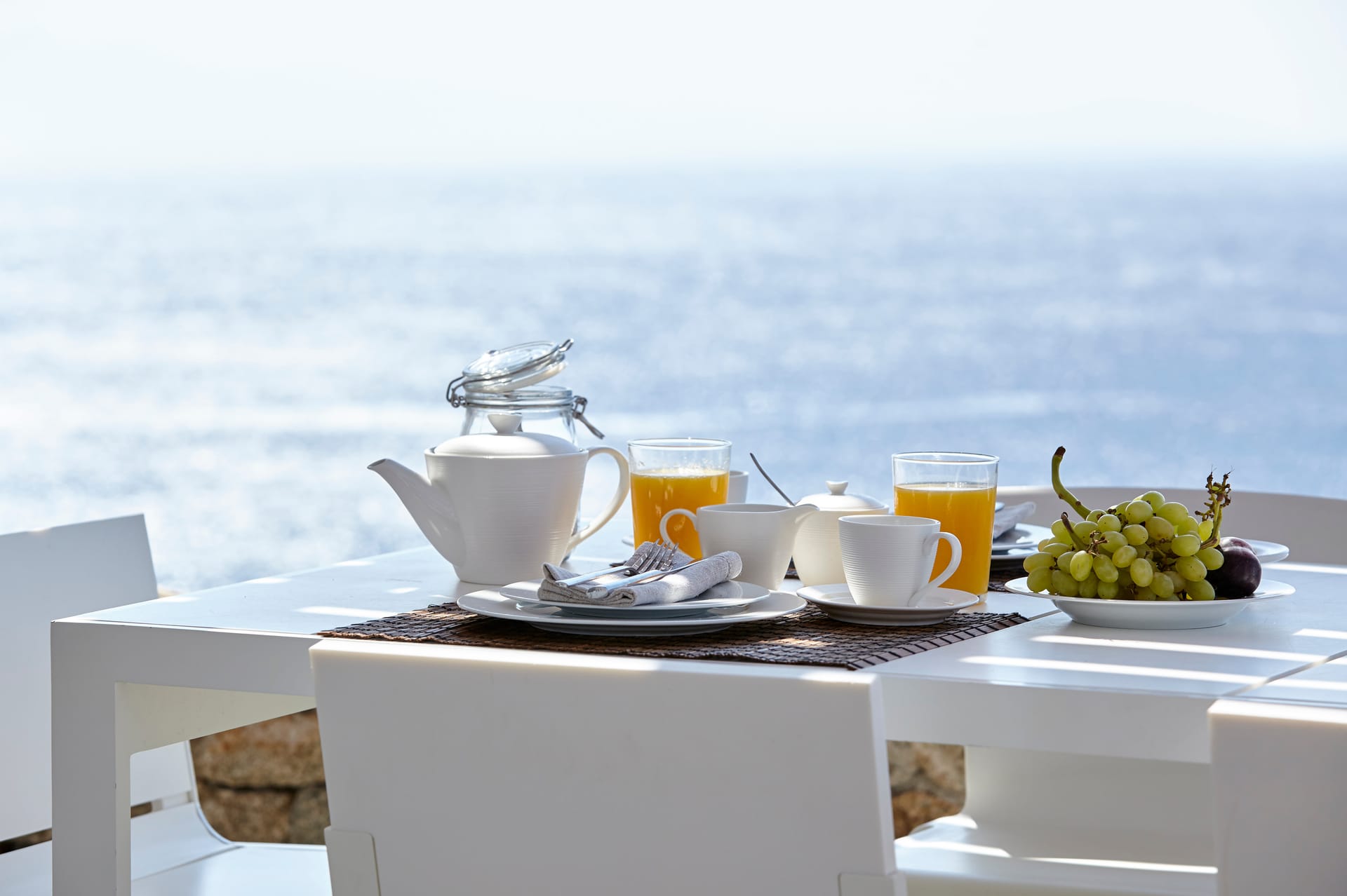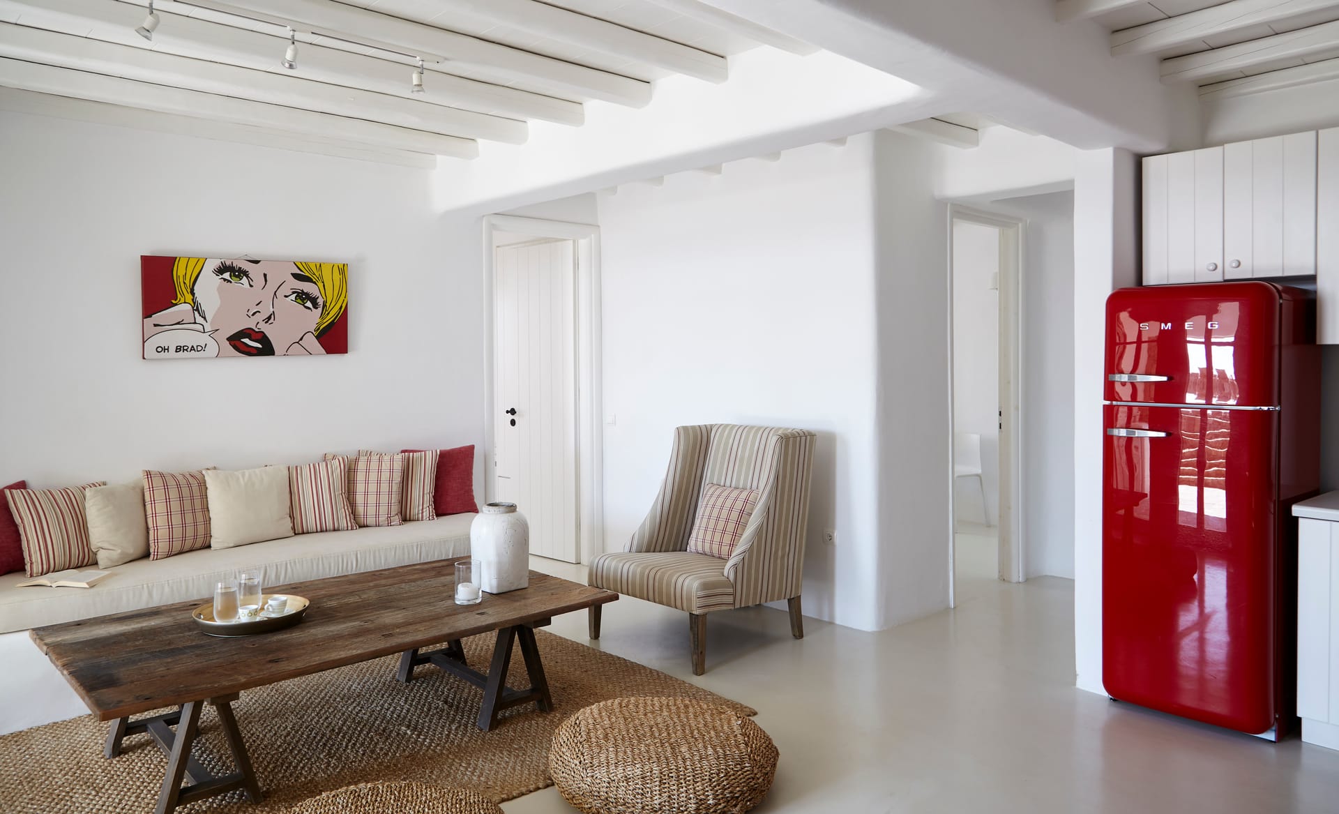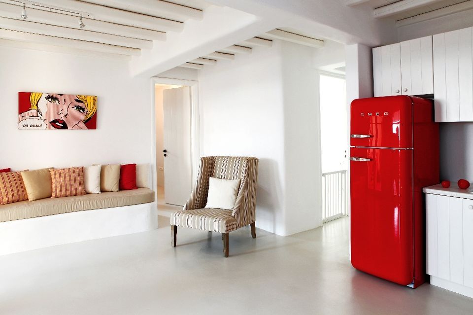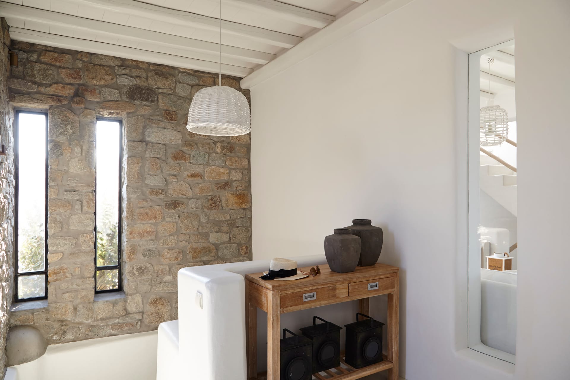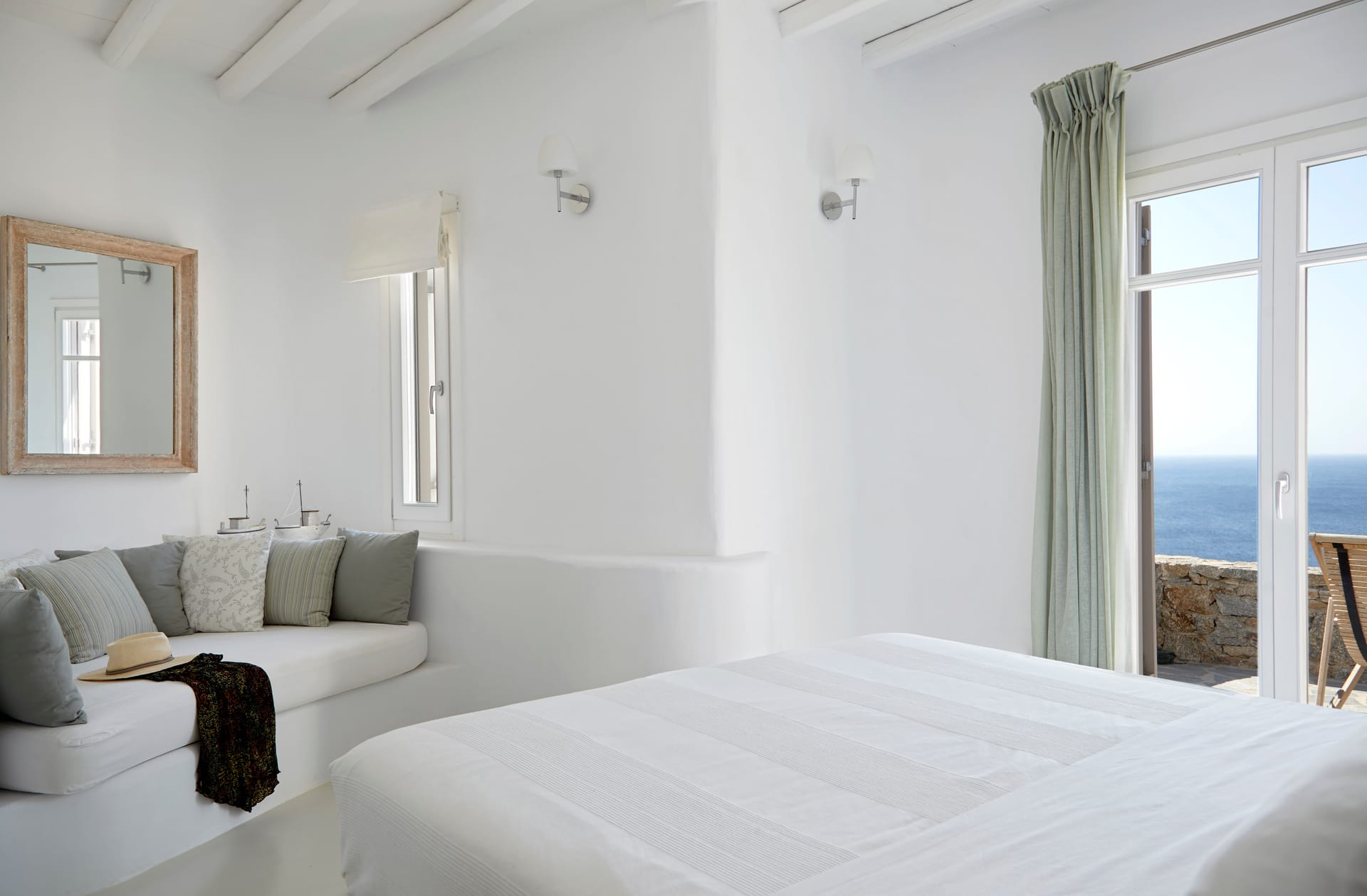 This white Mykonos Villa is spread in 3 levels.