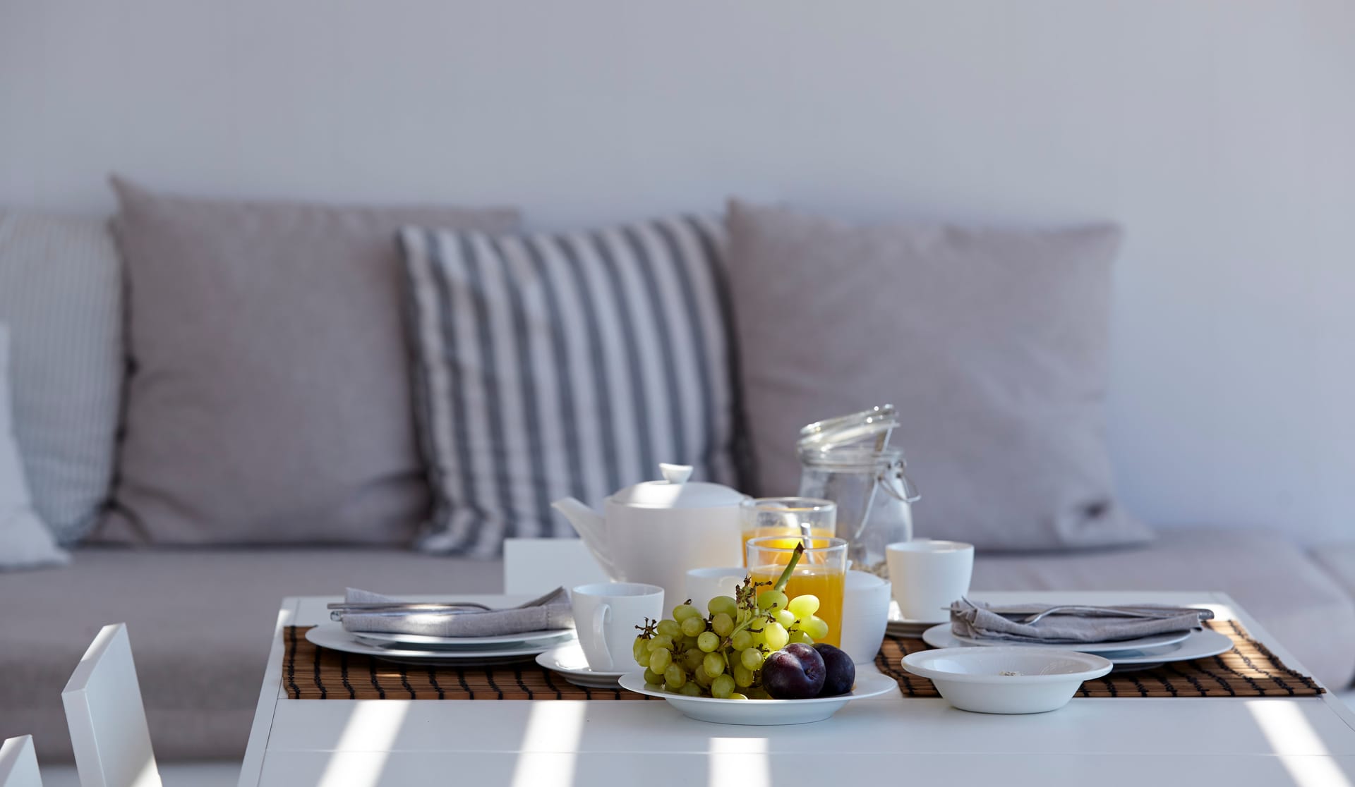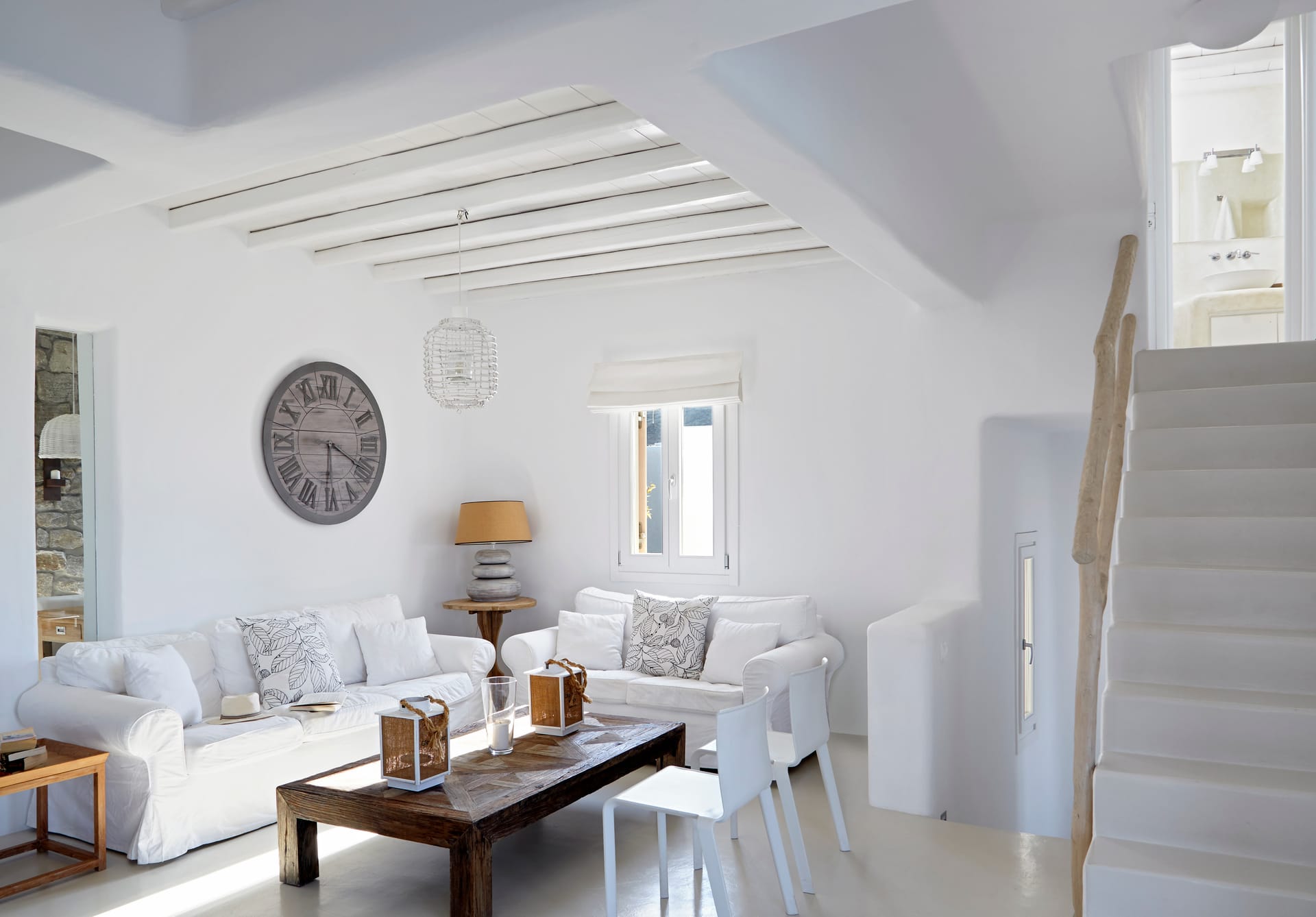 The white minimal interior of the house with smooth curved edges and simple deco gives you a relaxing ambience and enjoyable atmosphere.