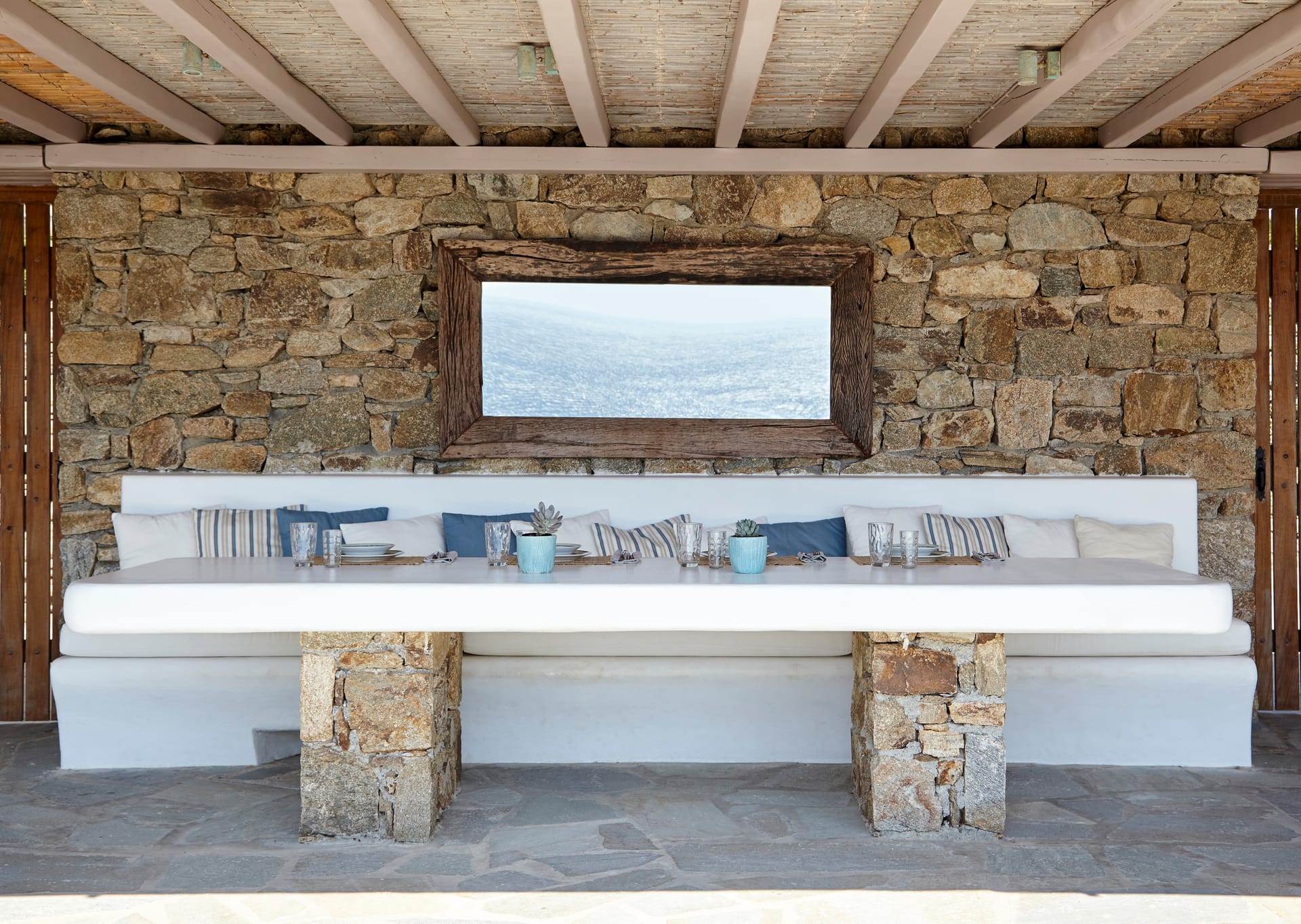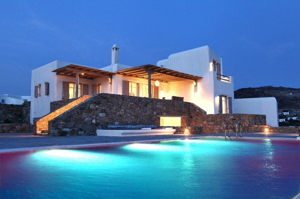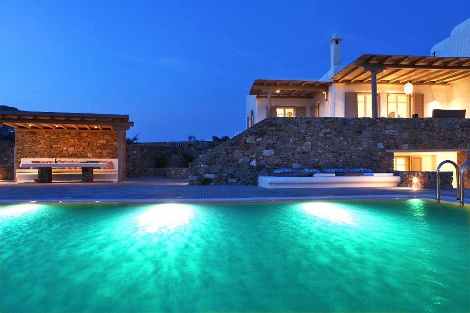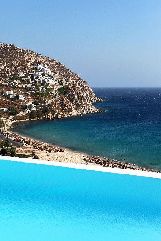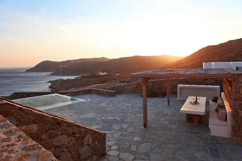 In the most privileged location of Elia beach in Mykonos is situated a contemporary summer Residence with fantastic sea views where white color, stone and water are the dominant characteristics.