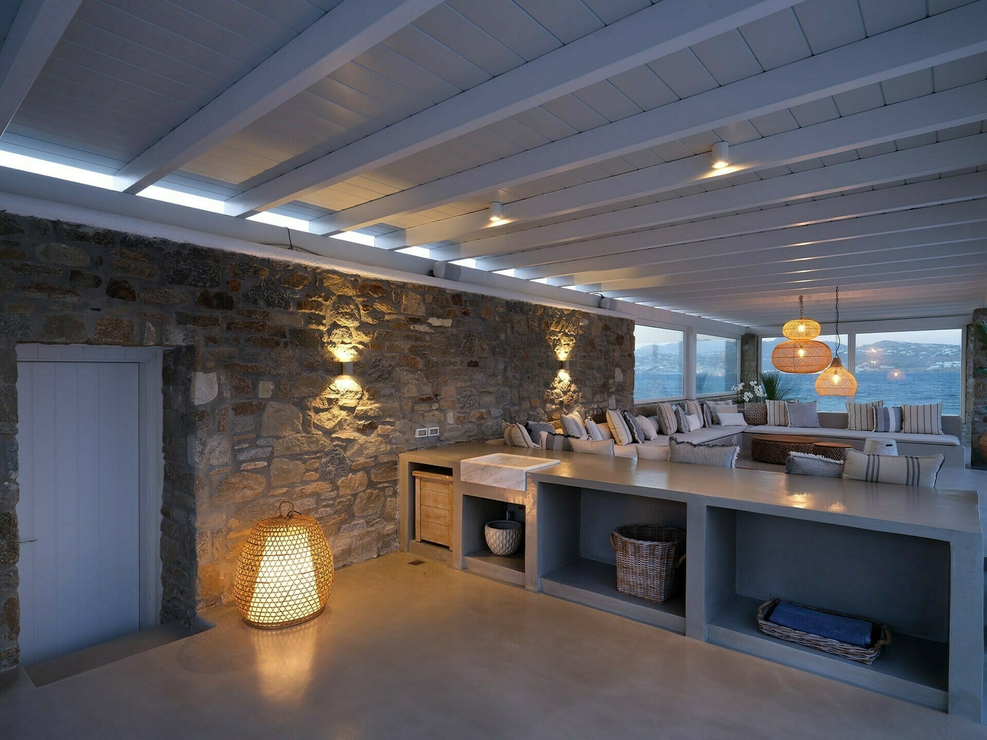 The idyllic, beachfront location within the sought after area of Kanalia, is one of the most desirable in all of Mykonos. It has direct beach access by foot to an almost private beach, offering incredible frame vistas onto Mykonos town that are sensational by day and magnificent by night. Decorated in lavish materials and subtle tones that are aimed at soothing your senses, the spaces are dominated by marble, wood and stone elements, creating a place of summer splendor for you to relax and spend moments of leisure.