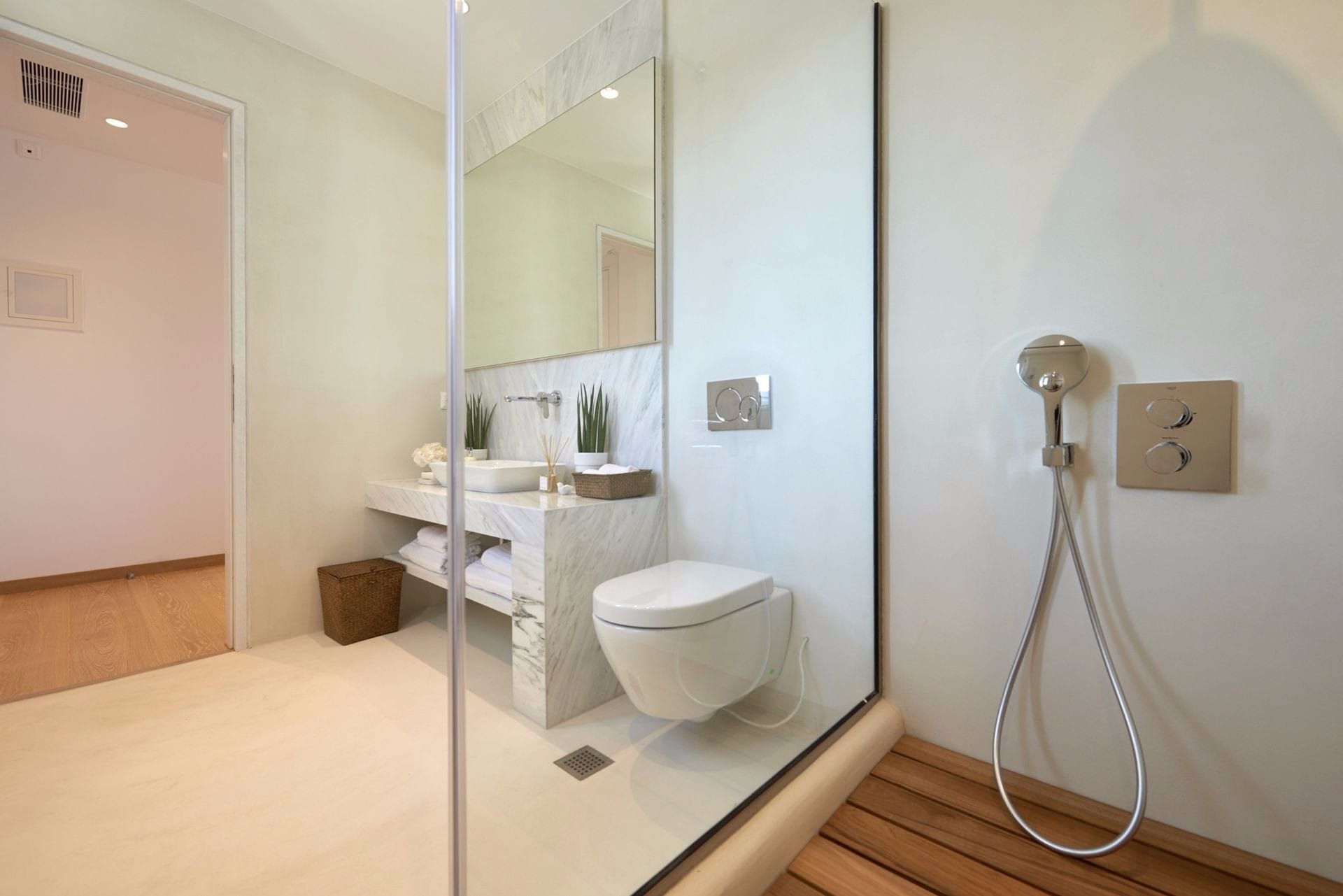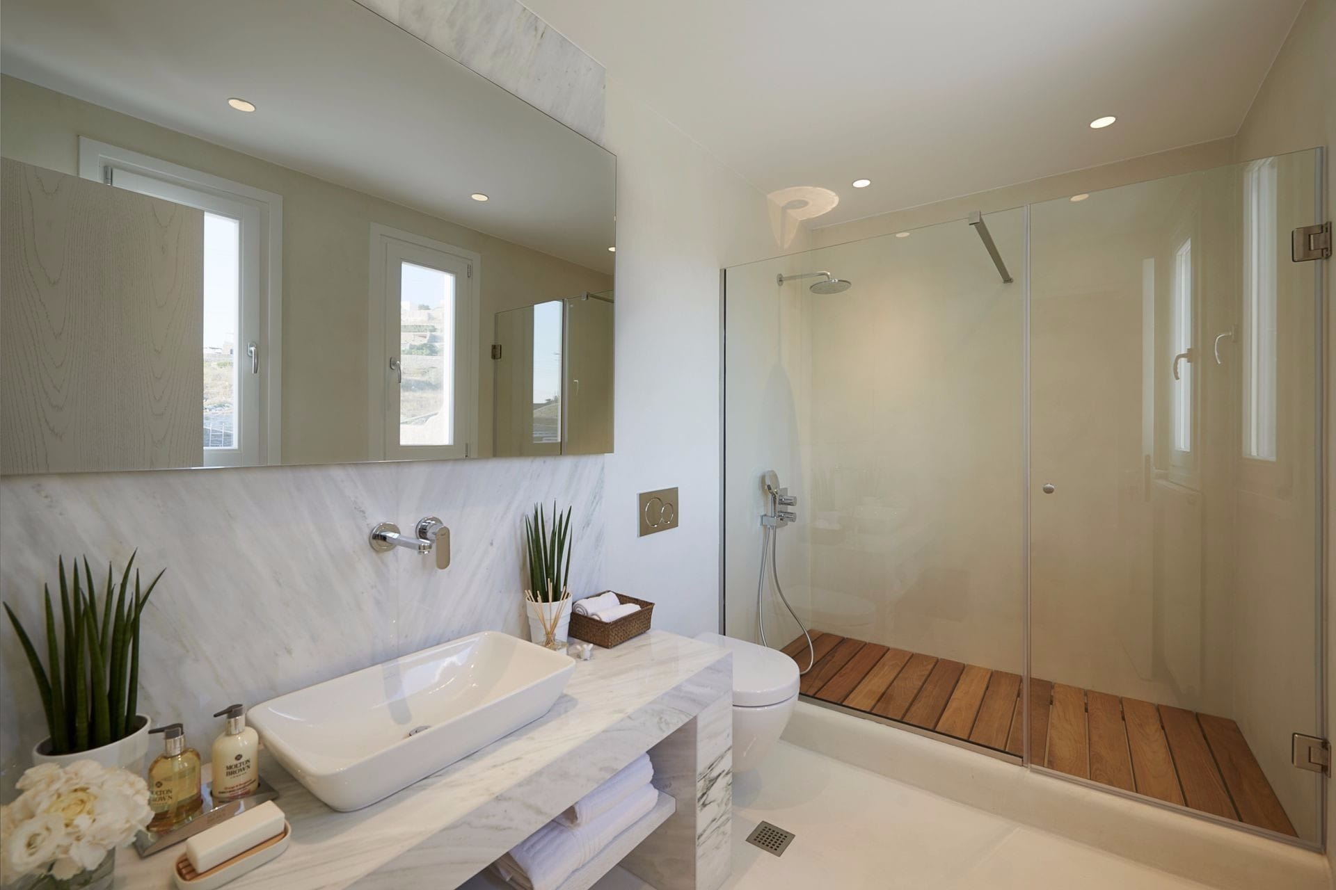 Ground level accommodation is comprised of one master bedroom with an en-suite bathroom, pool and sea views with immediate access to the outdoor pool area. One spacious double room with garden view is also located on the ground floor, and shares the same luxurious amenities as the rest of the rooms.