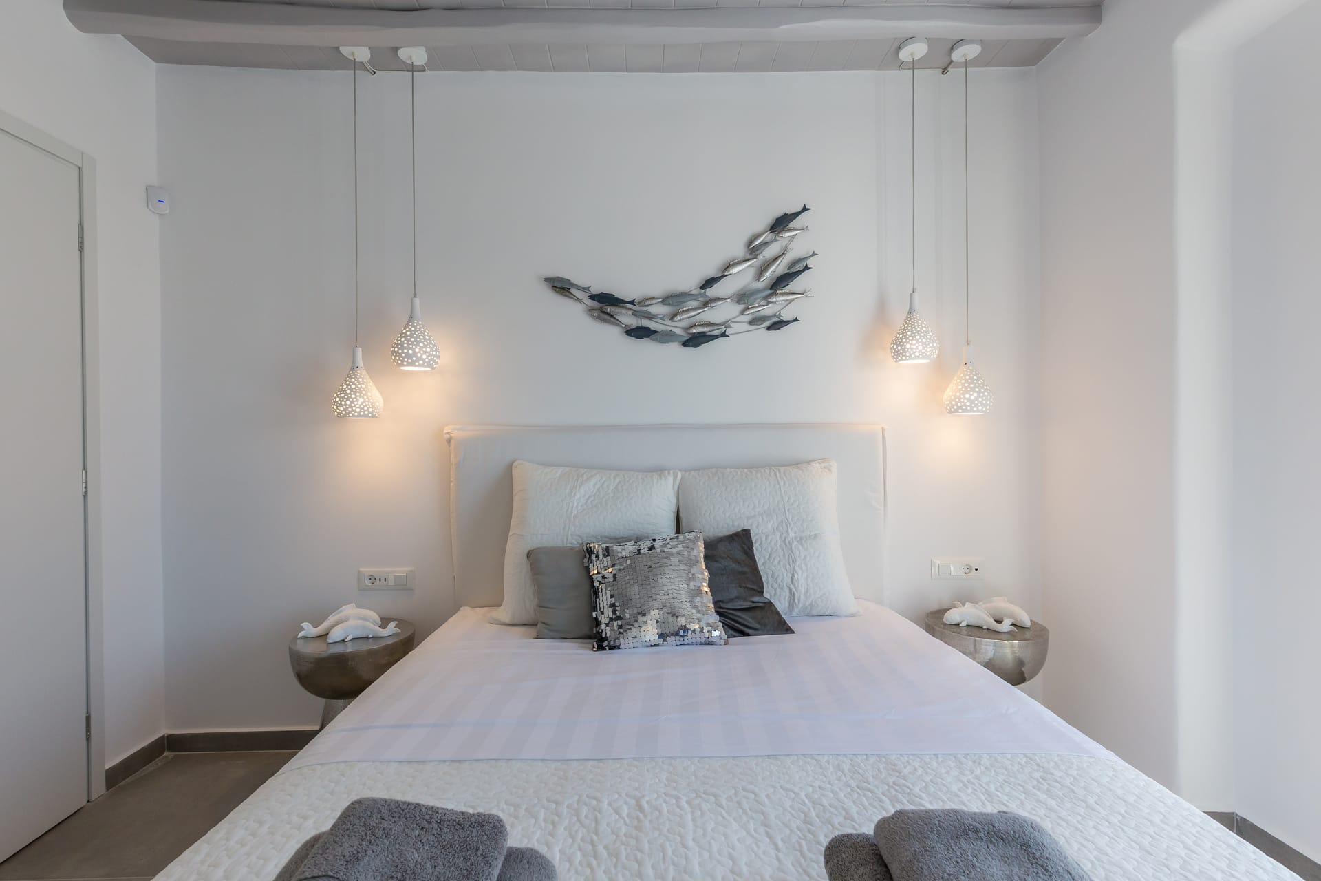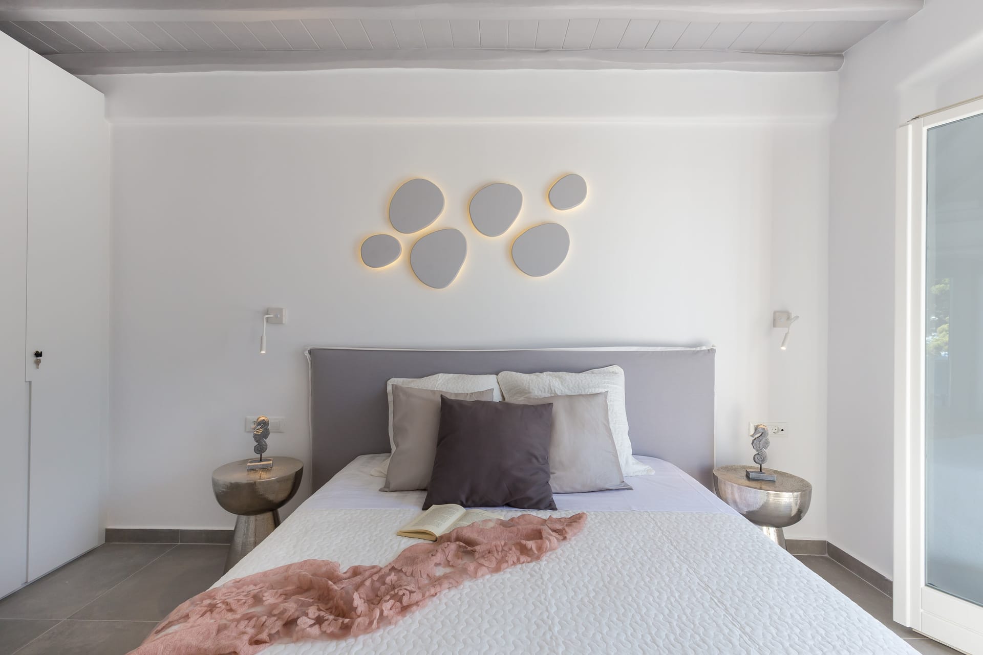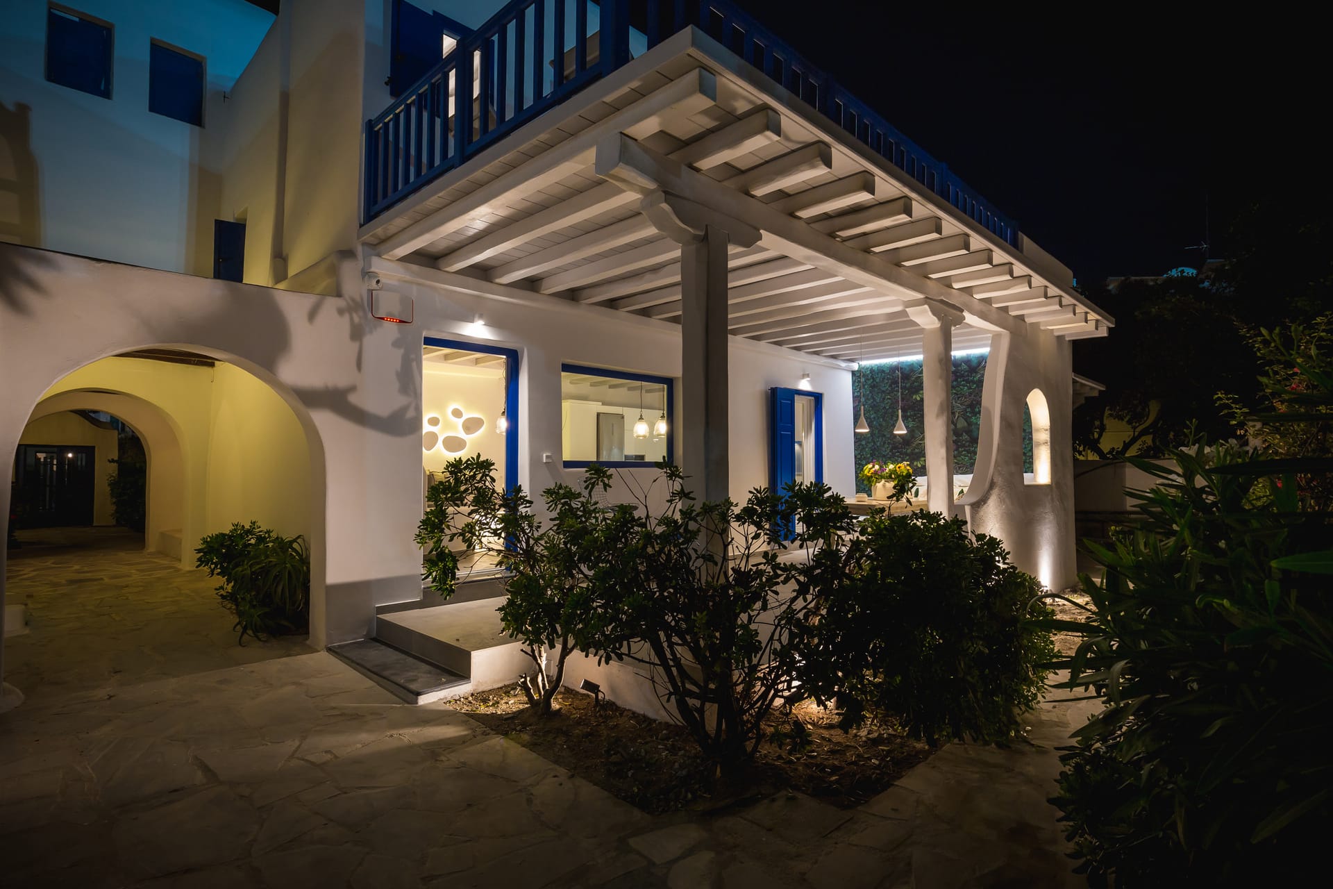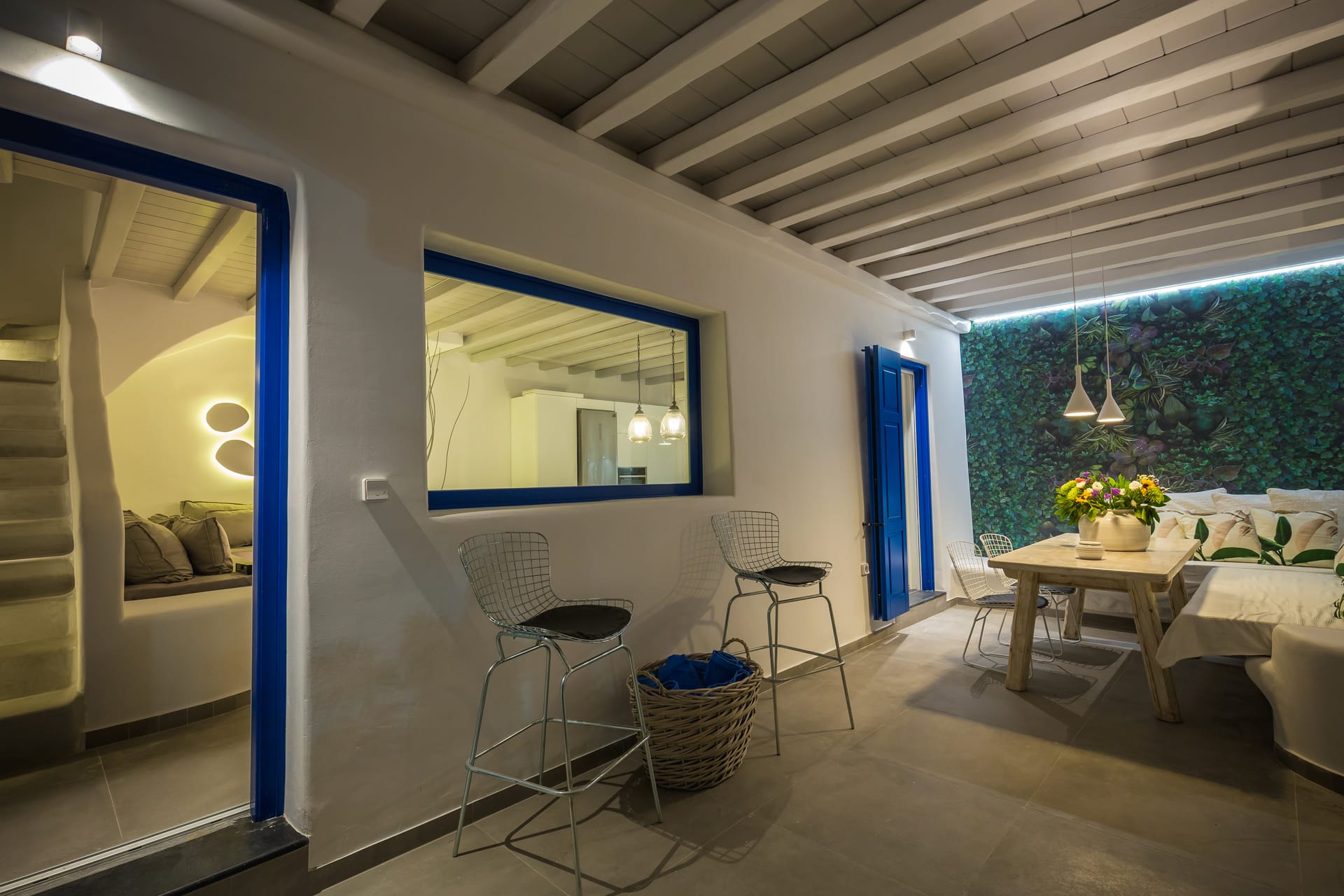 A brand new, 3 bedroom, 2 level villa in cosmopolitan Ornos, the Iliana villa has a contemporary minimal aesthetic and plenty of space in its exterior and interior grounds.
