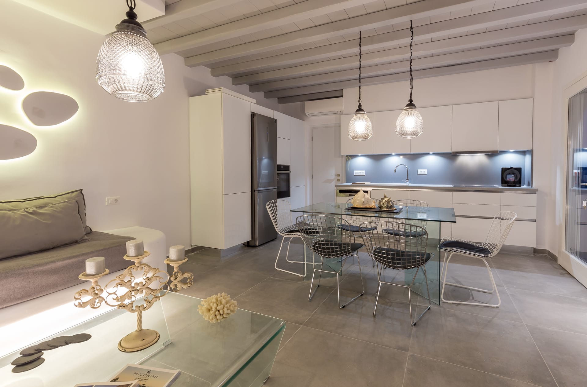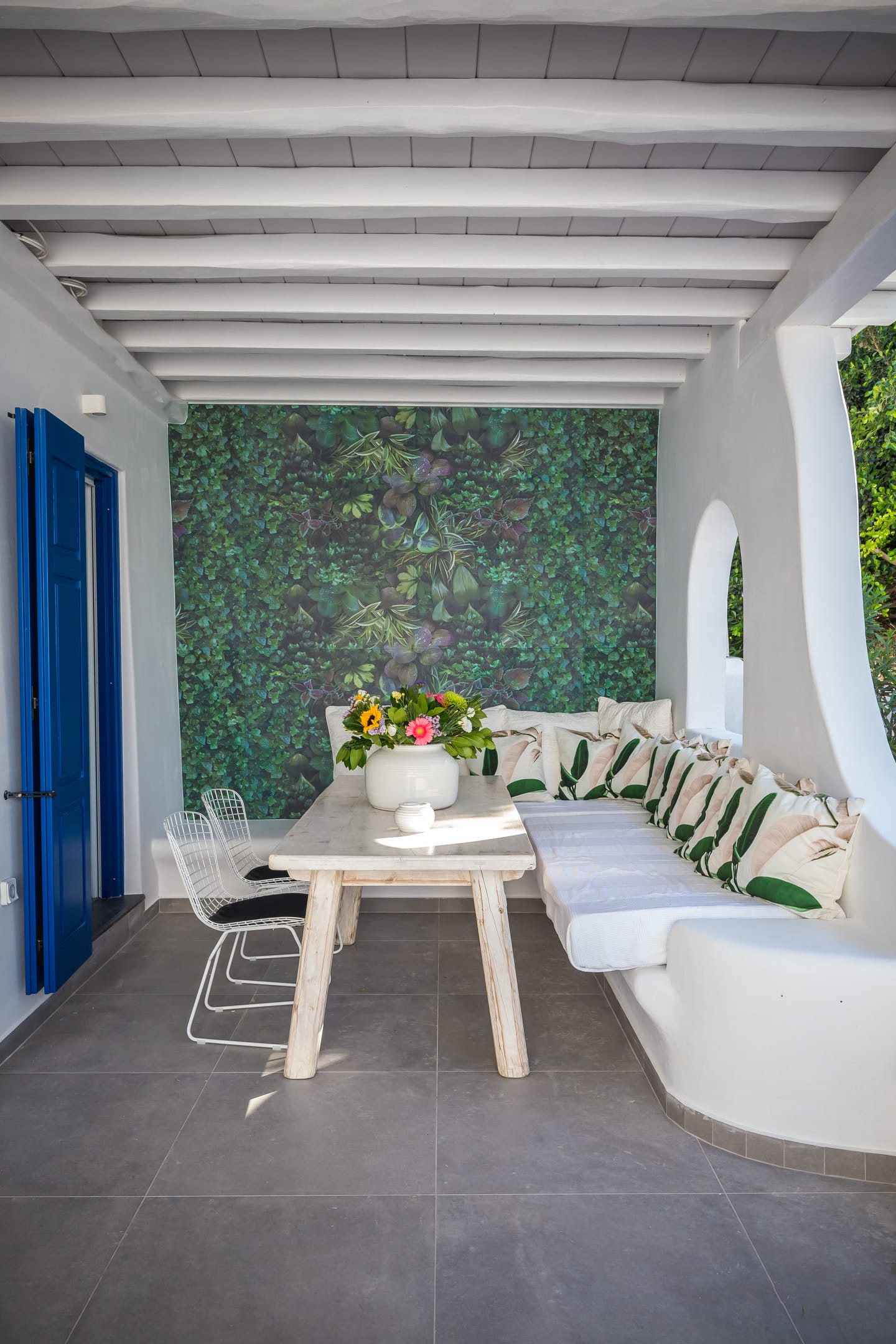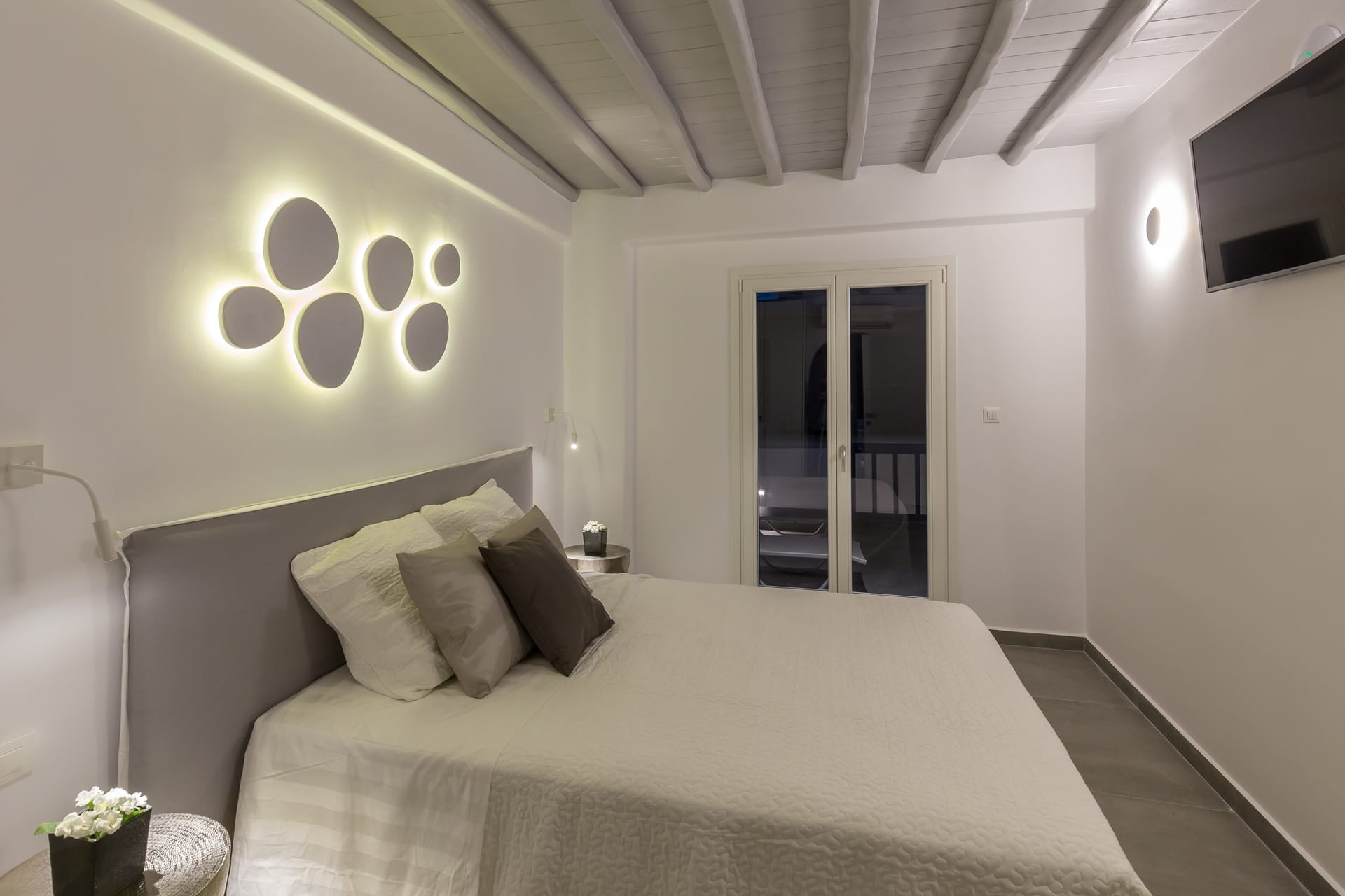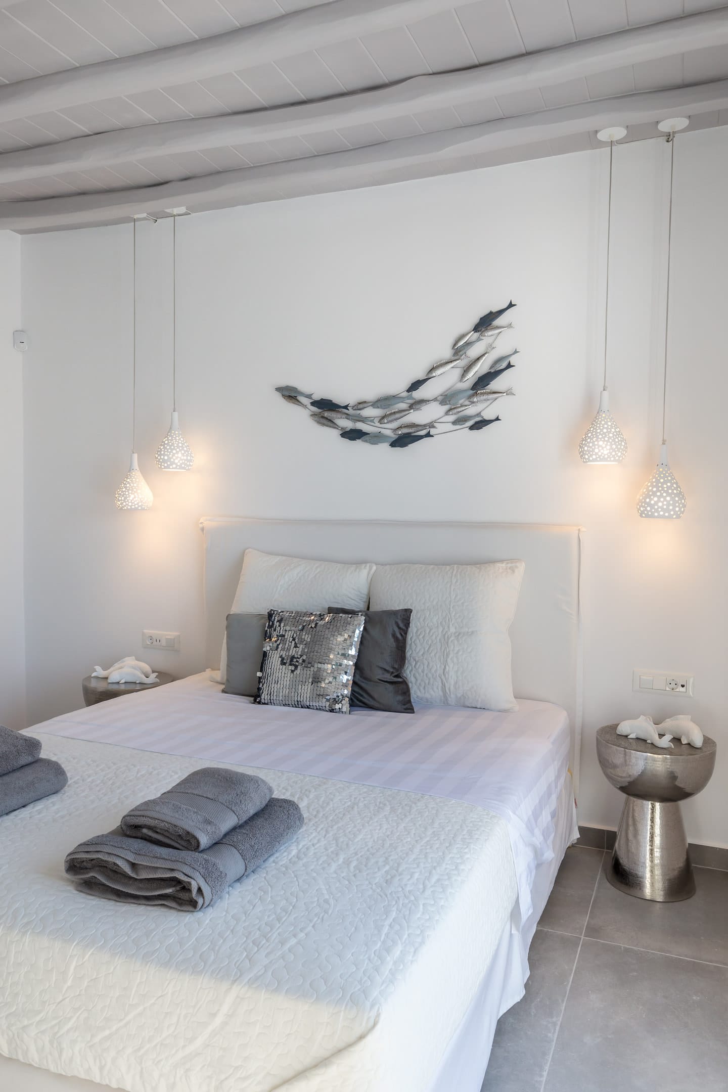 A brand new, 3 bedroom, 2 level villa in cosmopolitan Ornos, the Iliana villa has a contemporary minimal aesthetic and plenty of space in its exterior and interior grounds.