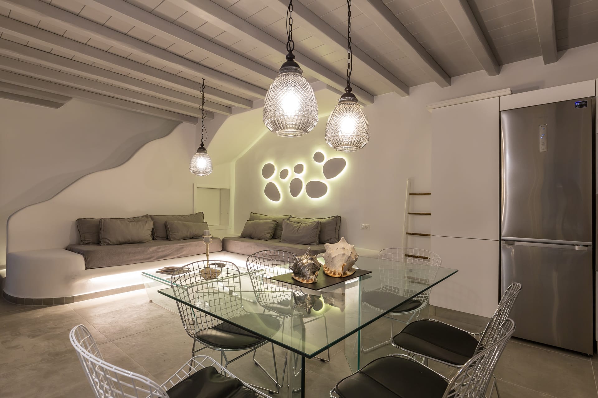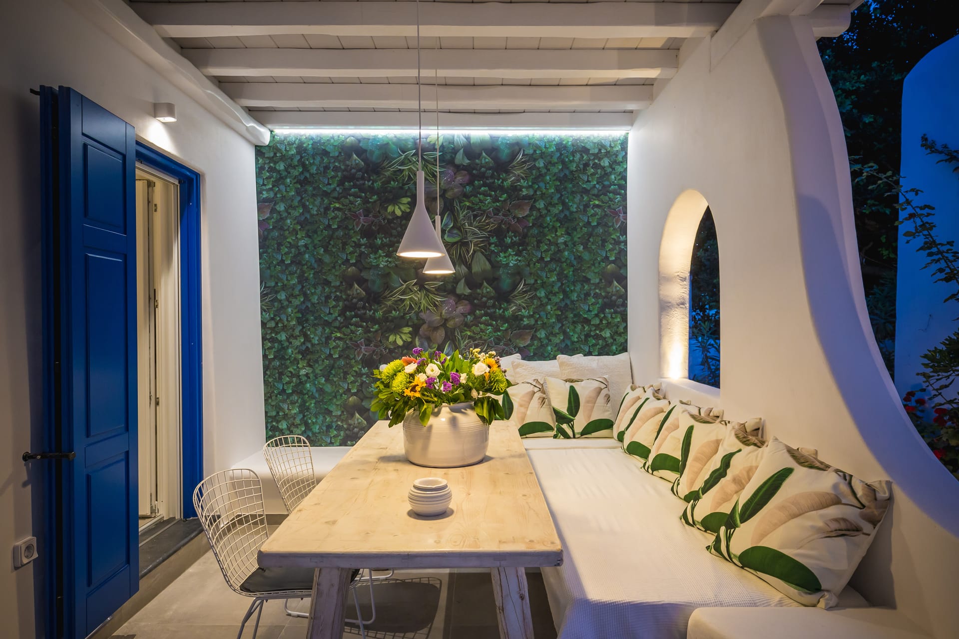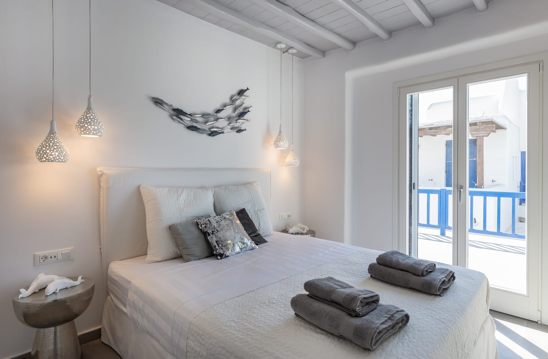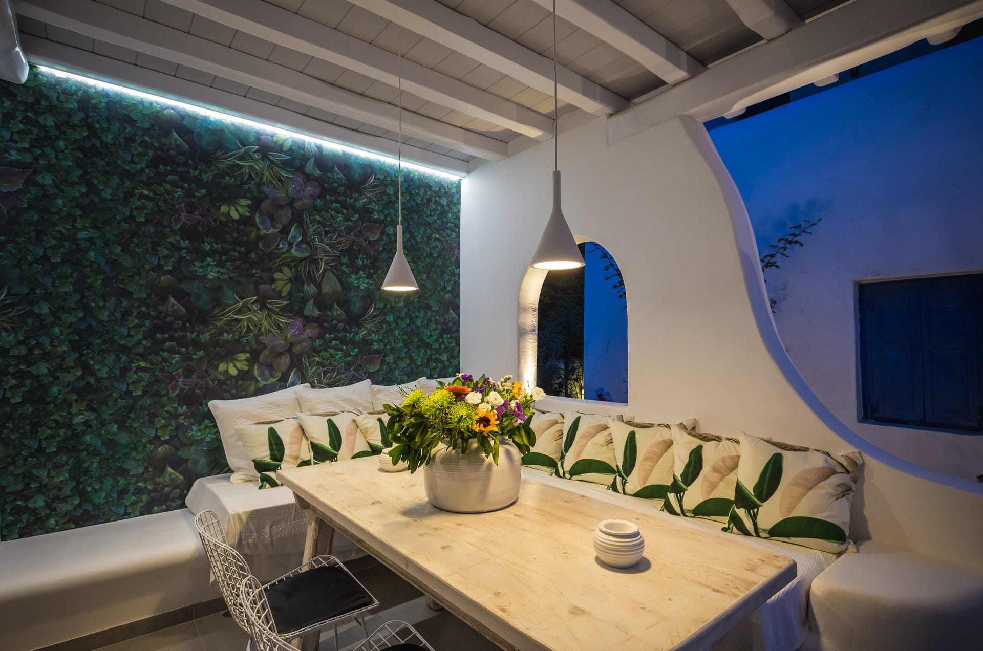 A brand new, 3 bedroom, 2 level villa in cosmopolitan Ornos, the Iliana villa has a contemporary minimal aesthetic and plenty of space in its exterior and interior grounds.