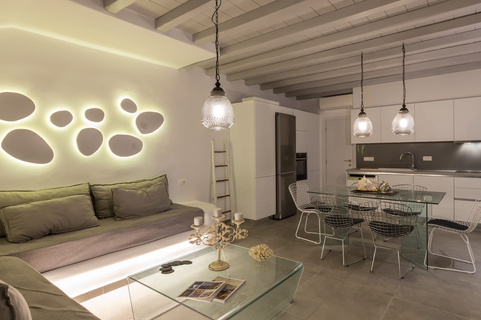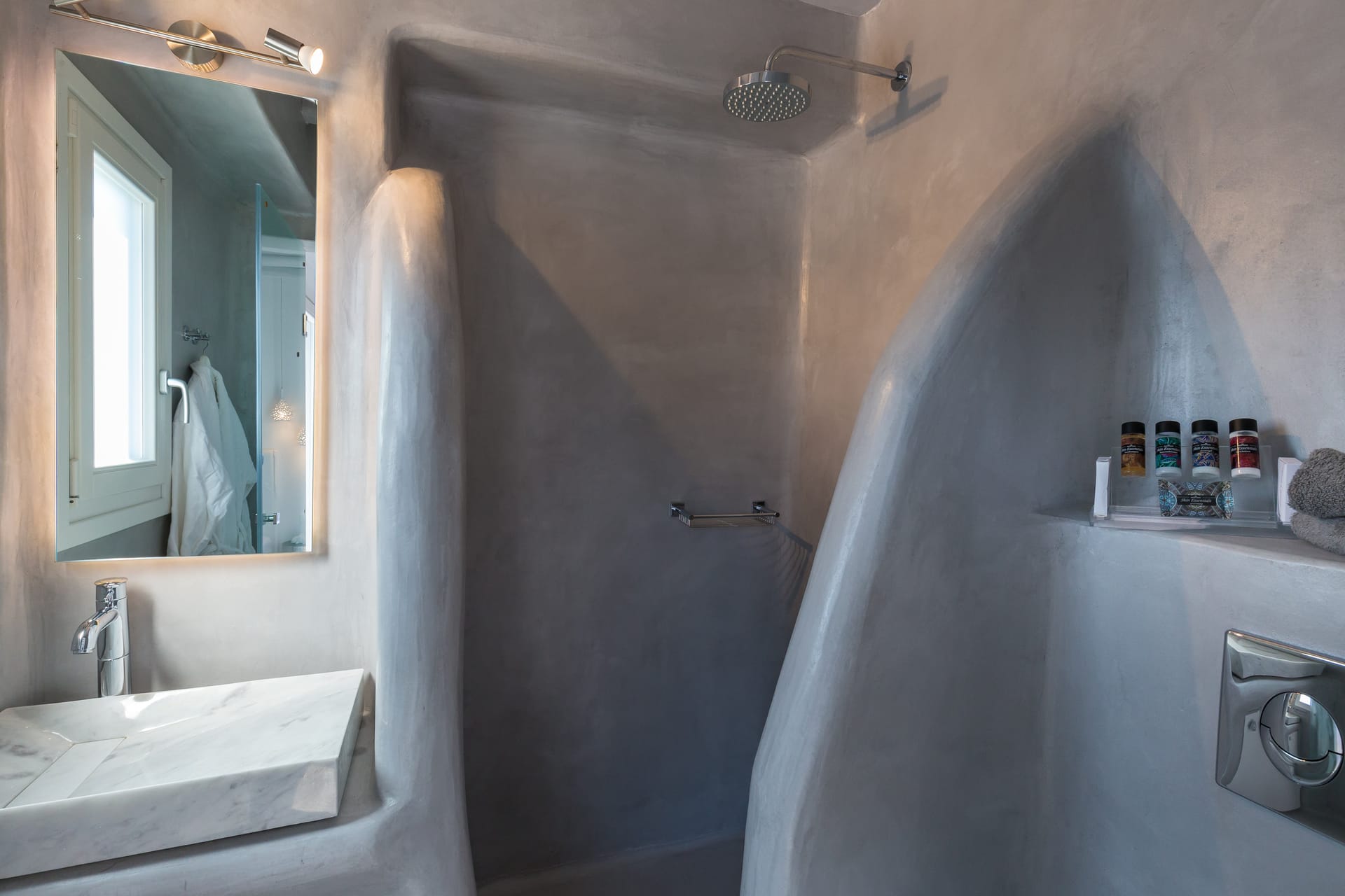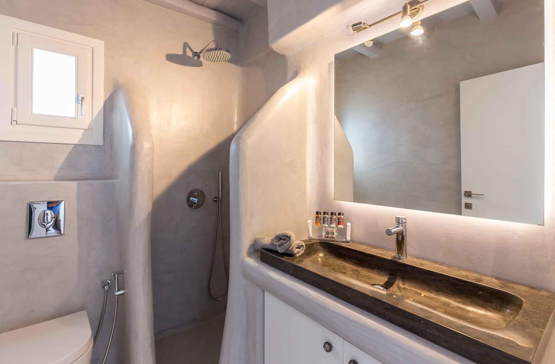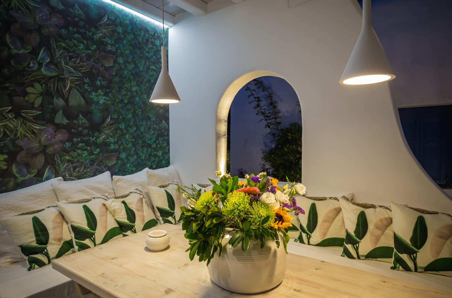 A brand new, 3 bedroom, 2 level villa in cosmopolitan Ornos, the Iliana villa has a contemporary minimal aesthetic and plenty of space in its exterior and interior grounds.