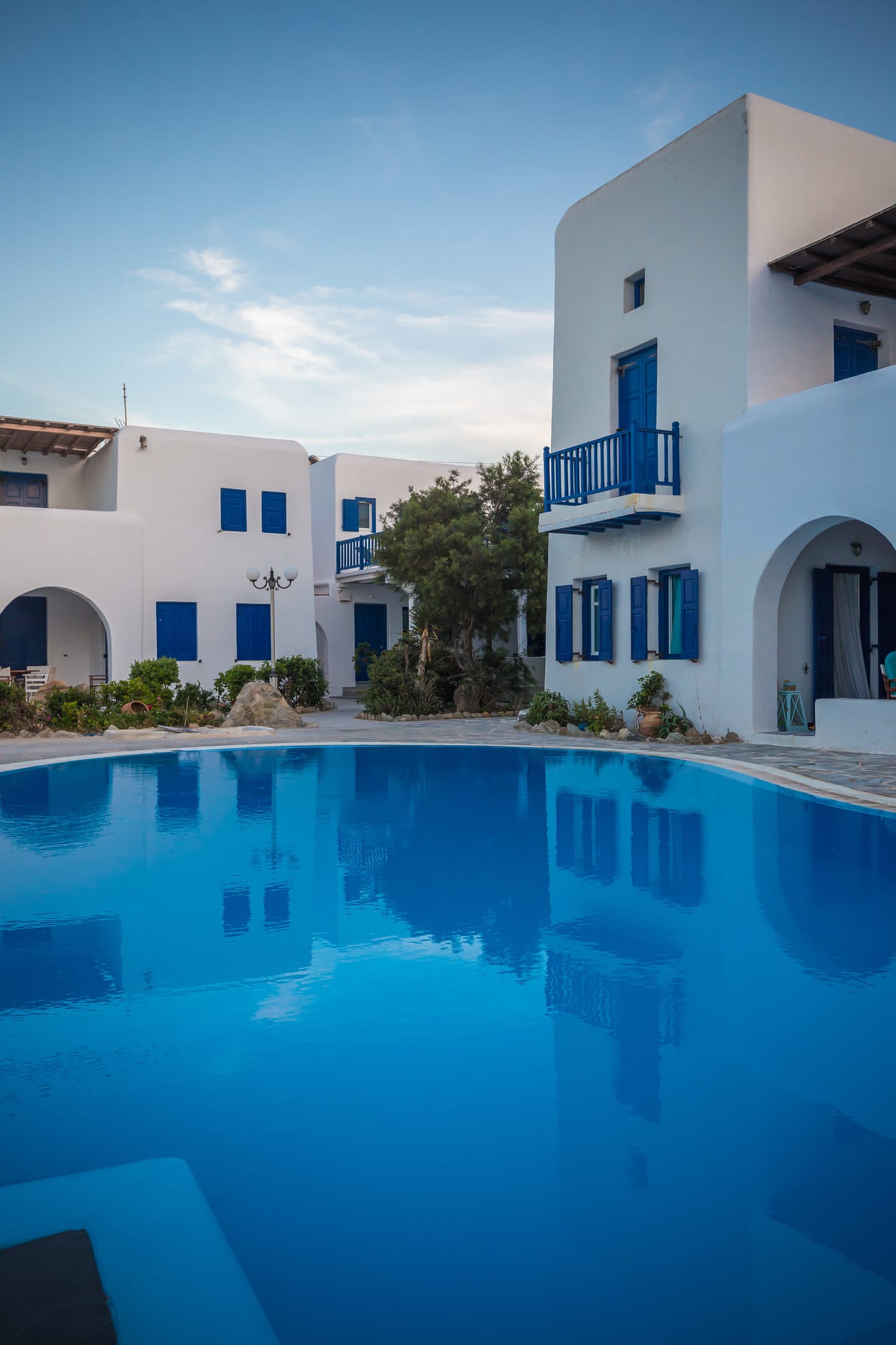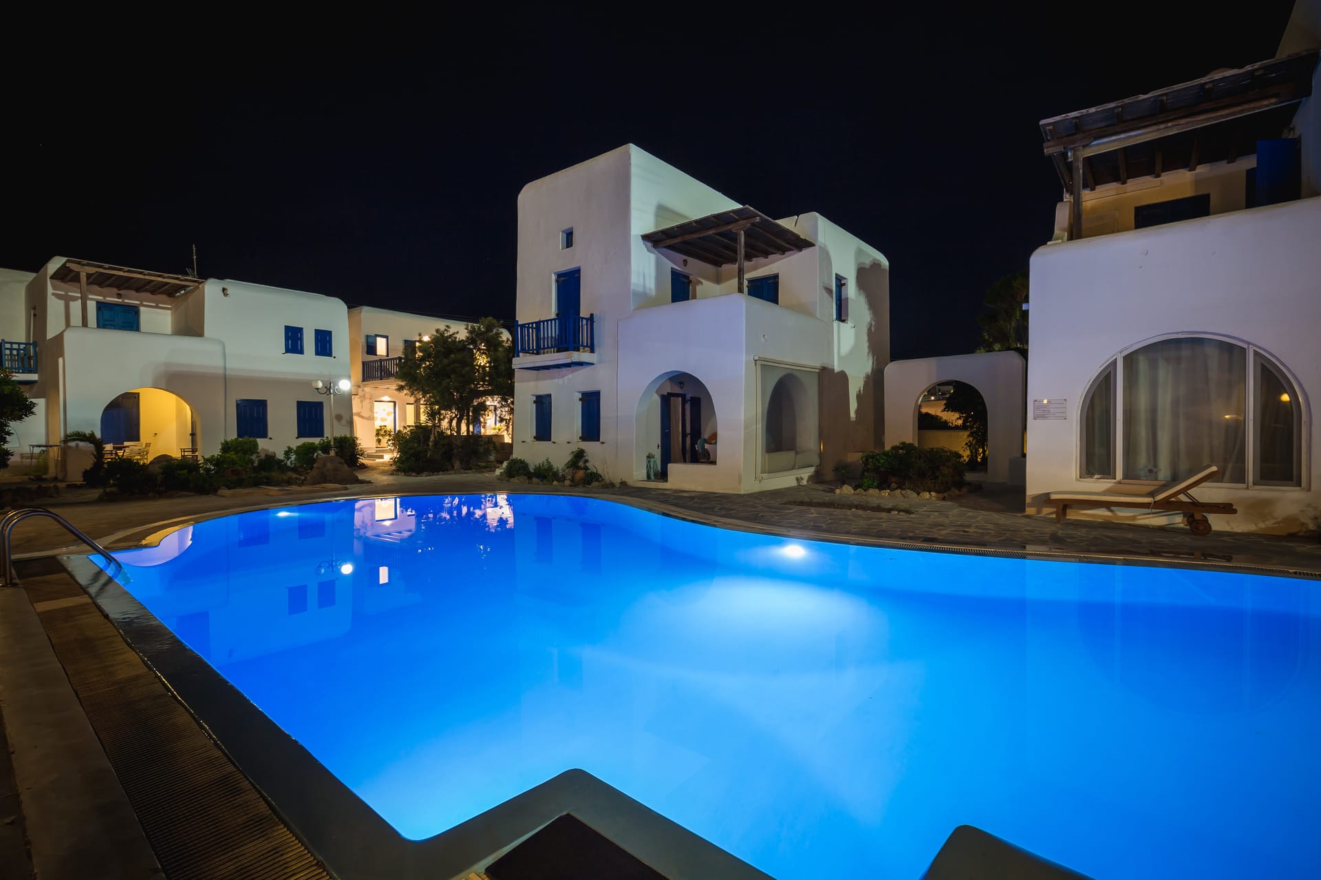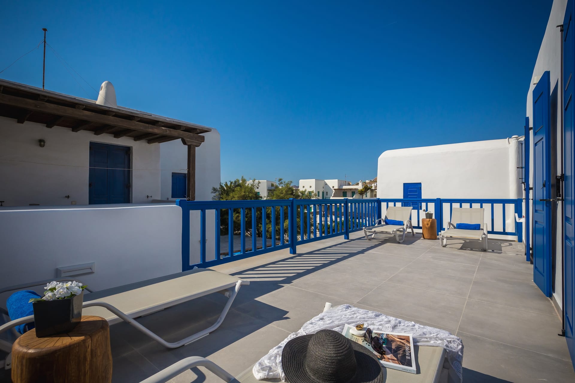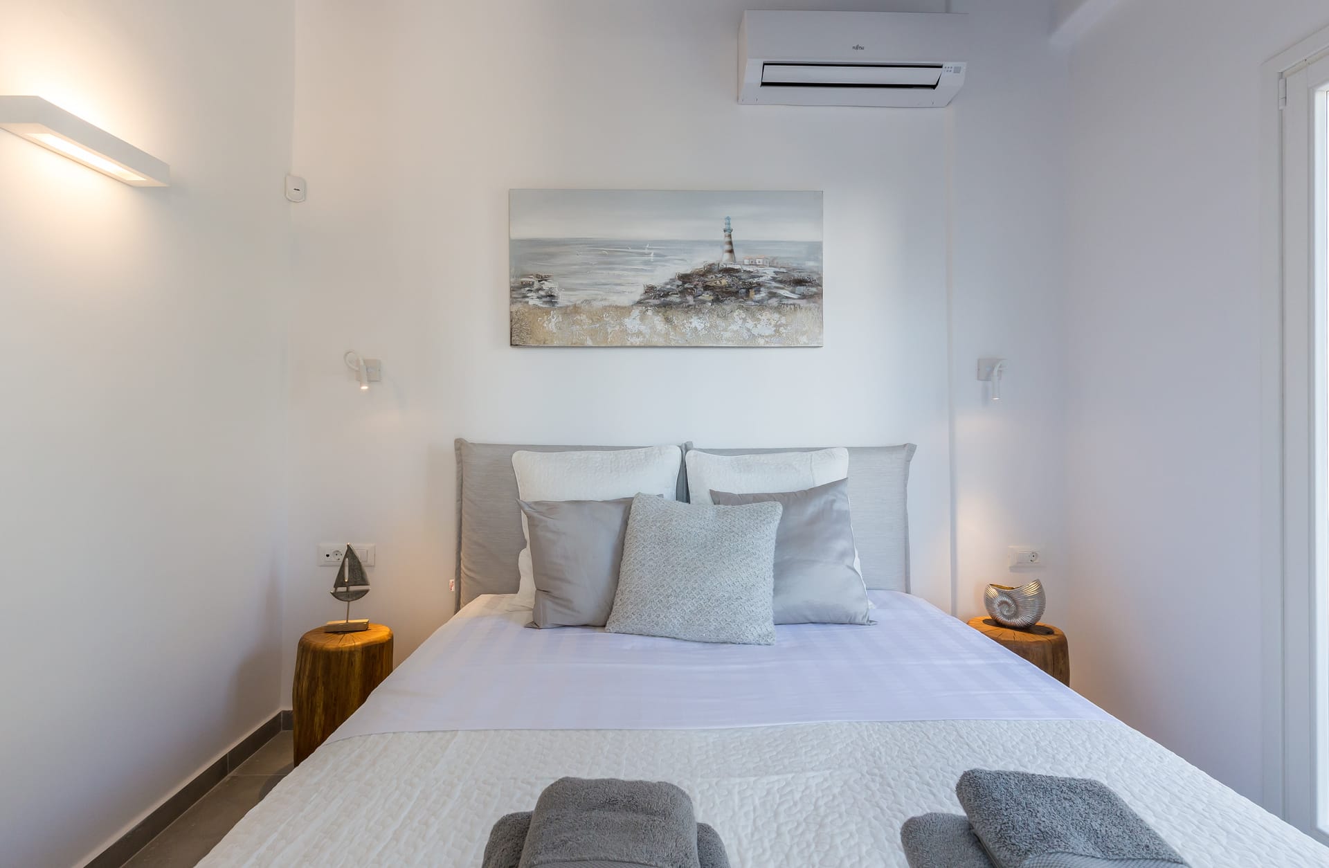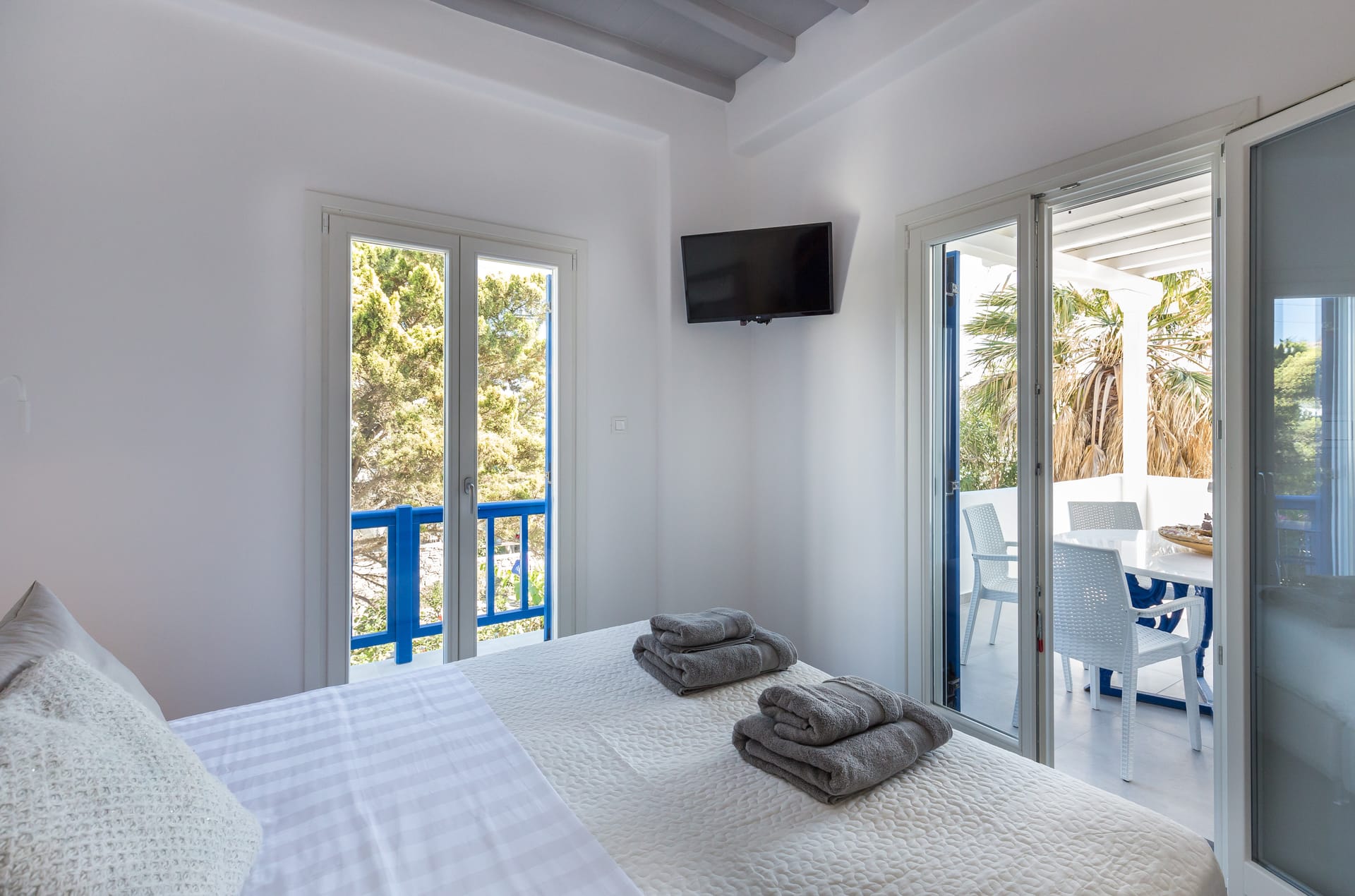 Work on your tan from the privacy of your terrace, have a dip in the shared pool and enjoy alfresco BBQ’s with friends and family, when you are not doing water sports or sipping cocktails at the nearby, super famed beach of Ornos.