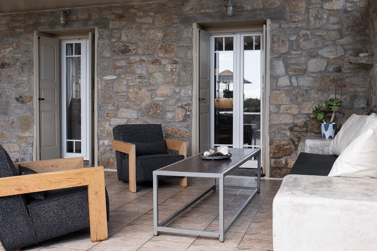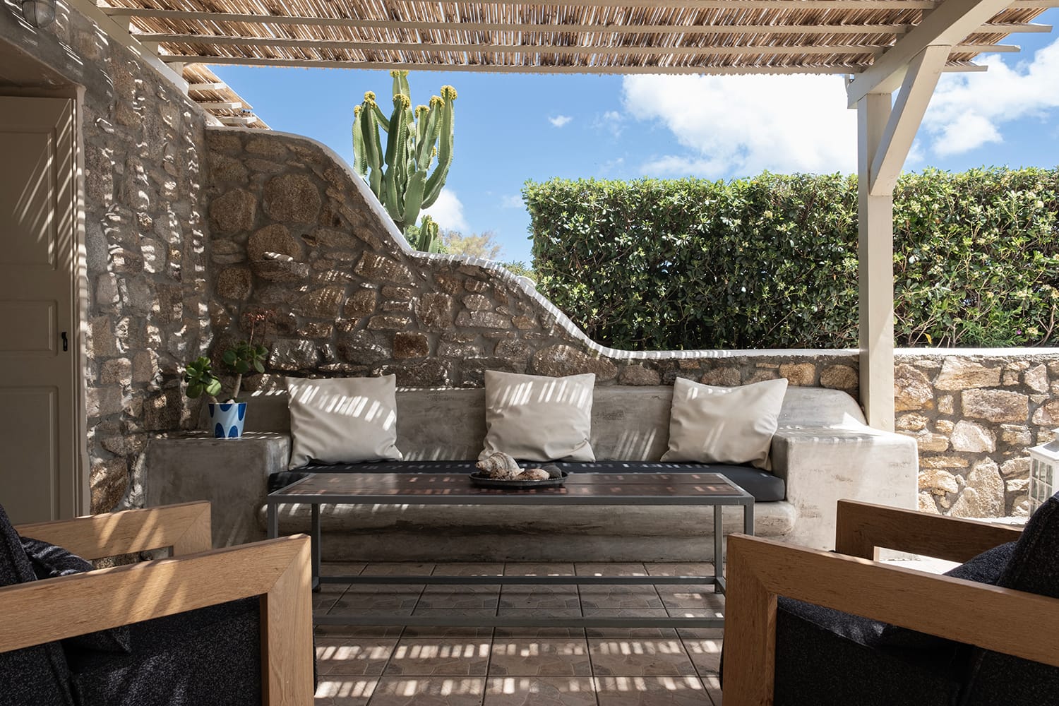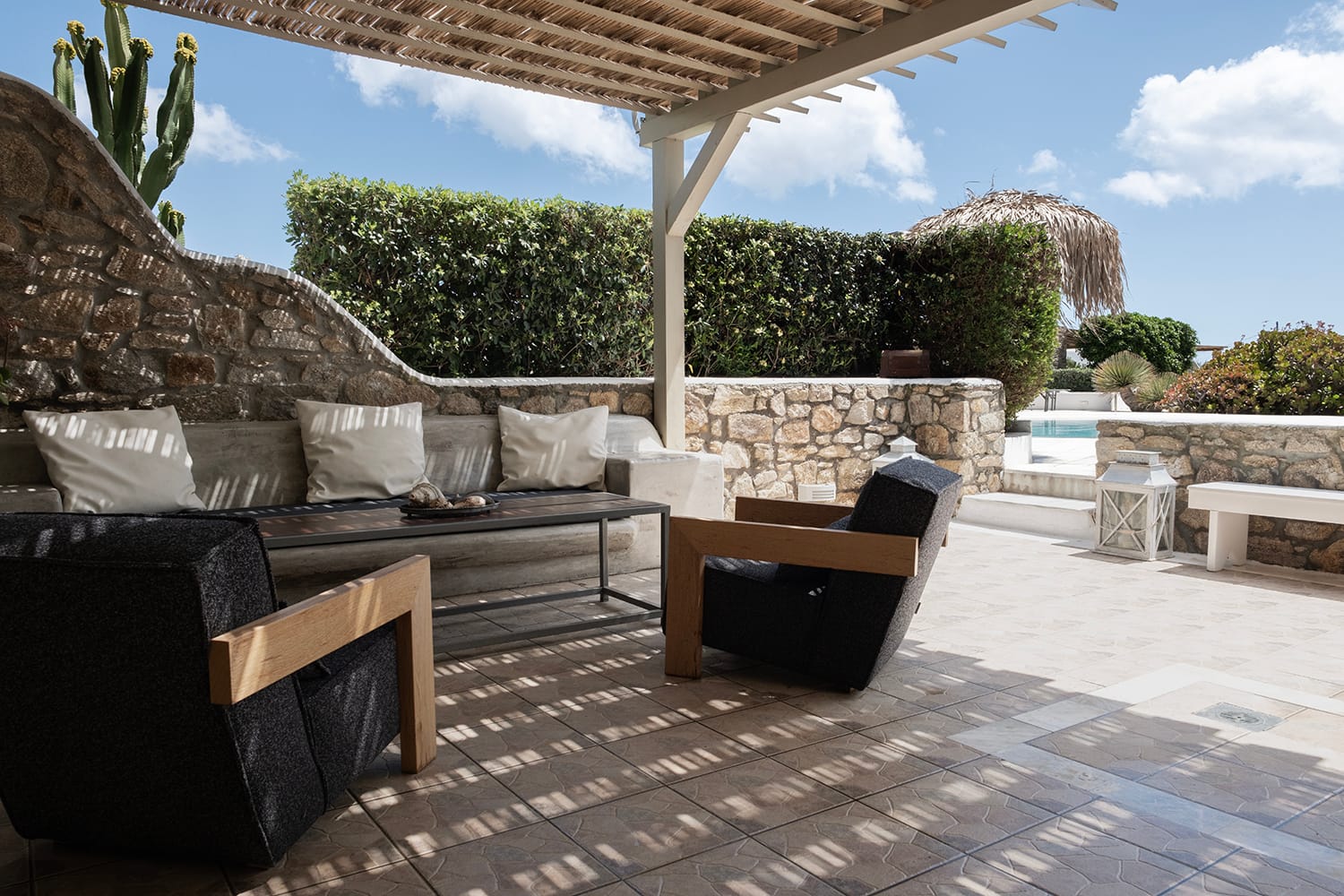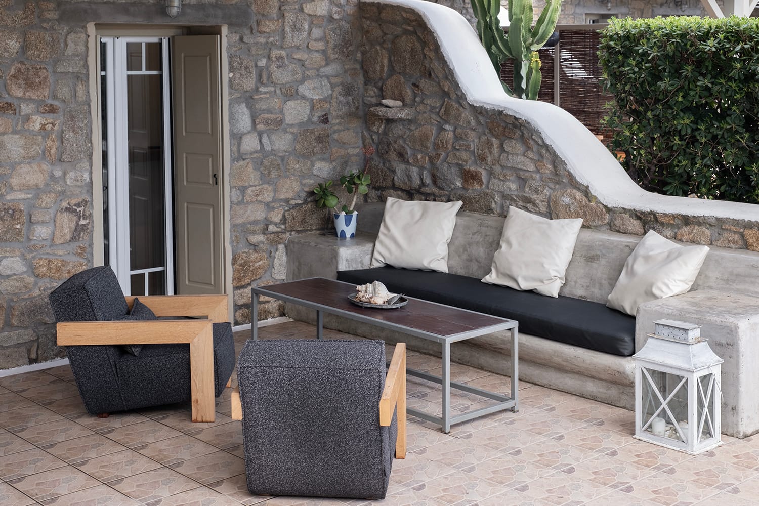 The unrivalled Baos village is ideally situated only 5 minutes from the Airport, local grocery shop and in close proximity to the beach resort of Super Paradise, the beach of Agrari, the port of Mykonos and the effervescent Mykonos Town offering an ideal base to explore the island. Baos village consists of 4 villas with a large shared pool with overflow.