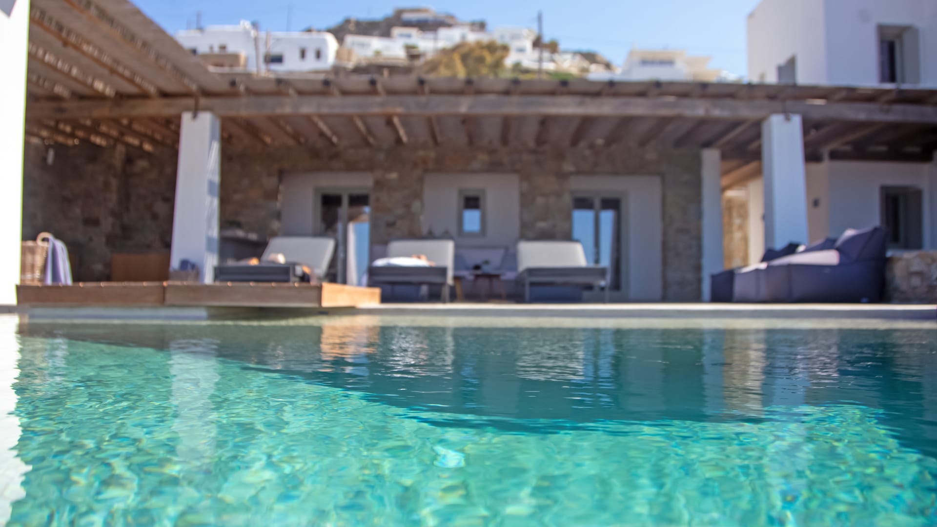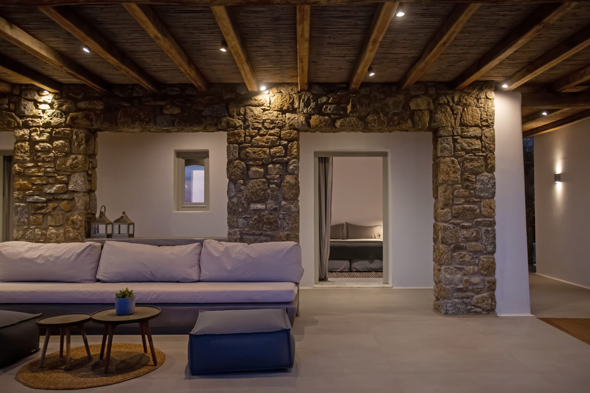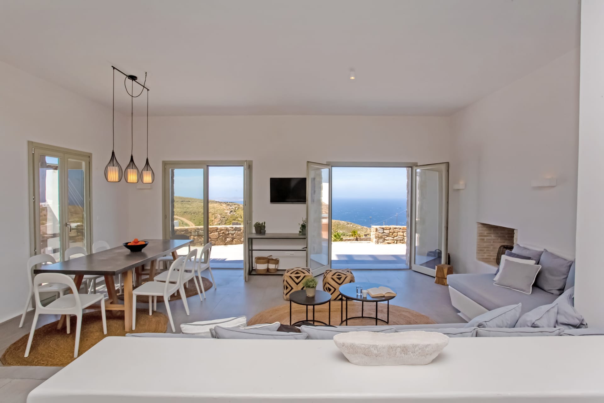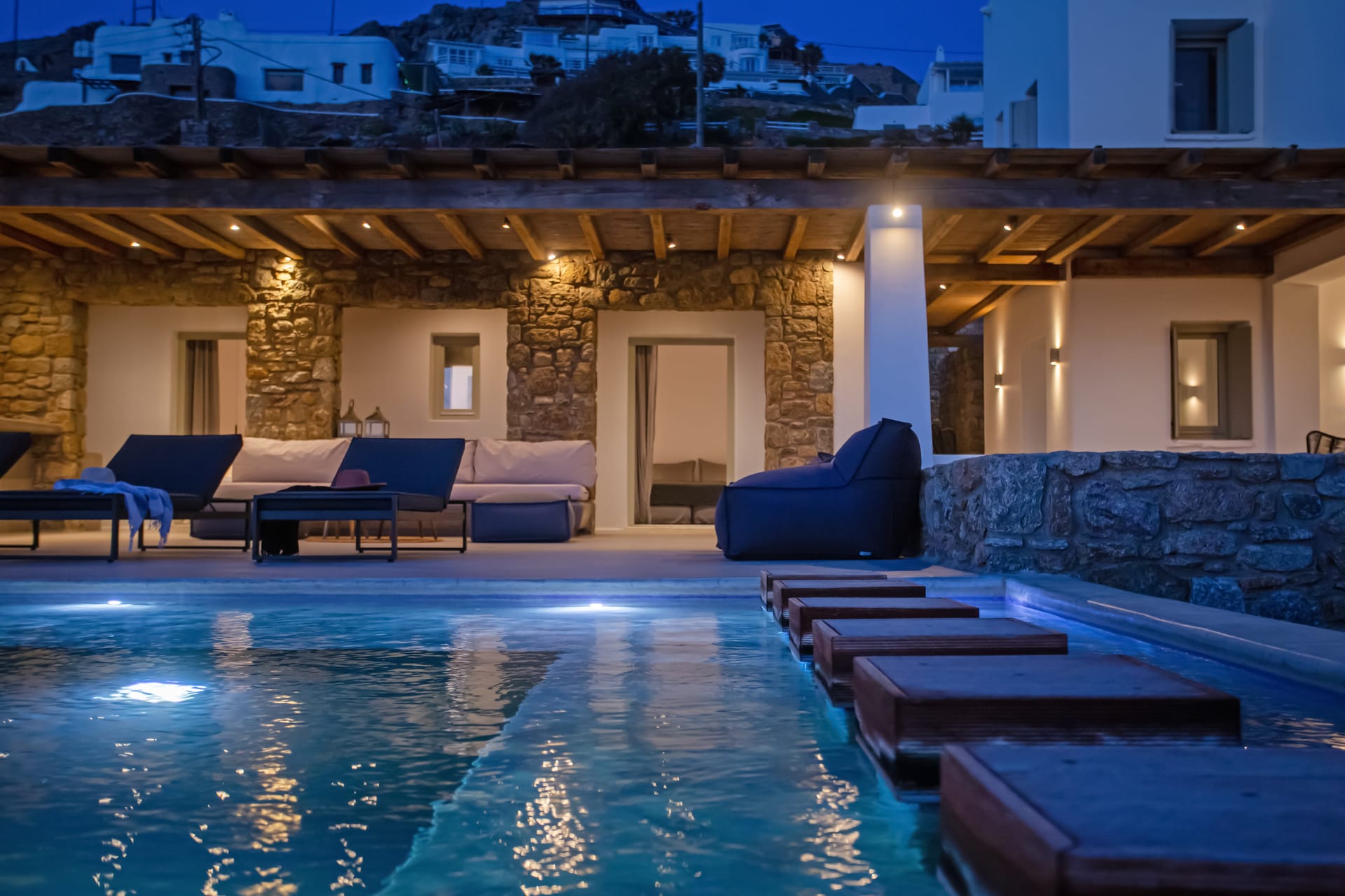 sophisticated minimal, contemporary , luxurious and stylish but also respecting local culture and architecture. designed with relaxed elegance, to serve a family as well as a big group of friends, with focus in functionality. less is more.