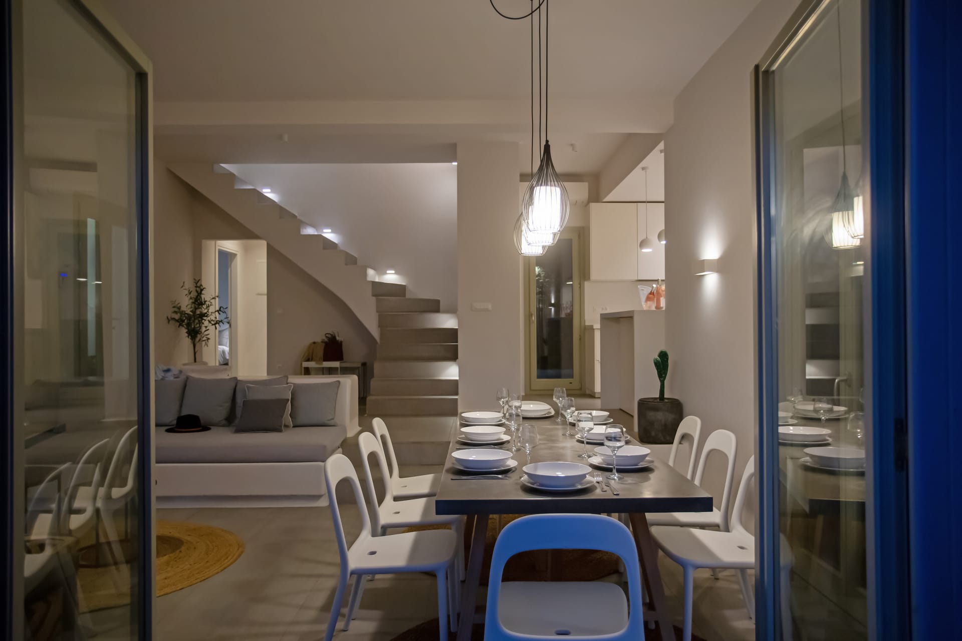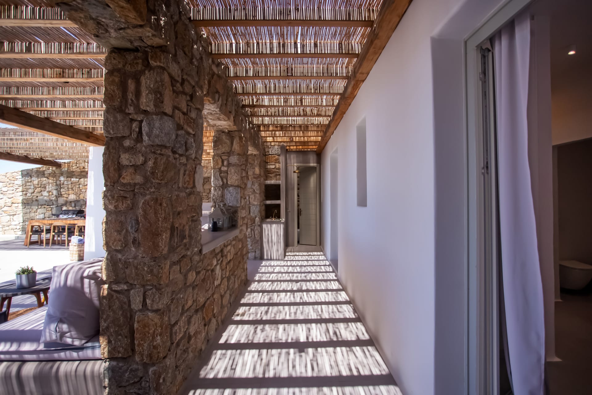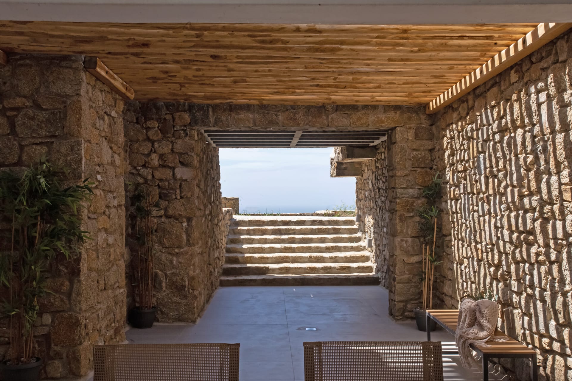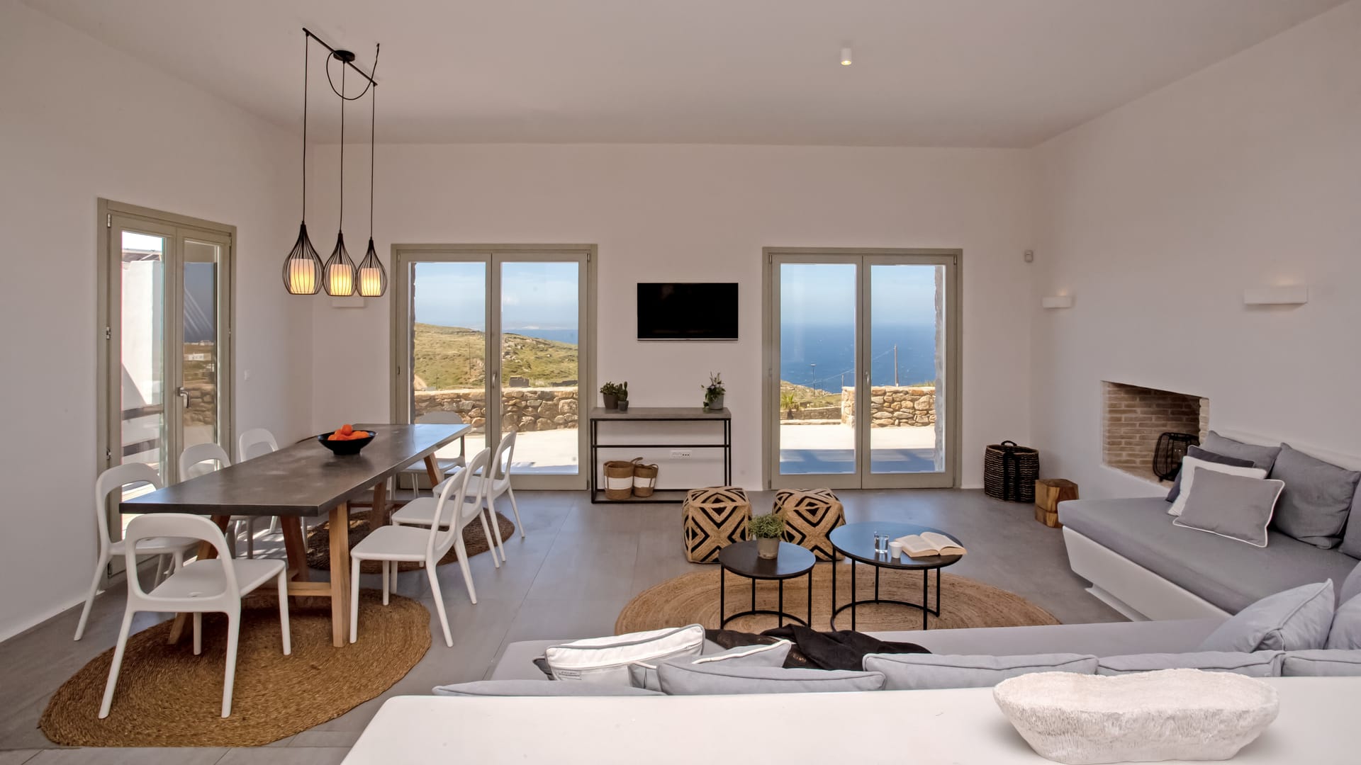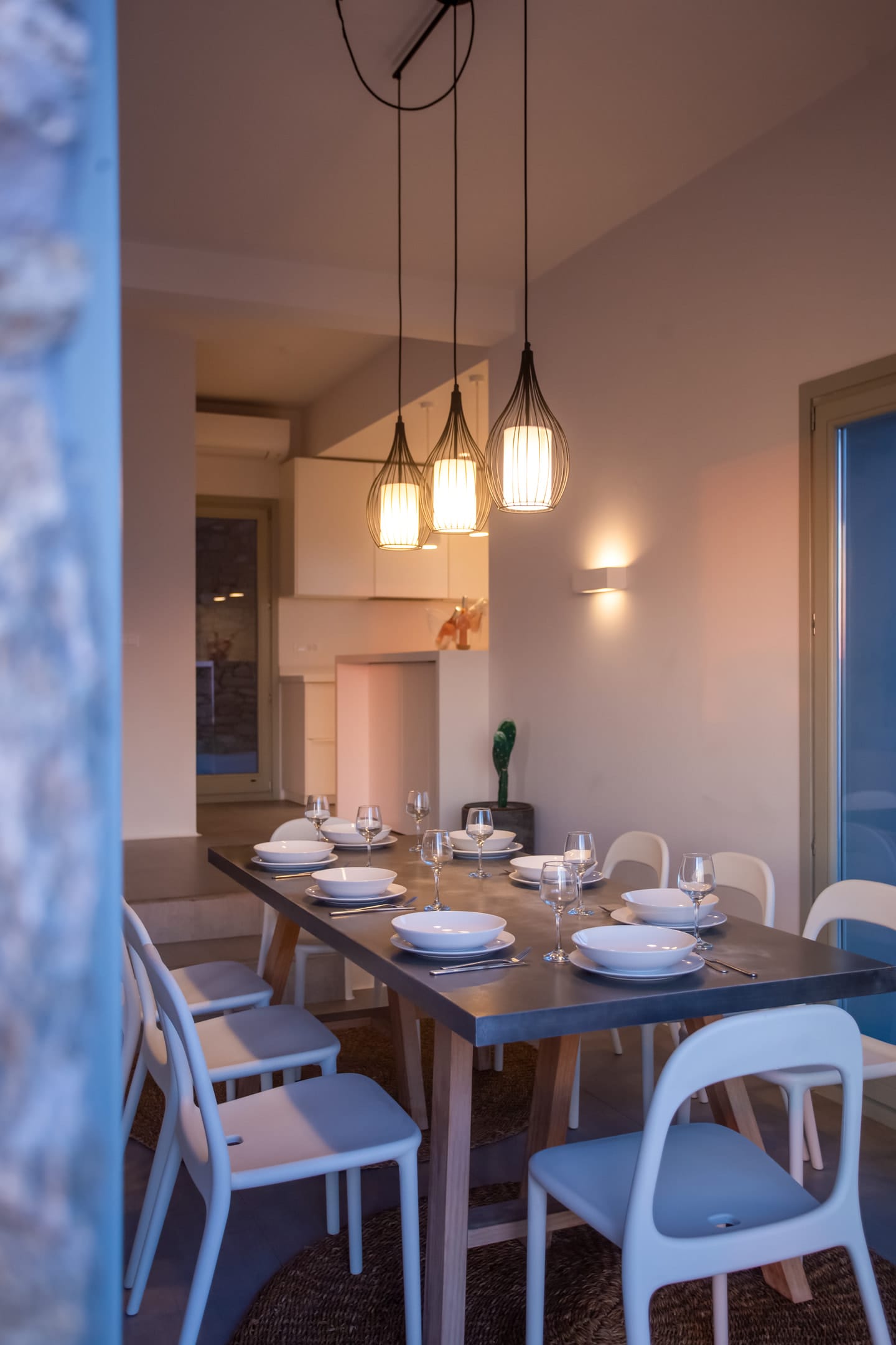 sophisticated minimal, contemporary , luxurious and stylish but also respecting local culture and architecture. designed with relaxed elegance, to serve a family as well as a big group of friends, with focus in functionality. less is more.