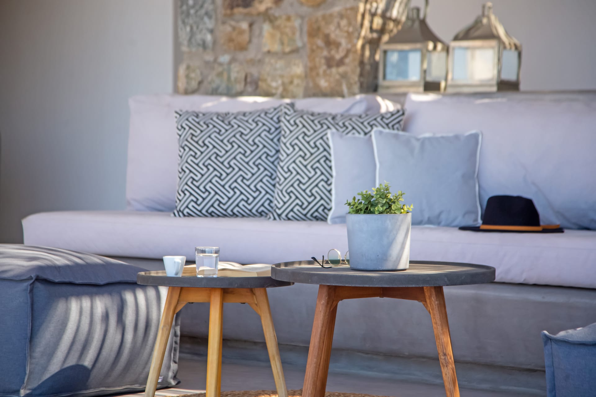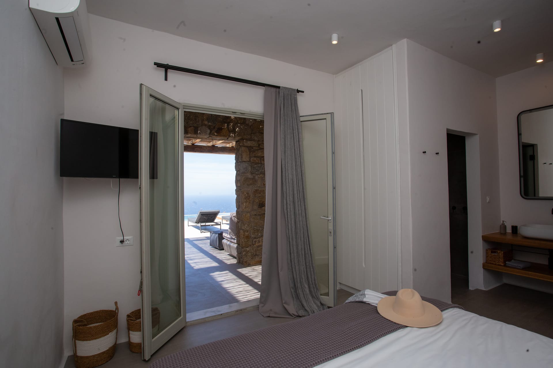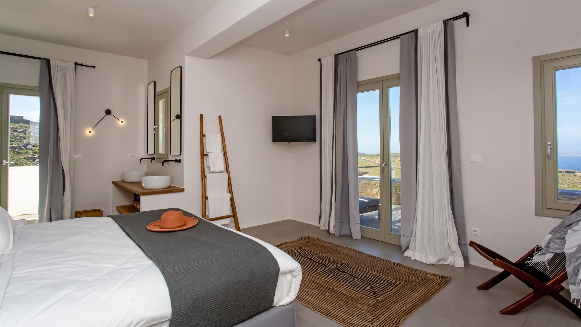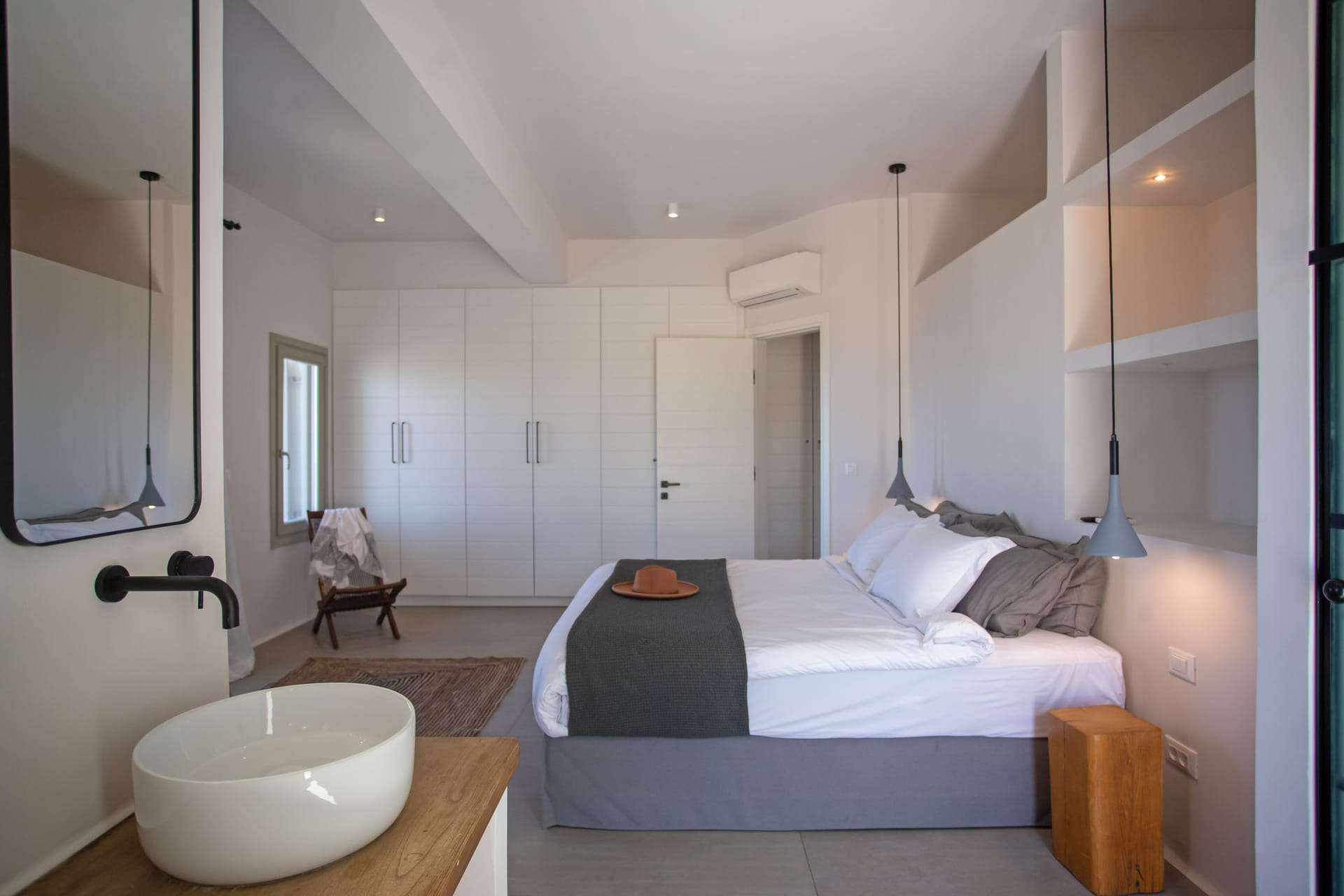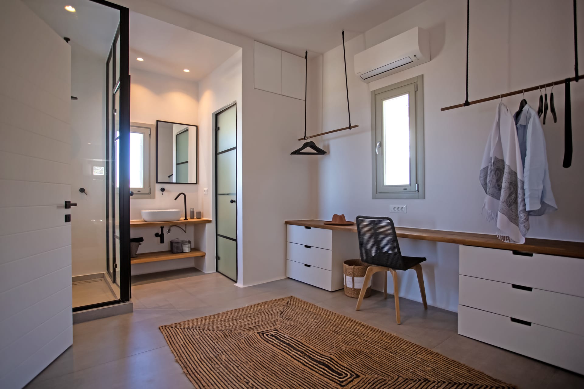 sophisticated minimal, contemporary , luxurious and stylish but also respecting local culture and architecture. designed with relaxed elegance, to serve a family as well as a big group of friends, with focus in functionality. less is more.