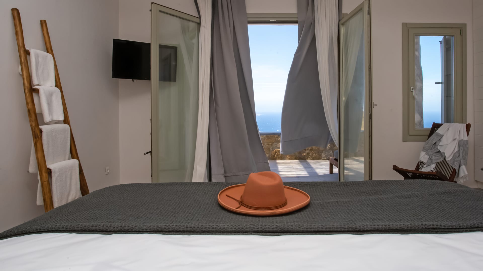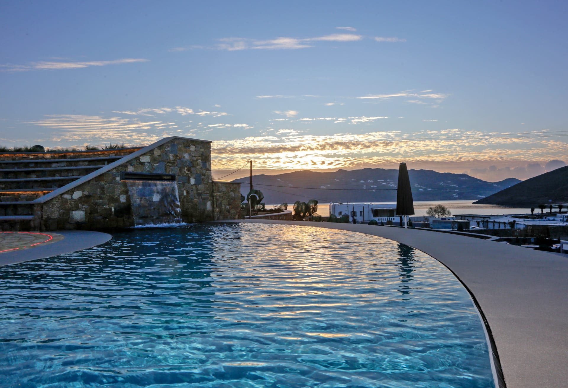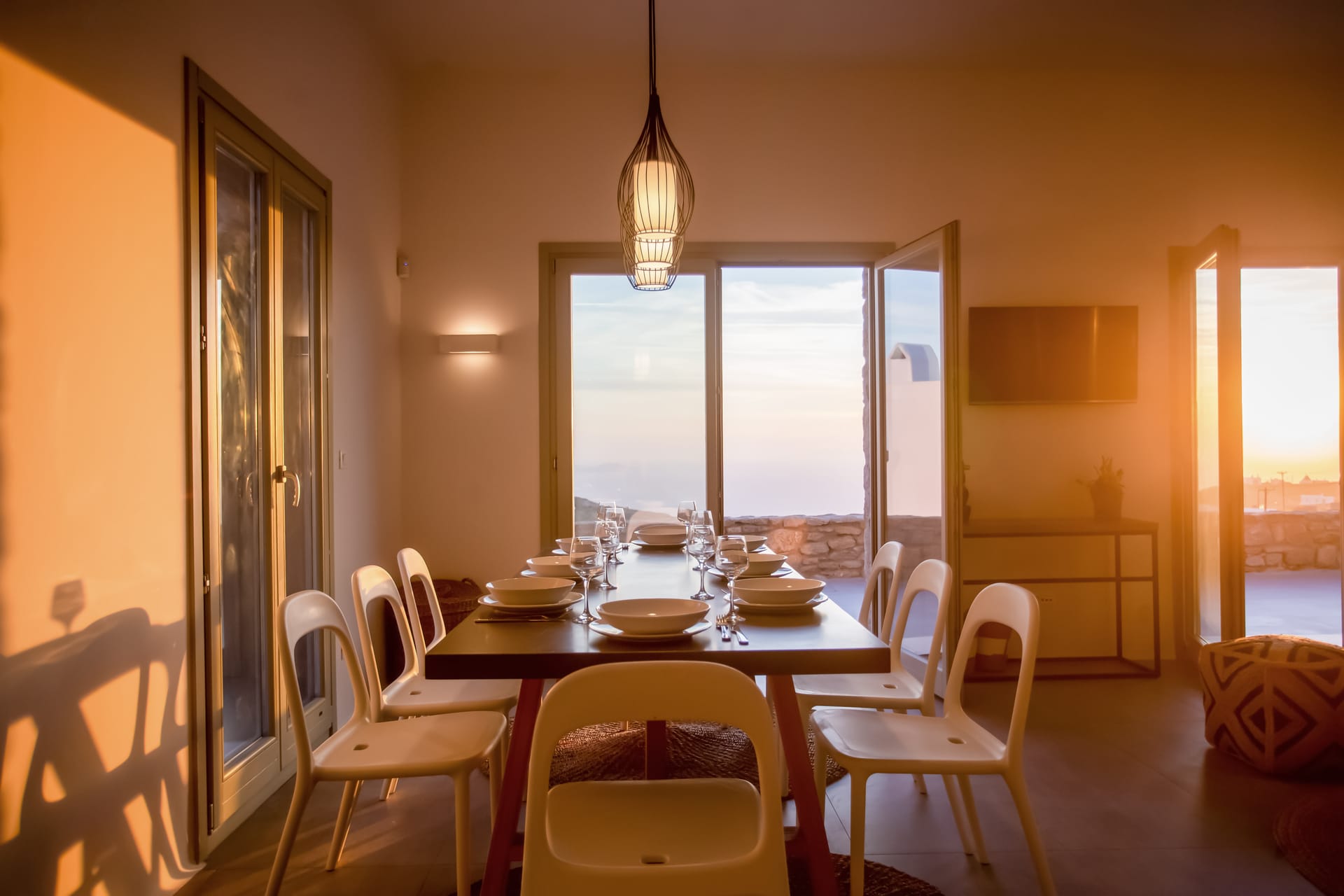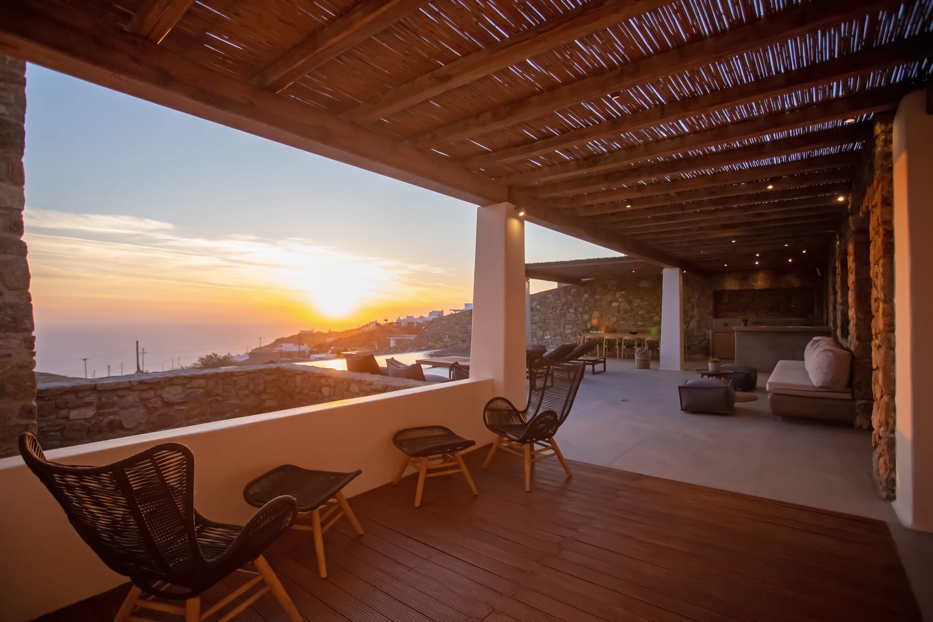 Spectacular views to sea and close islands of Syros, Delos and the Aegean archipelago. Amazing sunset views!