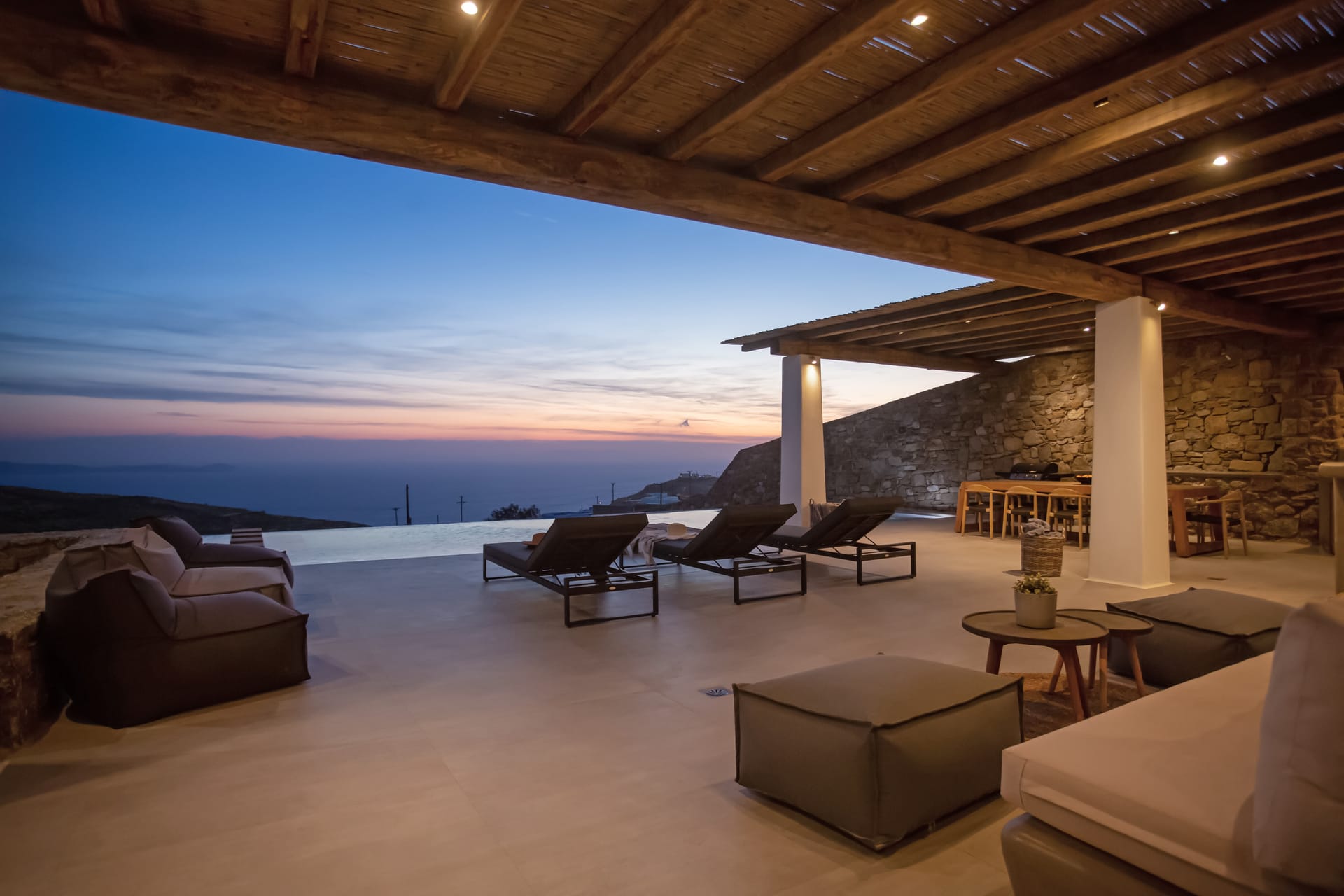 Amazing outdoor space, sea/sunset view, private infinity pool, fully equipped outdoor kitchen, lounge & dining area