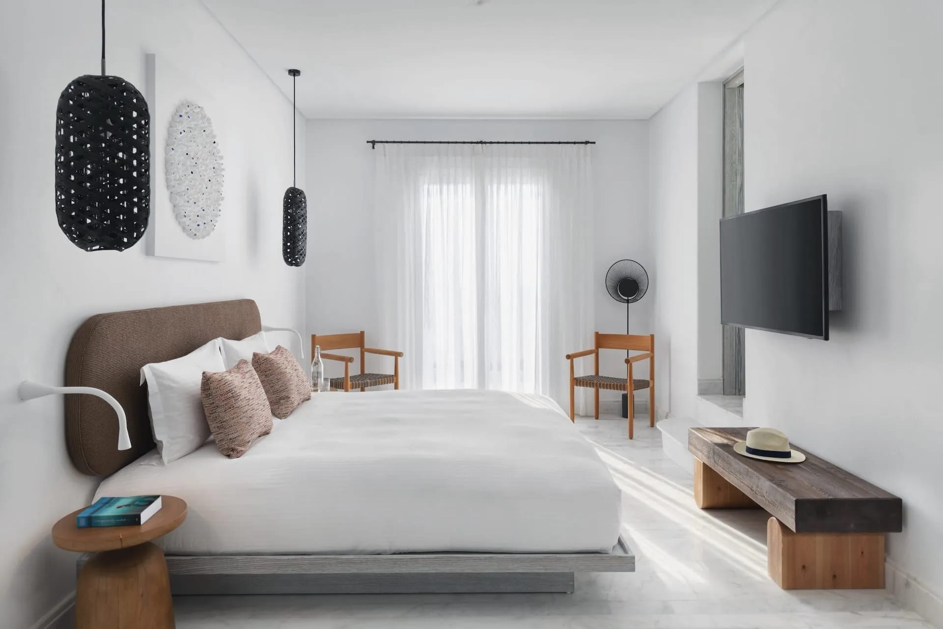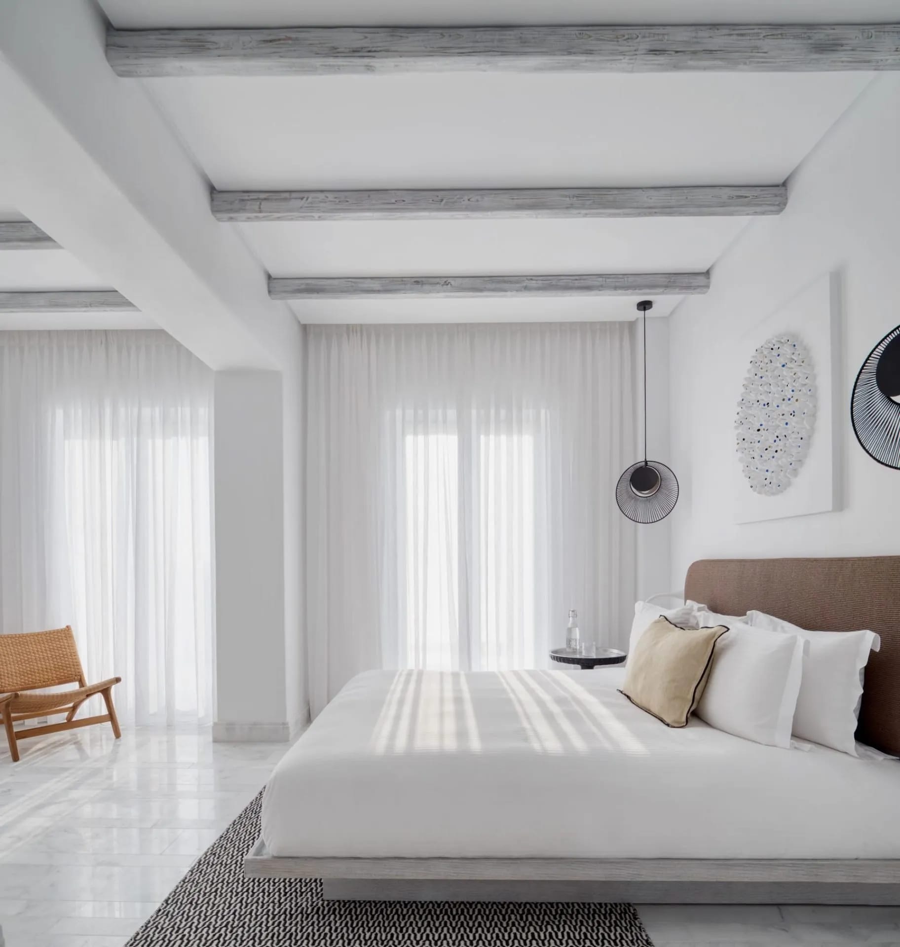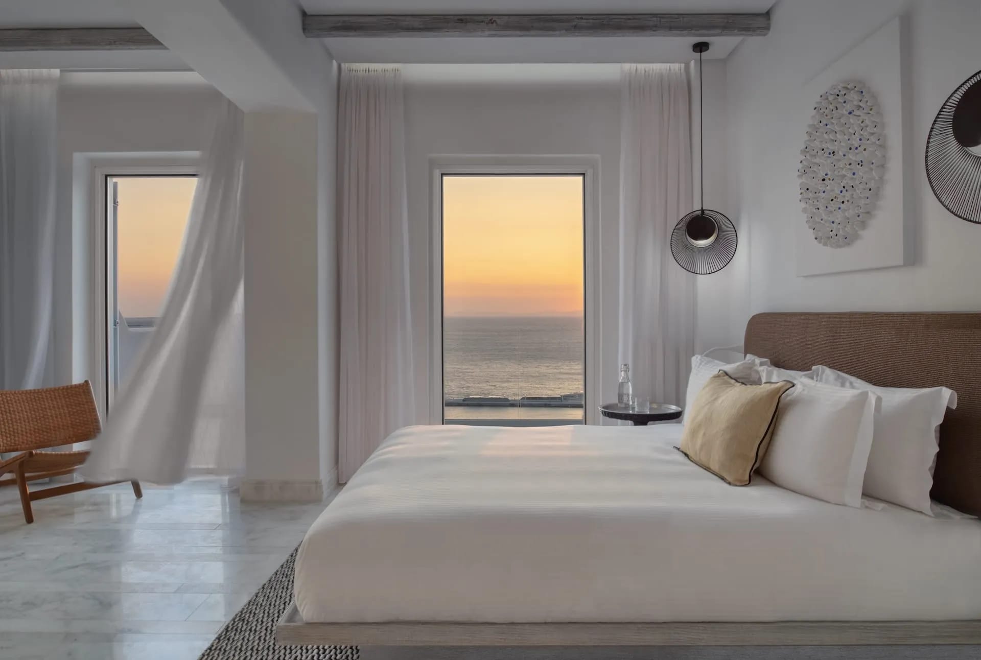 Stunning in its simplicity, seamlessly blending with its surroundings, the Mykonos Riviera 8 bedroom private villa is made for pure indulgence. Addressing the smart, savvy travelers, this impeccably designed, brand new luxury Mykonos villa is perched on the highest point of the Mykonos Riviera resort, affording the most captivating panoramic vistas of the endless horizon, the Aegean Sea, the Sunset and the charming Mykonos Town. Sporting 490 sqm unfolding on three floors the Mykonos Riviera 8 bedroom villa may accommodate up to 30 guests, ensuring absolute privacy and utmost comfort. There are three lavishly appointed 39 sqm rooms, each with a choice of king or twin bedding sleeping up to 3 people, an open plan bathroom and sitting area. In addition to that, the villa offers five expansive 75 sqm suites sleeping up to 4 people, all featuring separate living rooms with double sofa beds, king-size beds, double bathrooms and terraces each. All units at this novel, most opulent villa in Mykonos, are cleverly designed to provide the ultimate privacy and seclusion.
