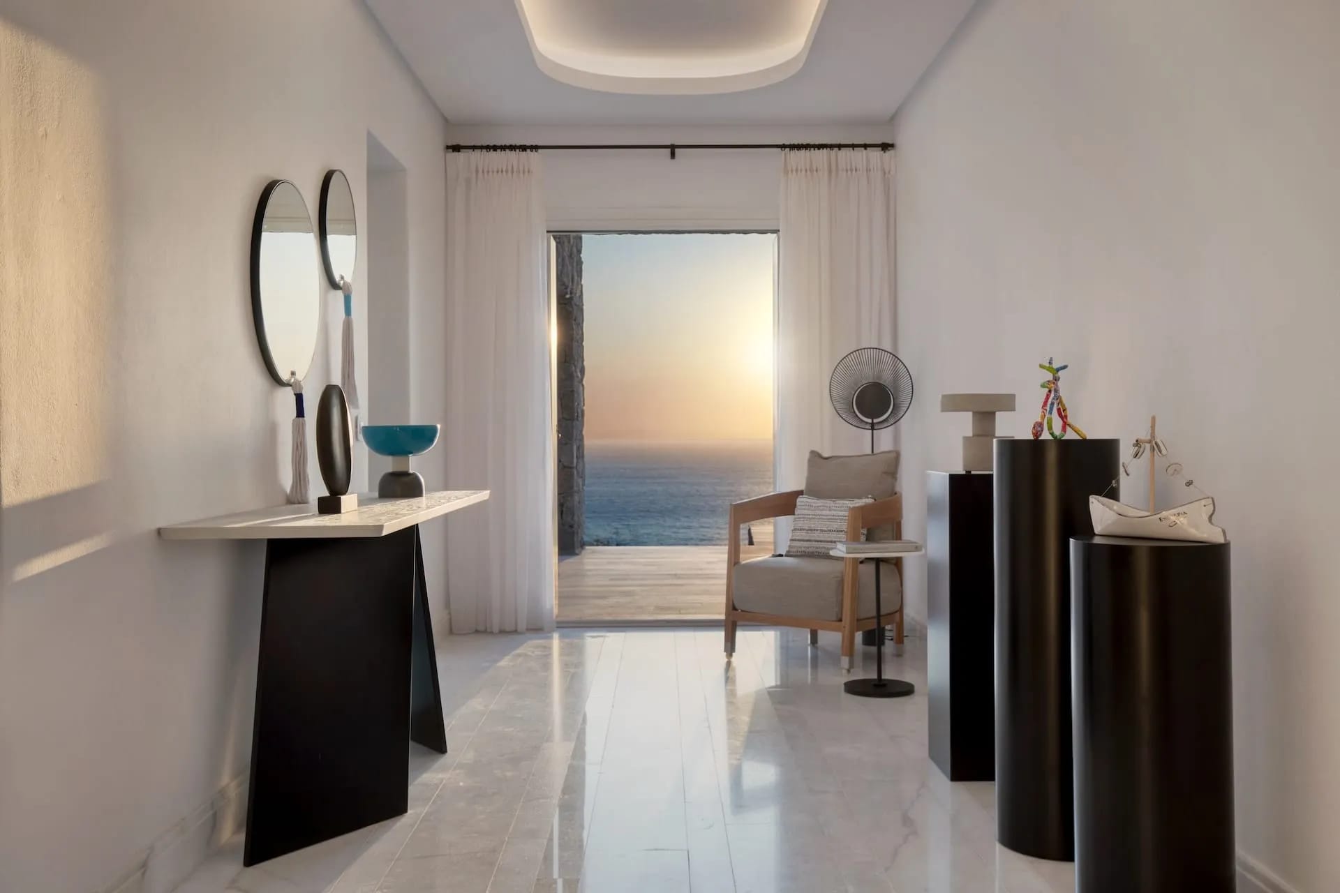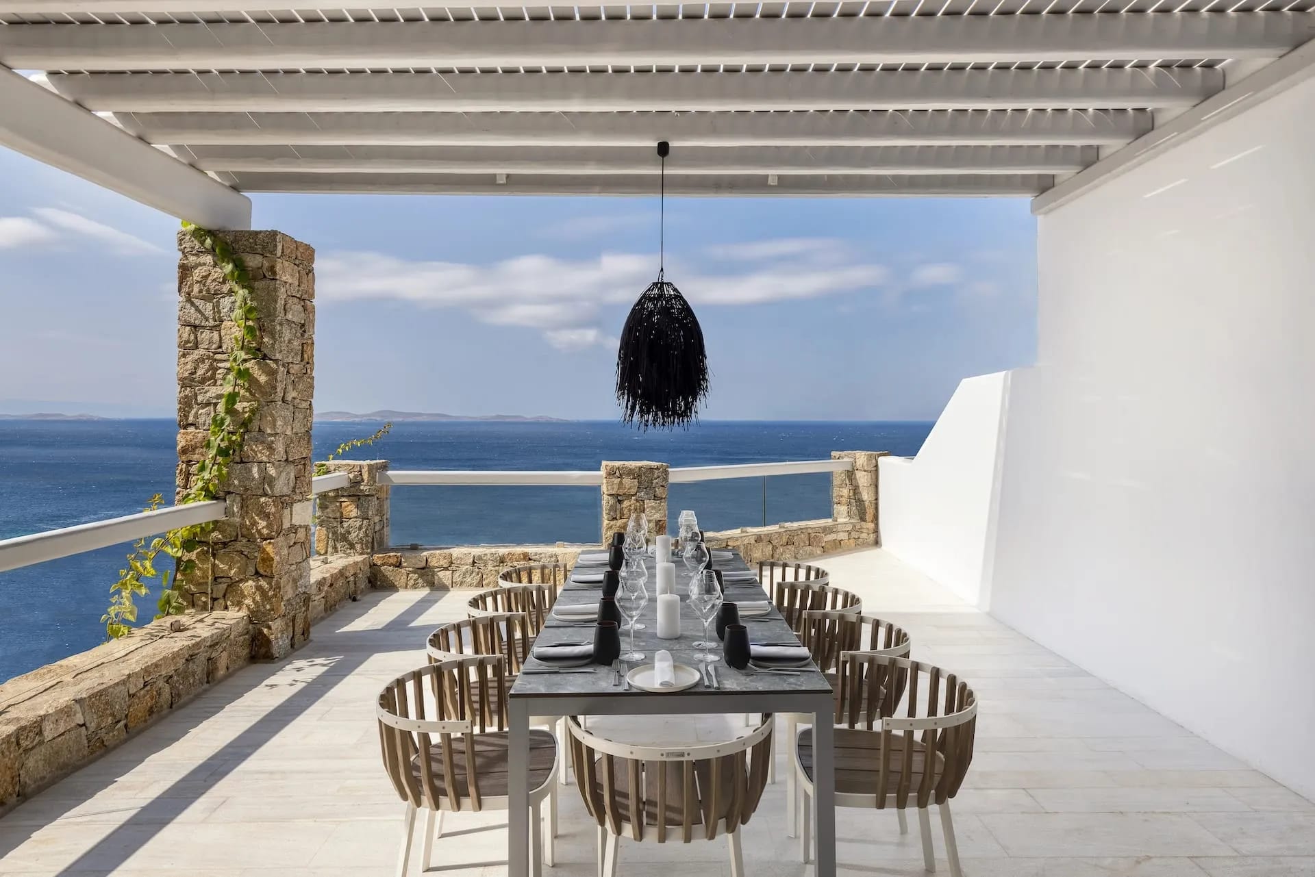 Cutting edge comfort meets a realm of cocooned privacy at the Mykonos Riviera 8 bedroom villa, which comes with a butler service (on request), Blending the privileges of a secluded holiday home with the round the clock, premium services and security of a 5* hotel, the newest luxury villa in Mykonos, offers the best of both worlds, for those who seek nothing else than the ultimate Mykonos experience.