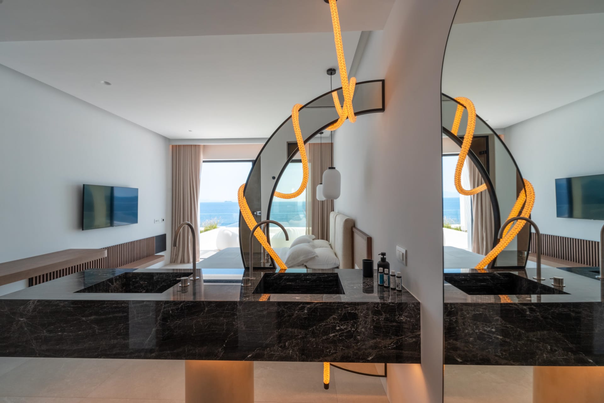 Balcony with Panoramic Views: Step out onto your private balcony to watch the sun sink into the Aegean Sea, enjoy candle-lit dinners under the stars and feel like you’re living life in a postcard.