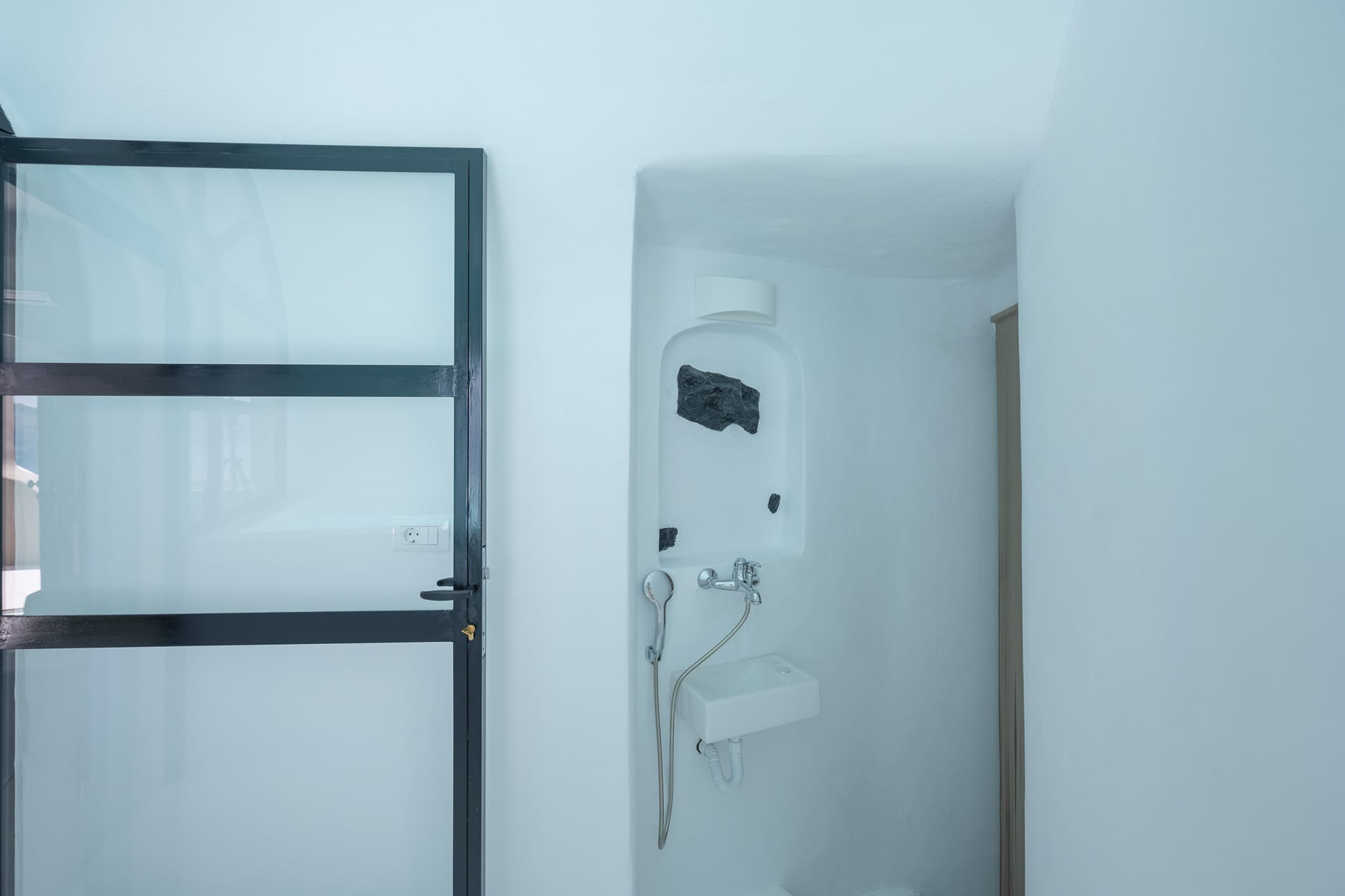 The Master Villa is a luxurious retreat that combines traditional architecture with modern amenities, providing the ultimate Santorini experience. The villa features a spacious living room with a cozy fireplace and two sofa beds, creating a warm and welcoming atmosphere for guests to relax and unwind. The master bedroom boasts a comfortable queen size bed, ensuring a peaceful night's sleep, while the elegant bathroom features a refreshing shower. Additionally, a second bathroom offers added convenience for guests. The highlight of the villa is the heated plunge pool, which is half inside and half outside, offering breathtaking views of the Santorini Caldera and the shimmering Aegean Sea. The veranda is the perfect place to enjoy a romantic dinner or watch the sunset while sipping on a cocktail. The Master Villa is the ultimate destination for couples and friends seeking luxury, comfort, and serenity, and is sure to leave guests with memories that will last a lifetime.