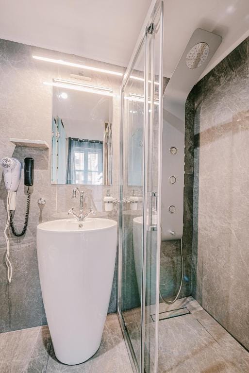 Offering free toiletries and bathrobes, this triple room includes a private bathroom with a walk-in shower, a bath and a hairdryer. The air-conditioned triple room offers a flat-screen TV with streaming services, a private entrance, soundproof walls, a minibar as well as an inner courtyard view. The unit has 2 beds.