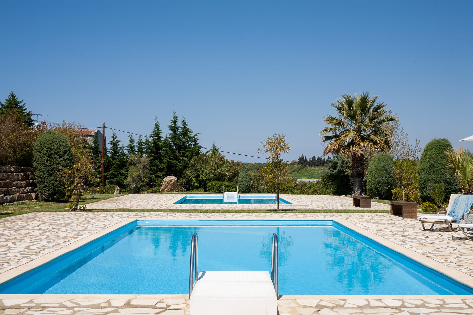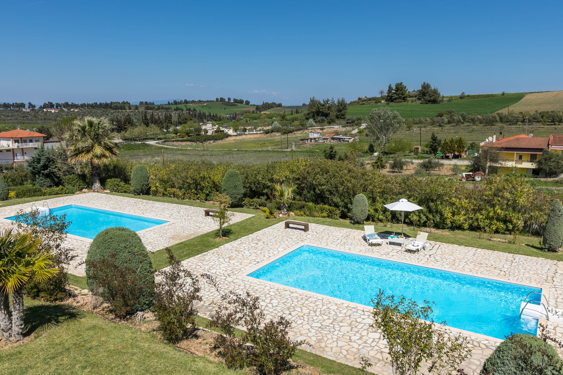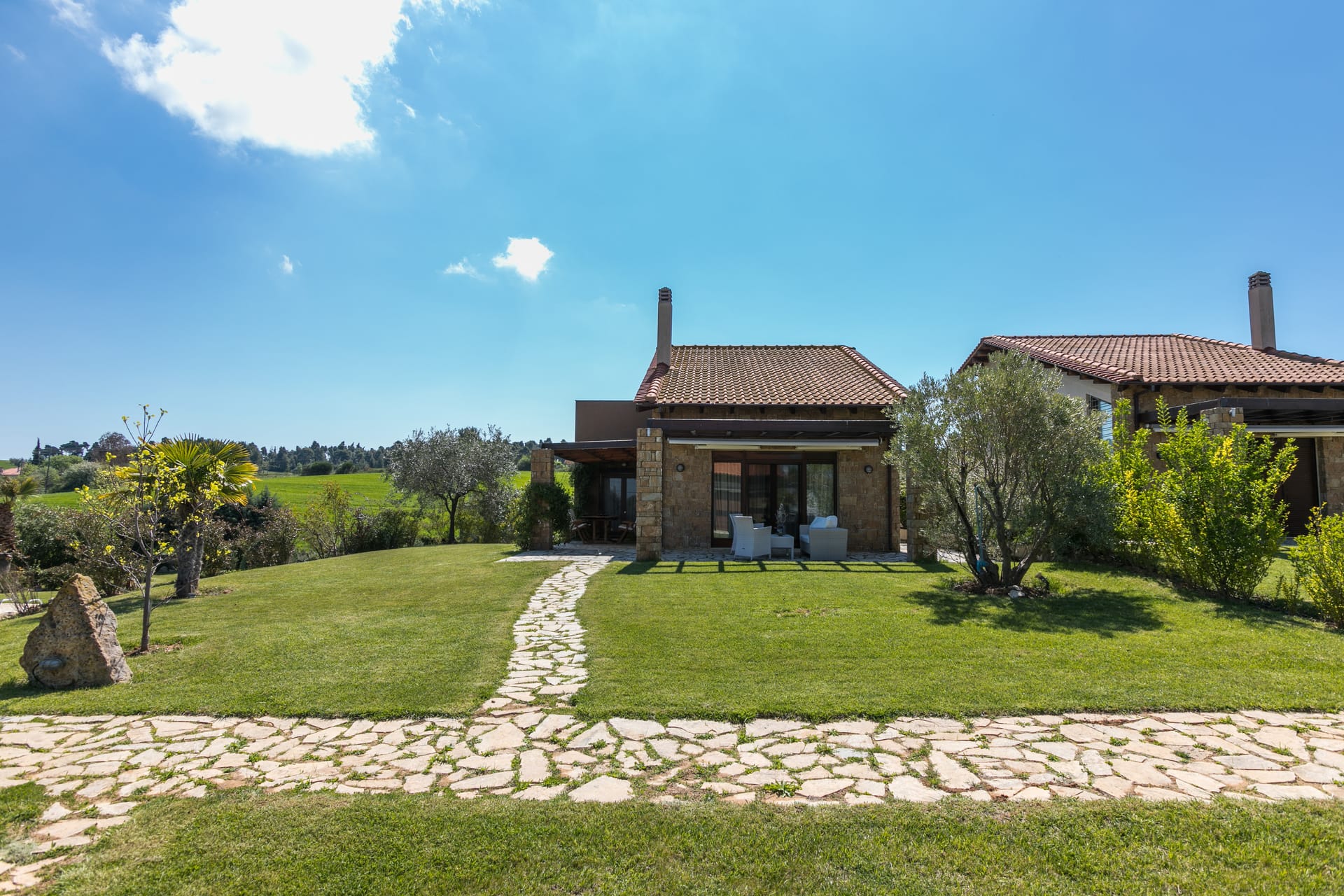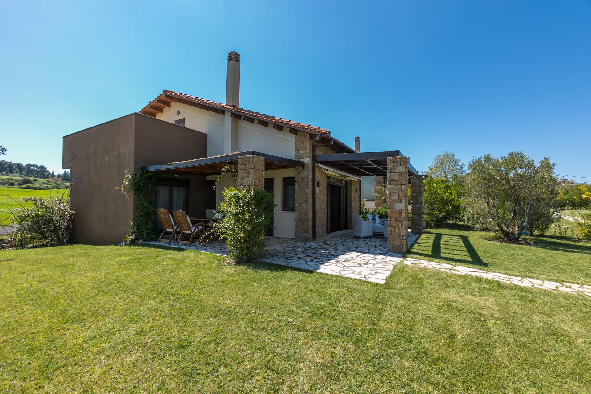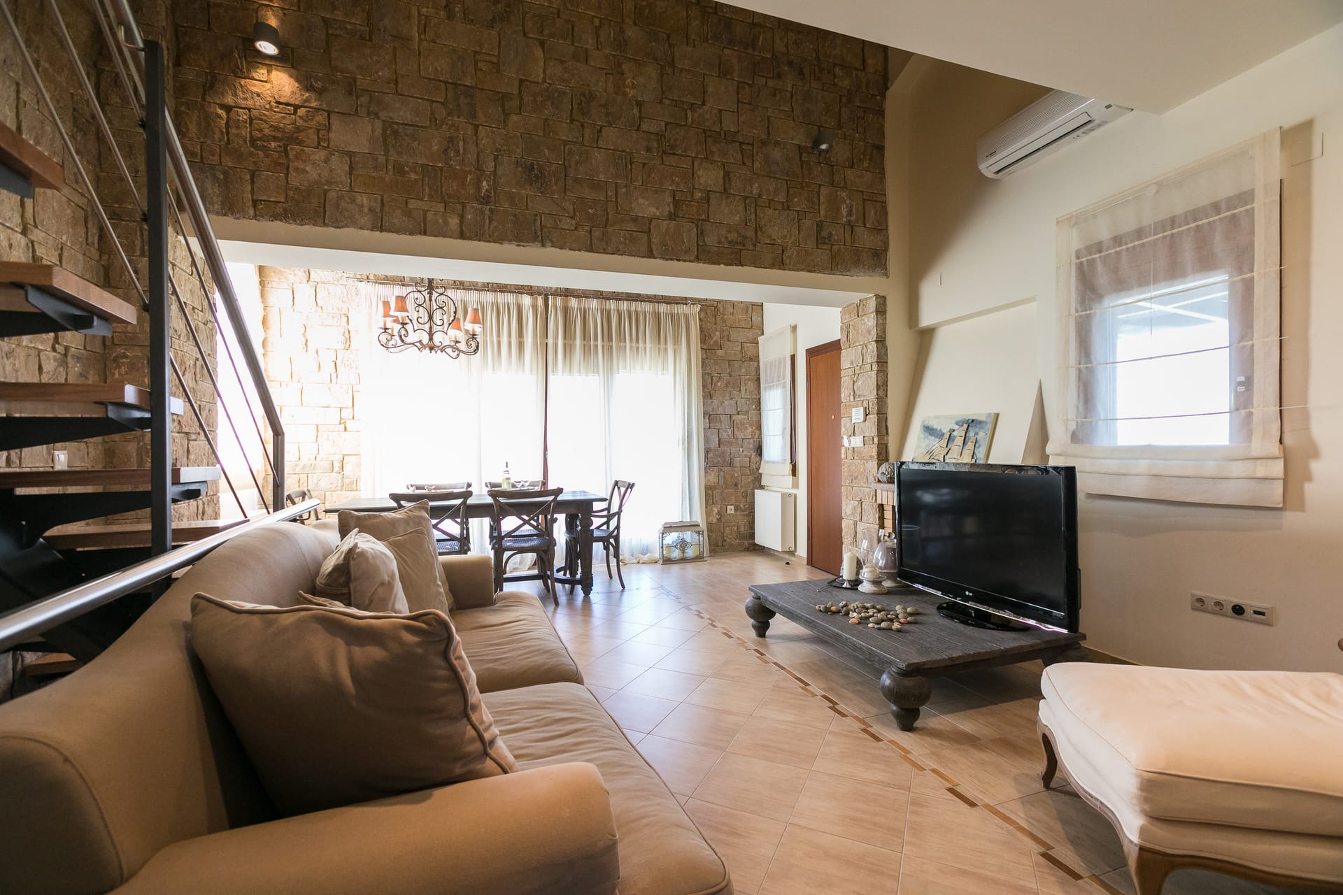 Serenity Villa 1 in Sani, Chalkidiki, is a spacious 3-bedroom, 3-bathroom retreat, blending elegant rustic charm with modern comforts! Spanning 130m² across three levels, it accommodates up to 6 adult and 2 clildrens. The loft-style master suite features an en-suite bathroom and private balcony, while the lounge, fully equipped kitchen, patio with BBQ, and shared pool-facing view create the perfect setting to relax. Enjoy WiFi, A/C, and free parking in a serene location.
