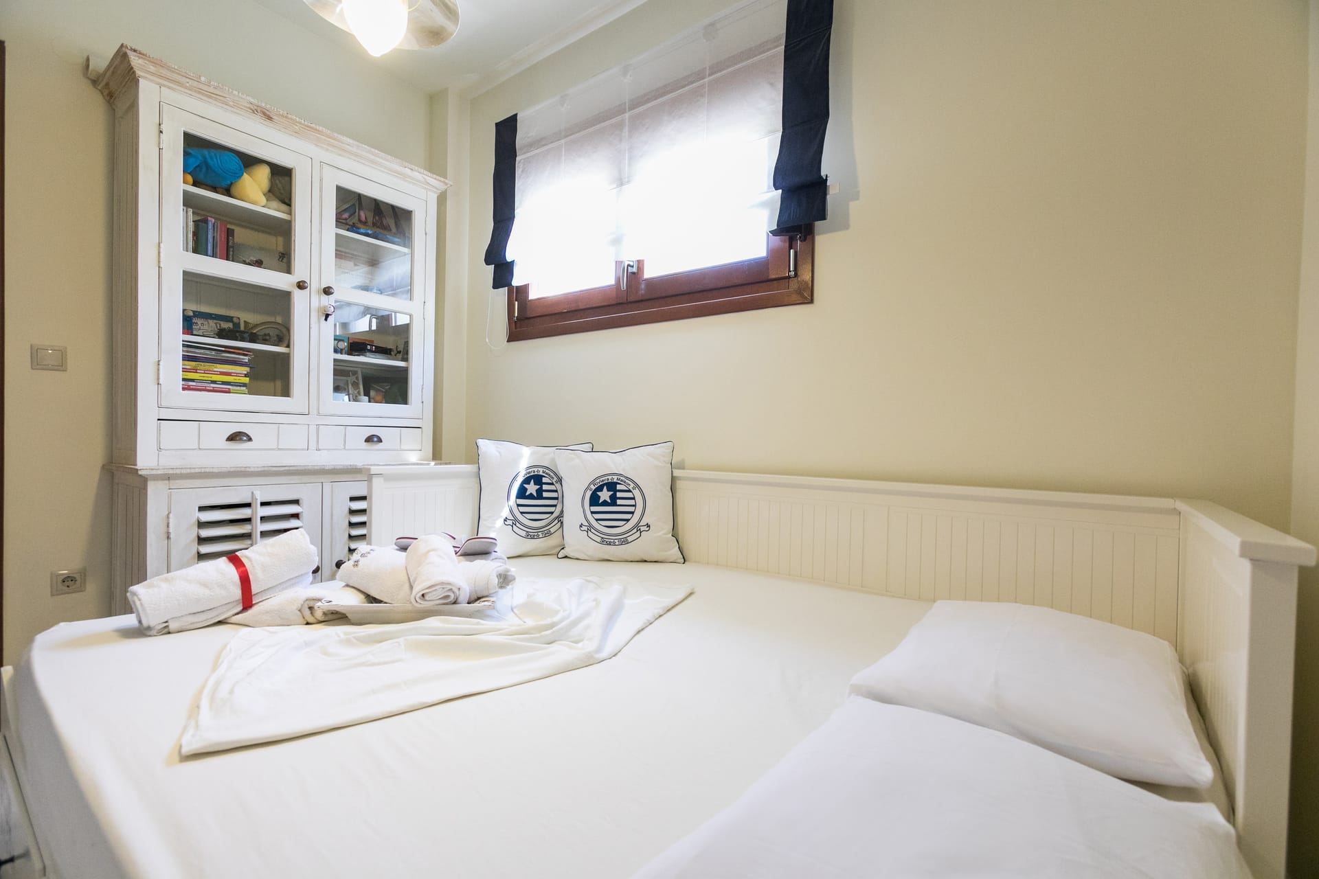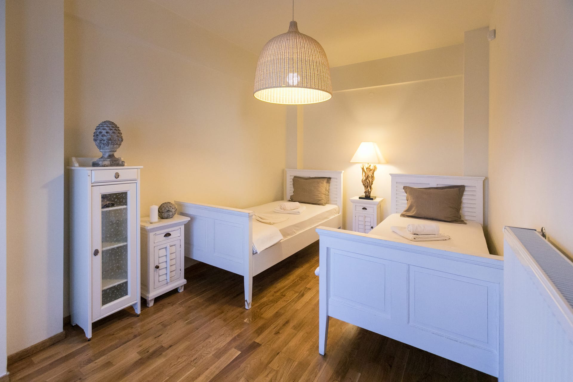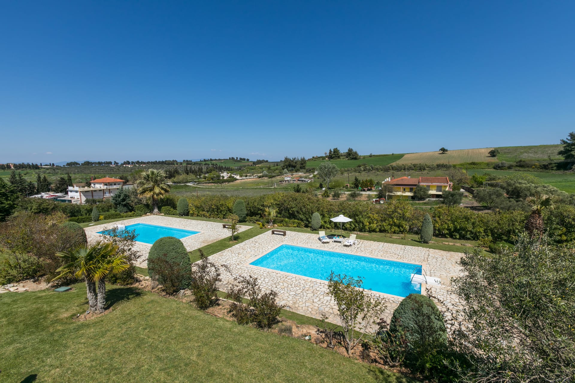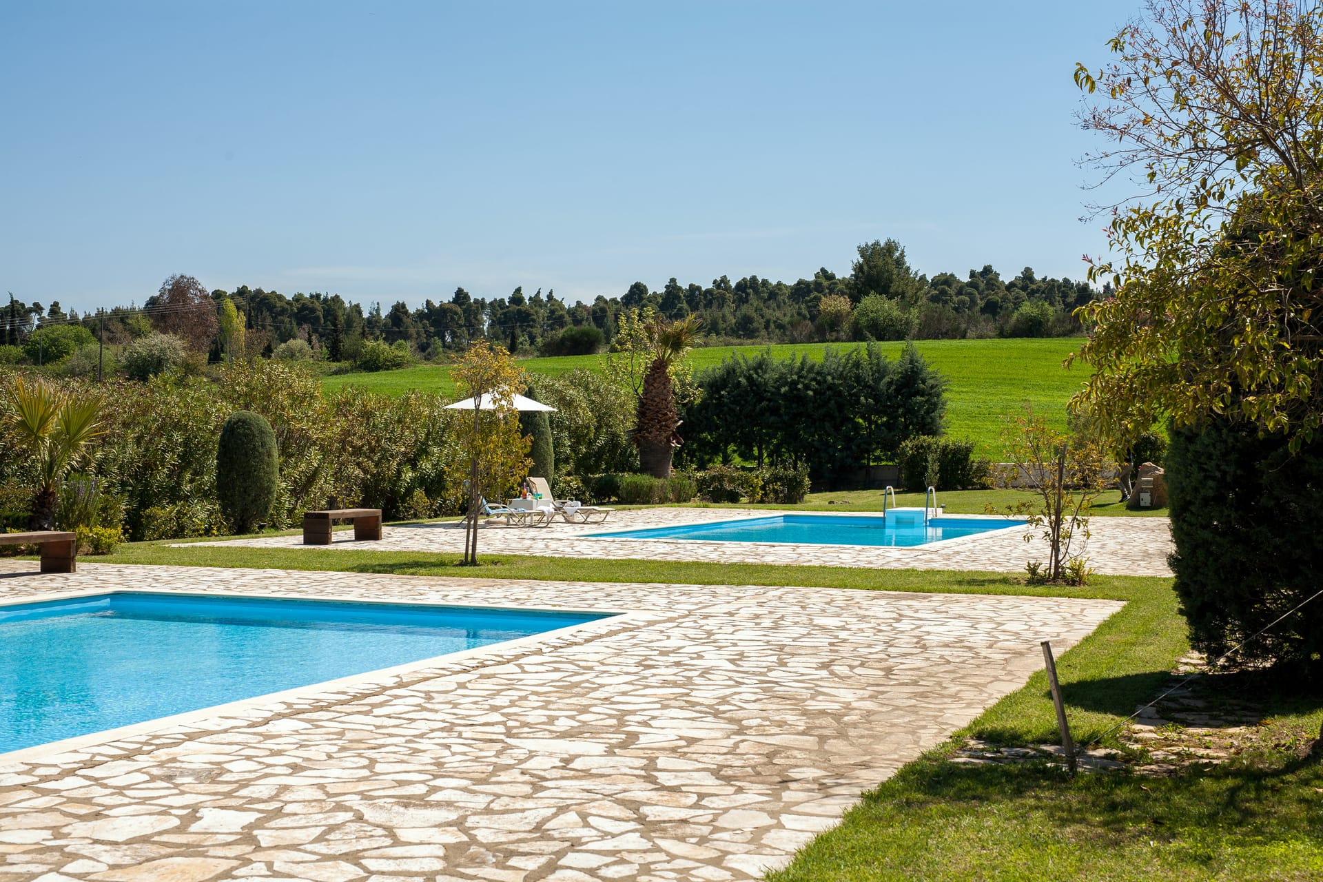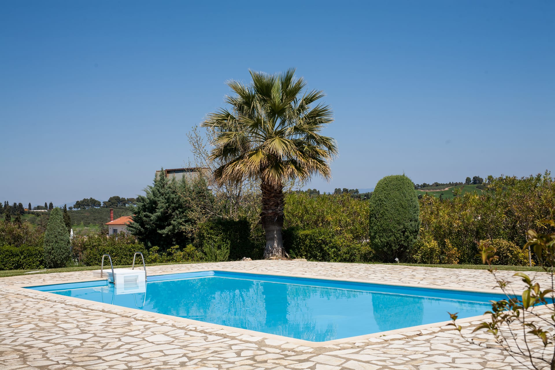 Serenity Villa 1 in Sani, Chalkidiki, is a spacious 3-bedroom, 3-bathroom retreat, blending elegant rustic charm with modern comforts! Spanning 130m² across three levels, it accommodates up to 6 adult and 2 clildrens. The loft-style master suite features an en-suite bathroom and private balcony, while the lounge, fully equipped kitchen, patio with BBQ, and shared pool-facing view create the perfect setting to relax. Enjoy WiFi, A/C, and free parking in a serene location.