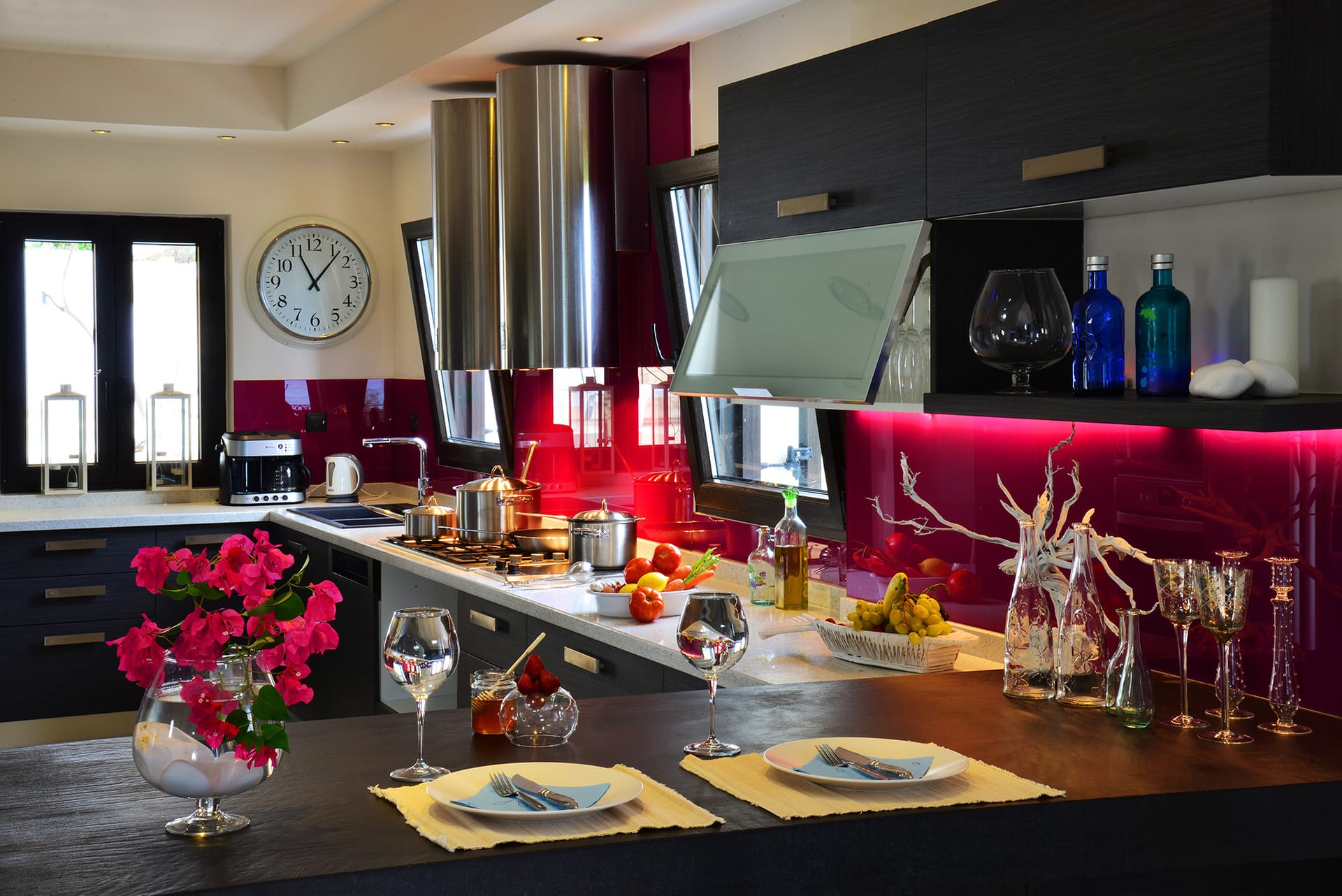 The Outdoor area includes the L-shaped swimming pool which is surrounded by lounges and is part-shaded. Guests can also enjoy dinners al fresco and relax with their loved ones. The breathtaking view and the remarkable sunsets add an extra for an unforgettable accommodation experience.