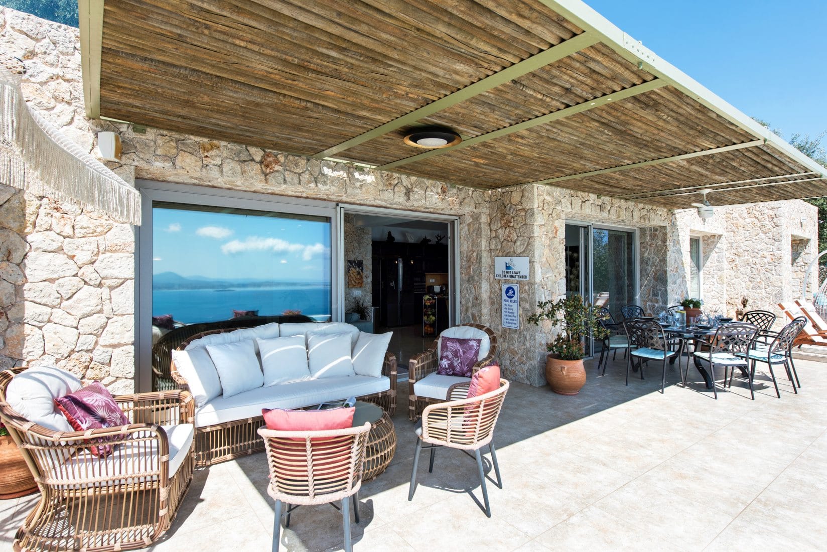 The 300 m2 exquisite property expands into two levels, has 6 bedrooms, and can comfortably accommodate up to 12 guests.