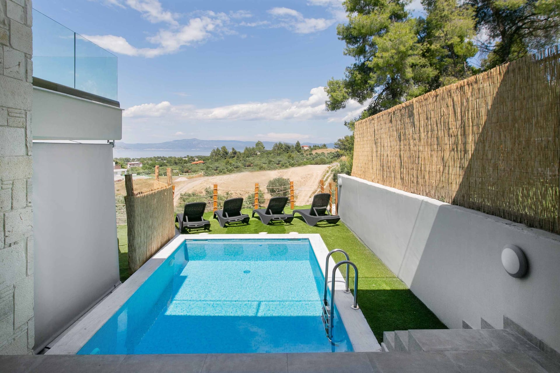 The high-end luxurious Villa Sublime is truly an earthly paradise of carefreeness and serenity for its guests providing the perfect retreat and a classic Mediterranean escape in the lush hills of the emerald island of Greece. Designed for optimal comfort and wellness, offering two infinity pools set on different levels that are joined by a waterfall, home gym, spa, hammam, and jacuzzi with a sea view. In addition, the villa boasts an outdoor home cinema to live an ultimate movie experience and a private dock to approach the neighboring islands.