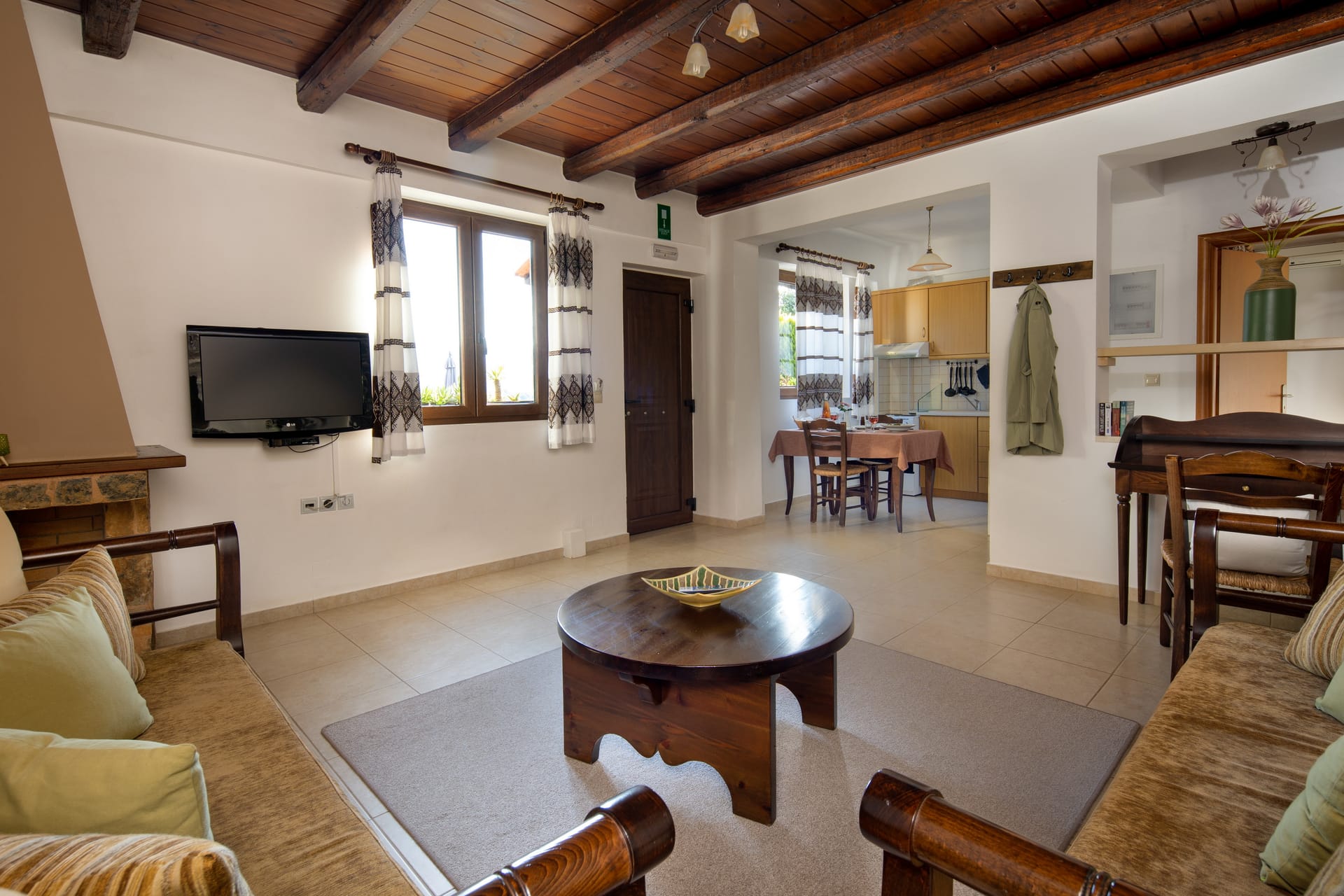 As you enter the Villa, there is a spacious living area offering unobstructed views of the azure waters and the horizon with direct access to the pool area, a dining area for 12 people, a fully equipped kitchen with a pantry, and an ensuite Master Bedroom with a King-Size bed, private dressing room, and access to a sea-facing terrace.