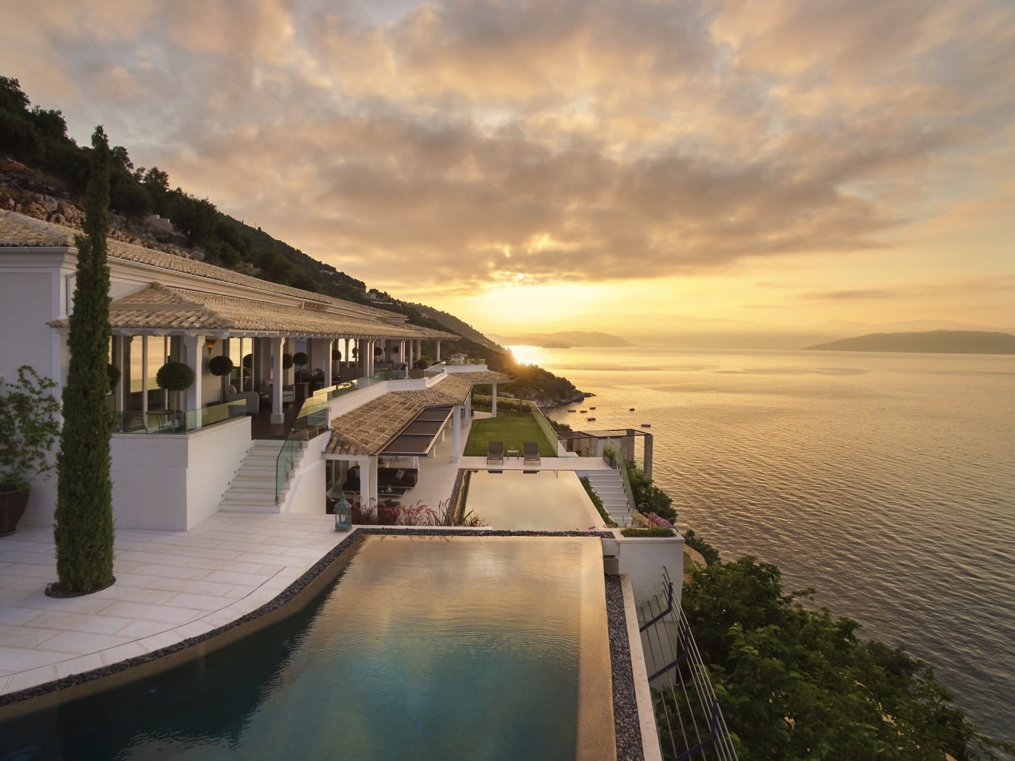 Ideally located in the cosmopolitan Corfu Island, Villa Sublime is a spectacular hillside villa with an unparalleled 180-degree impeccable view of the Ionian Sea.
