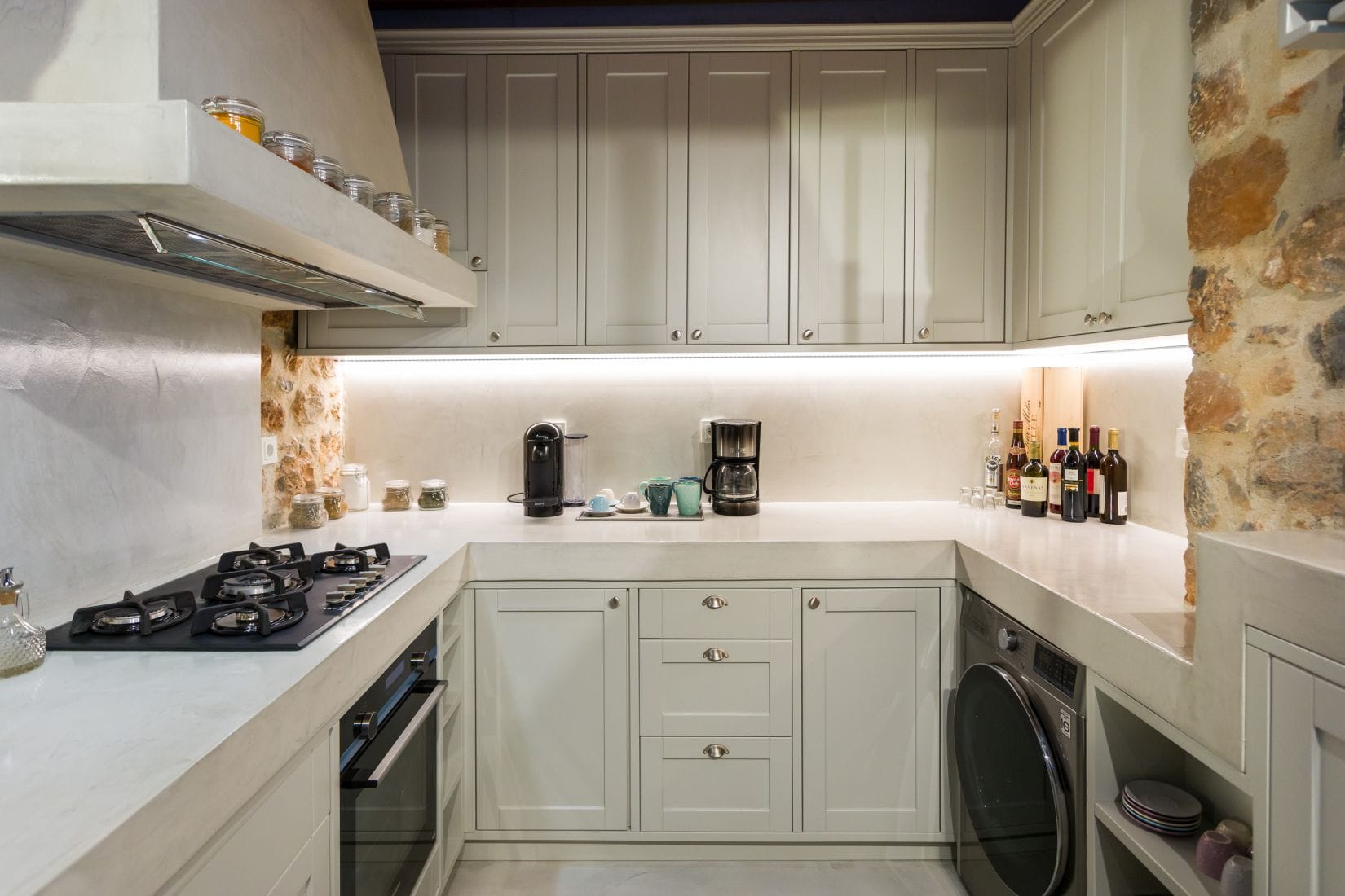 The kitchen boasts top-of-the-line appliances, including a gas stove, electric oven, microwave, dishwasher, and a large refrigerator. It’s a culinary paradise, complemented by a Nespresso coffee machine for your morning brews.
