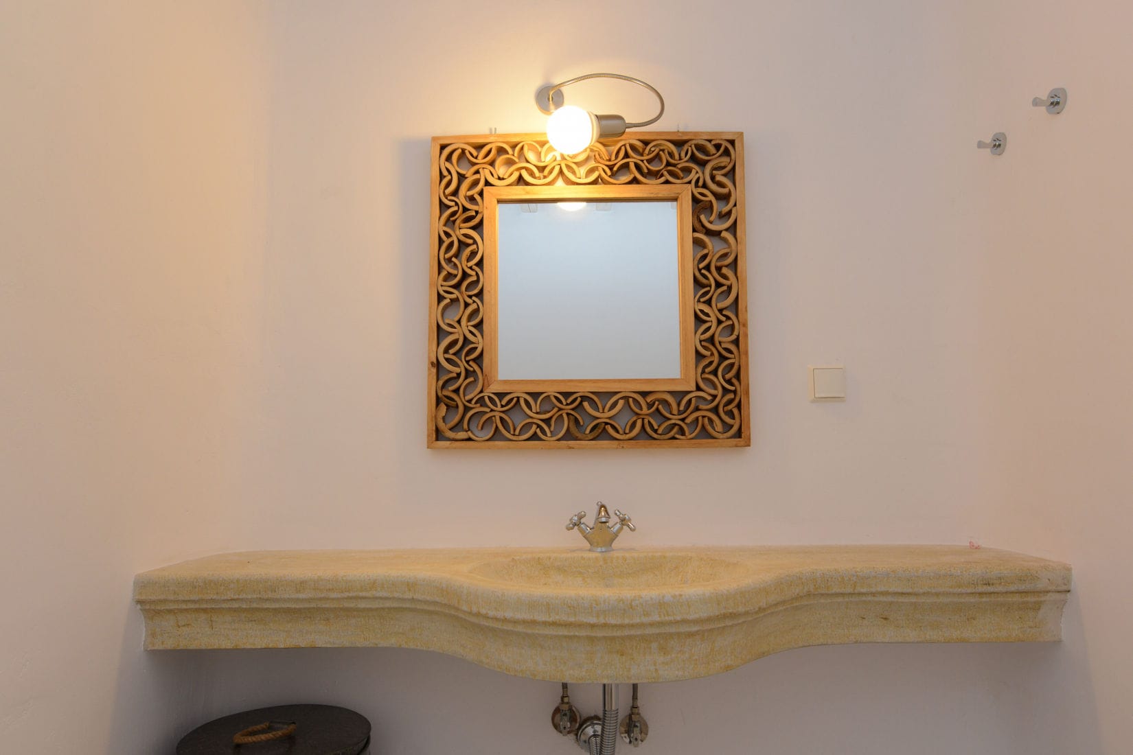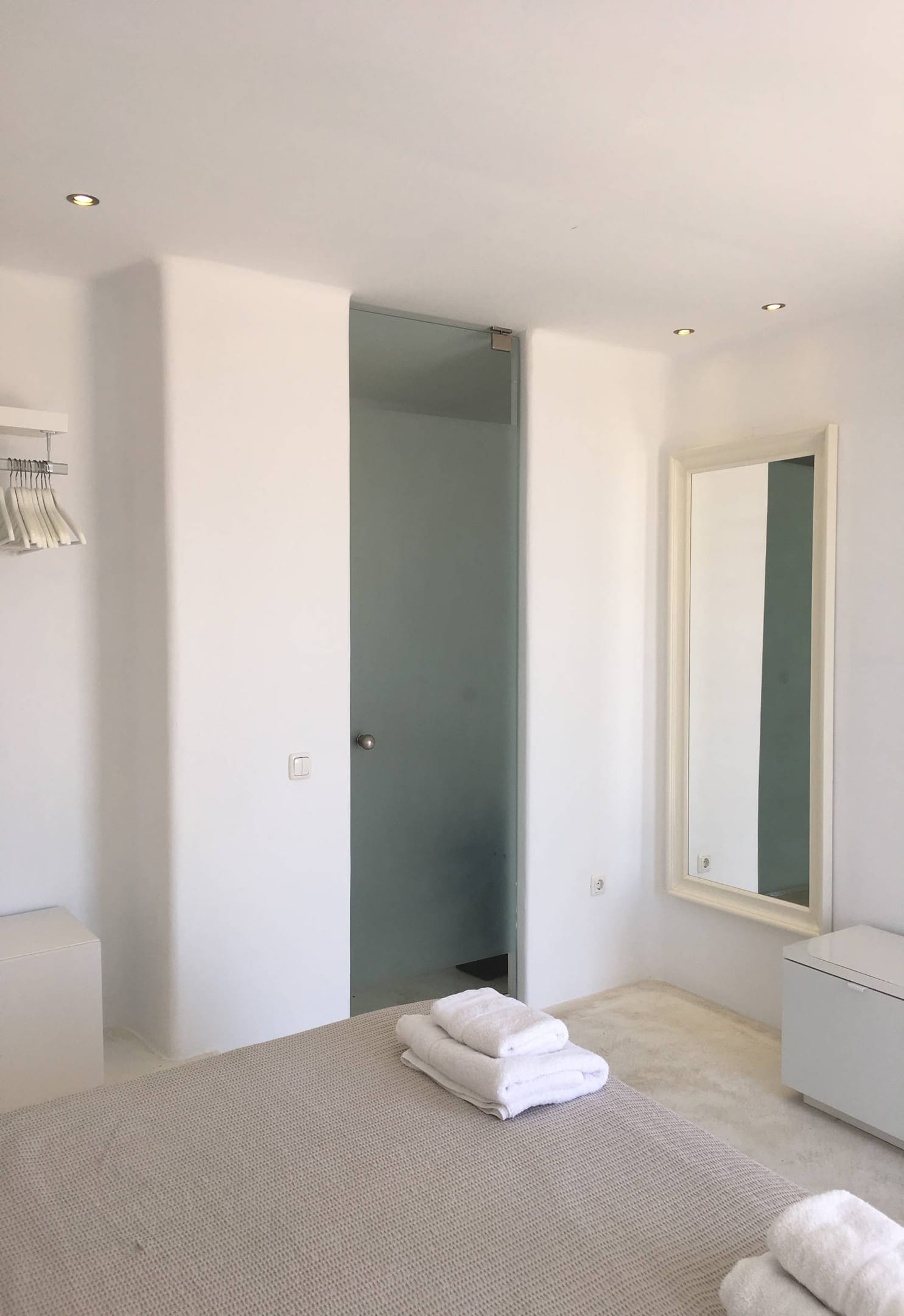 On the ground floor, there are two bedrooms (a Master bedroom with ensuite bathroom and a bedroom with beds and ensuite bathroom). Both bedrooms have a balcony with stunning views of the Aegean Sea.
