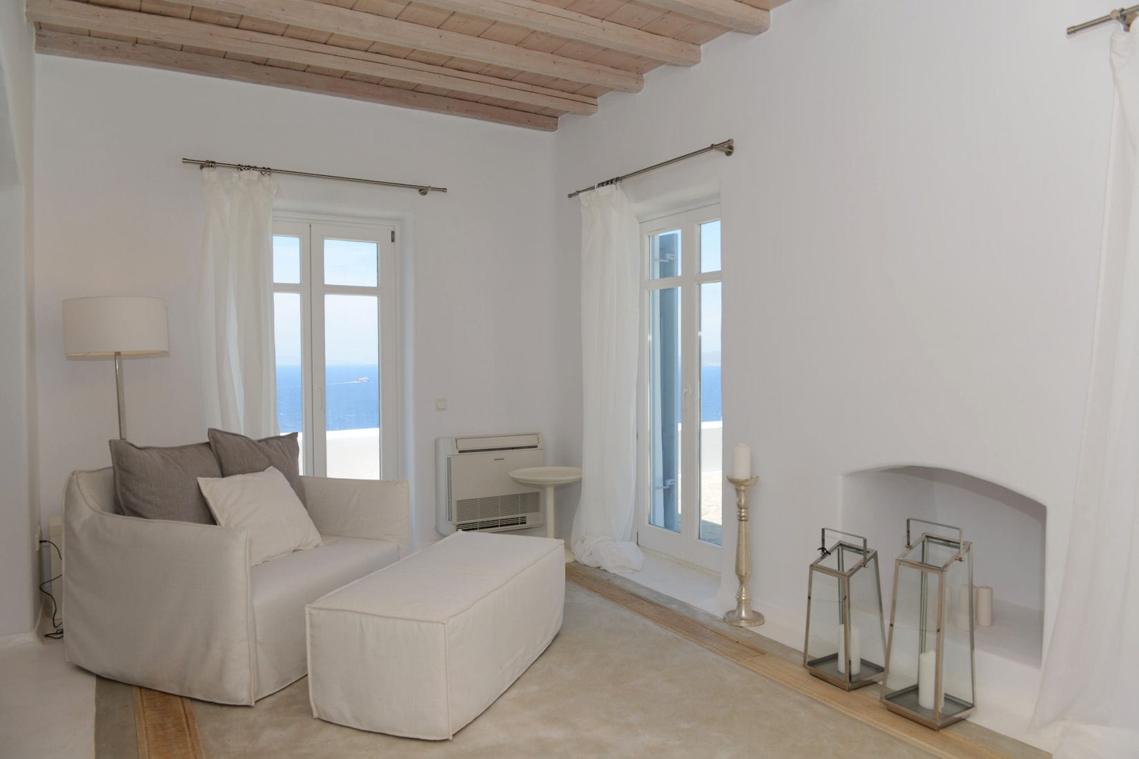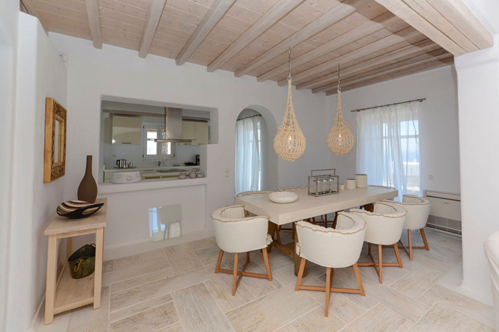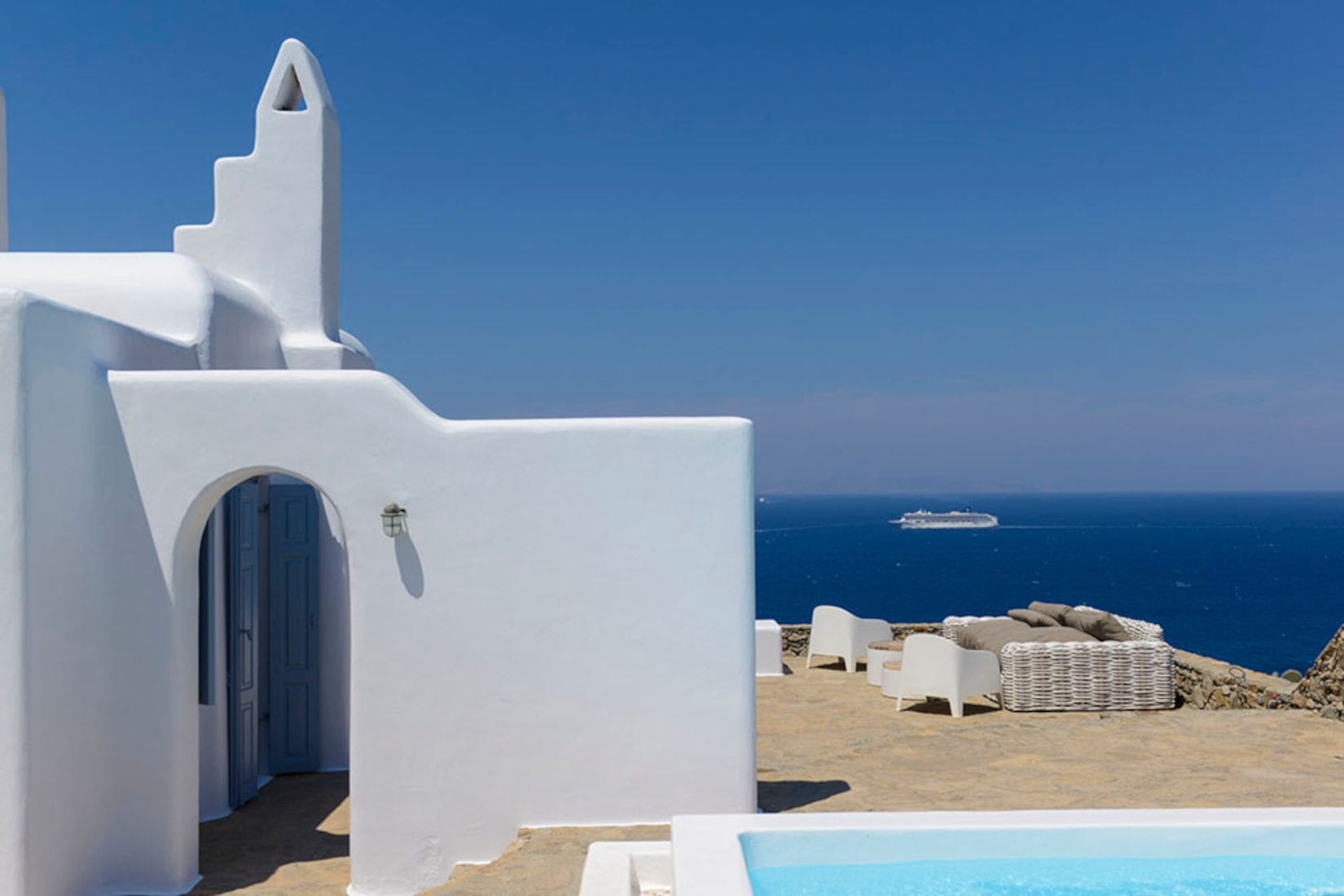 The villa is designed with tasteful decorations, that reflect the Mykonian elegance and includes a pool with amazing sunset and Aegean Sea Views.