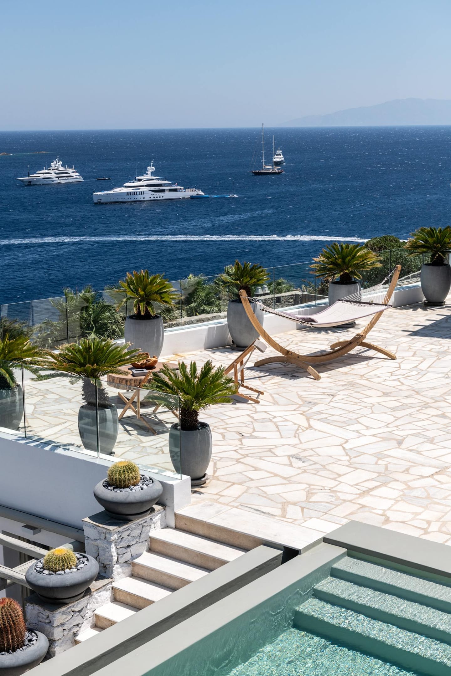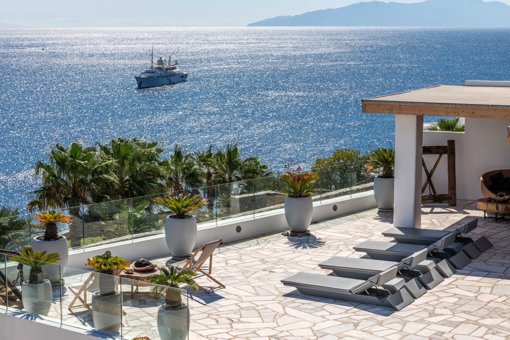Villa Eolia offers majestic views overlooking Psarou bay so that the guest can oversee all the real action of Mykonos while relaxing. This modern villa is the ideal property for guests who are seeking moments of tranquility.