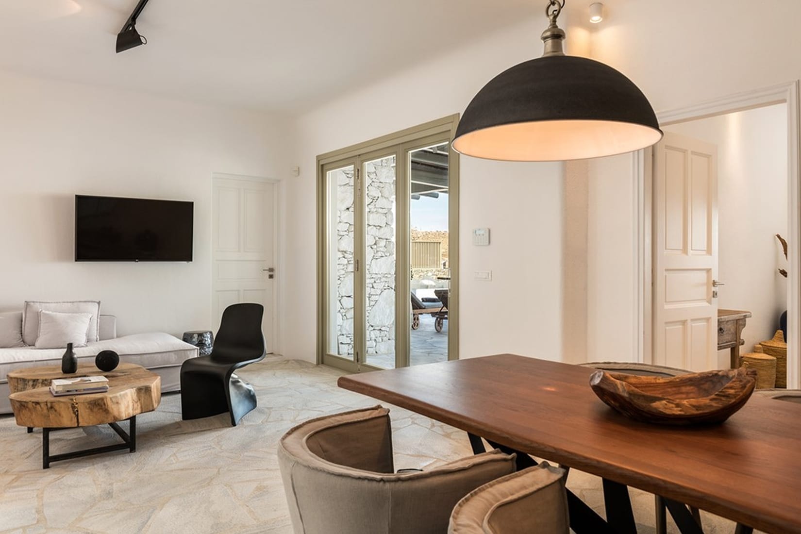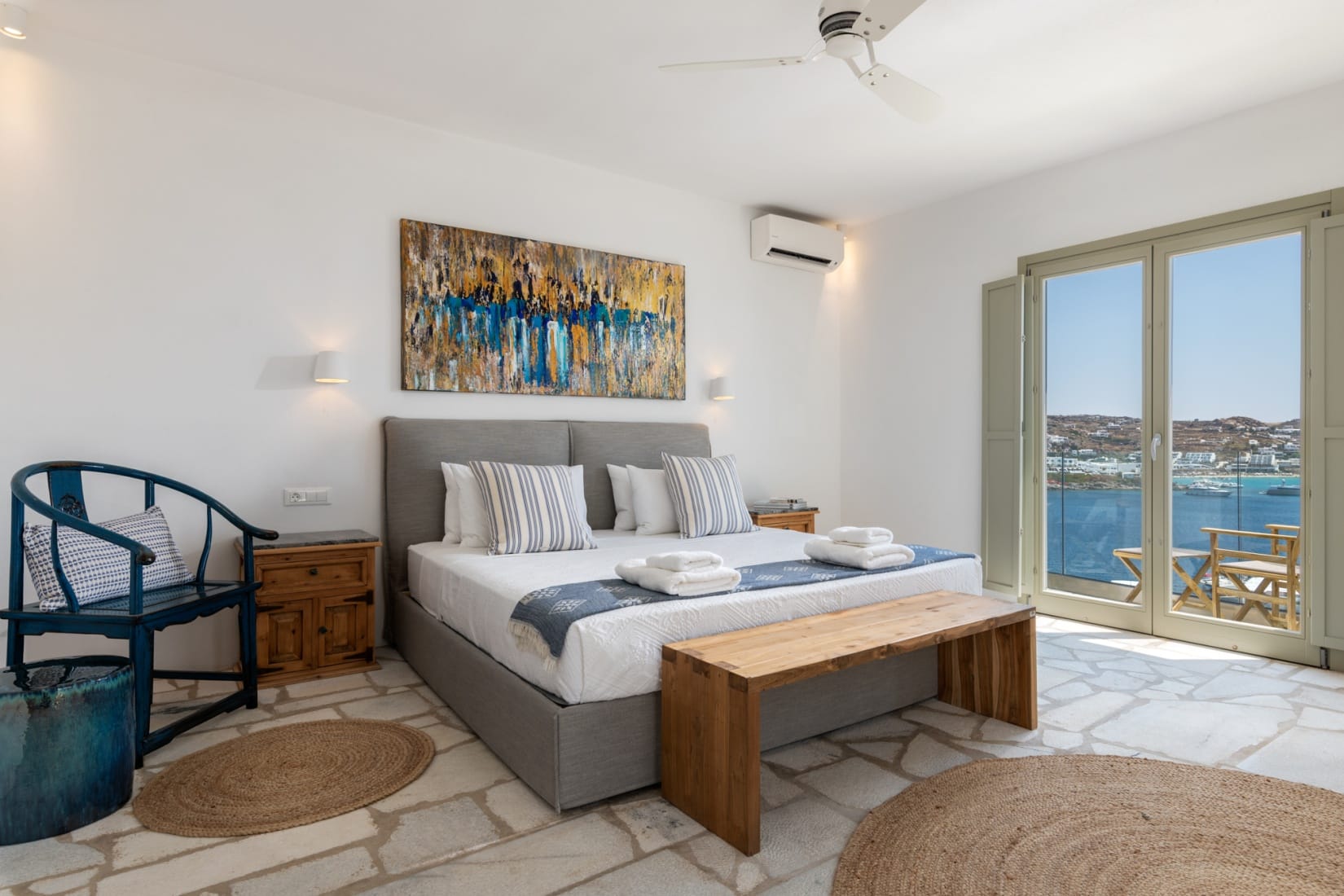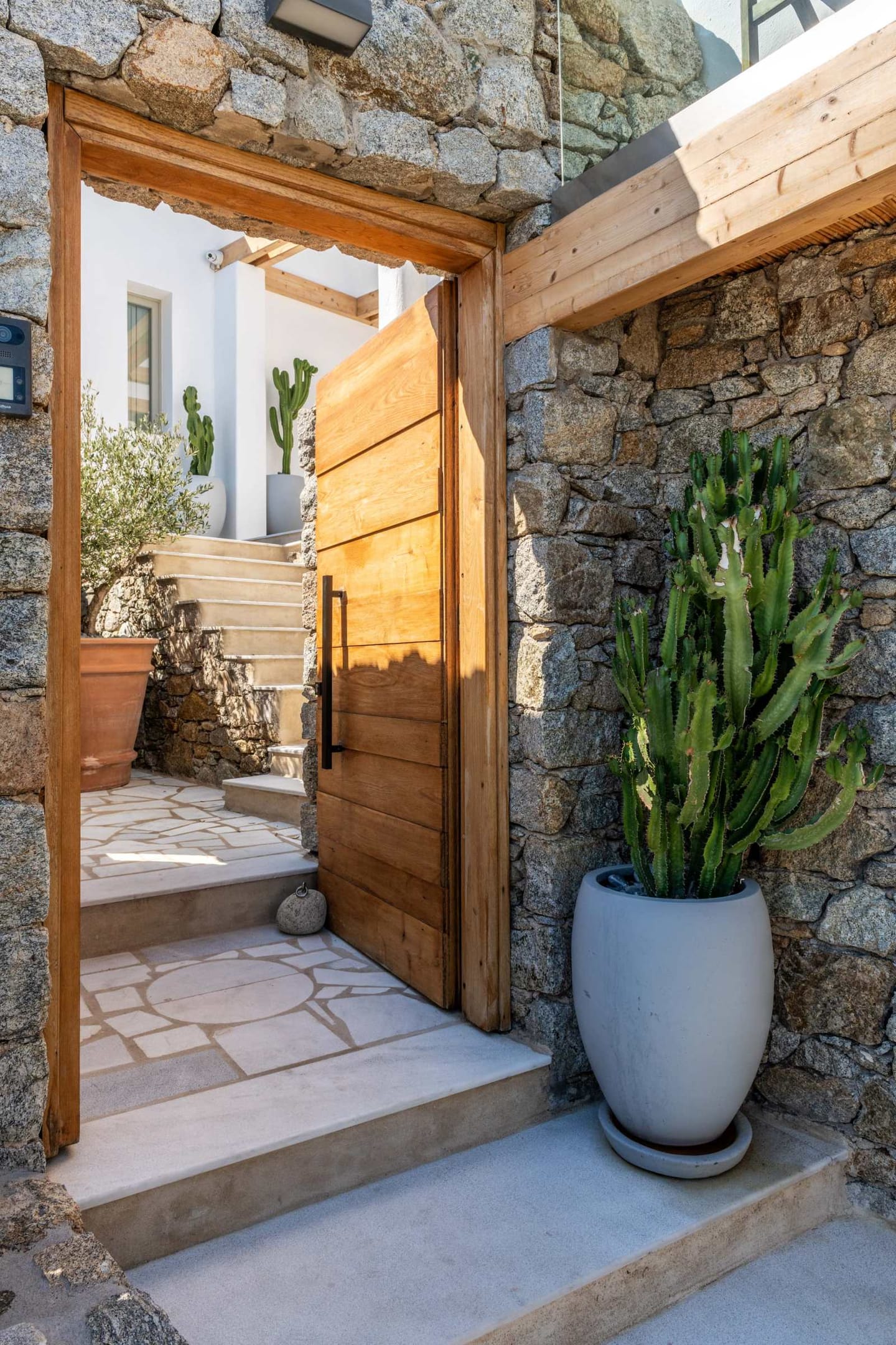 This amazing property, loyal to the Cycladic architecture designed with traditional stones is harmonically blended with the island’s vibes.