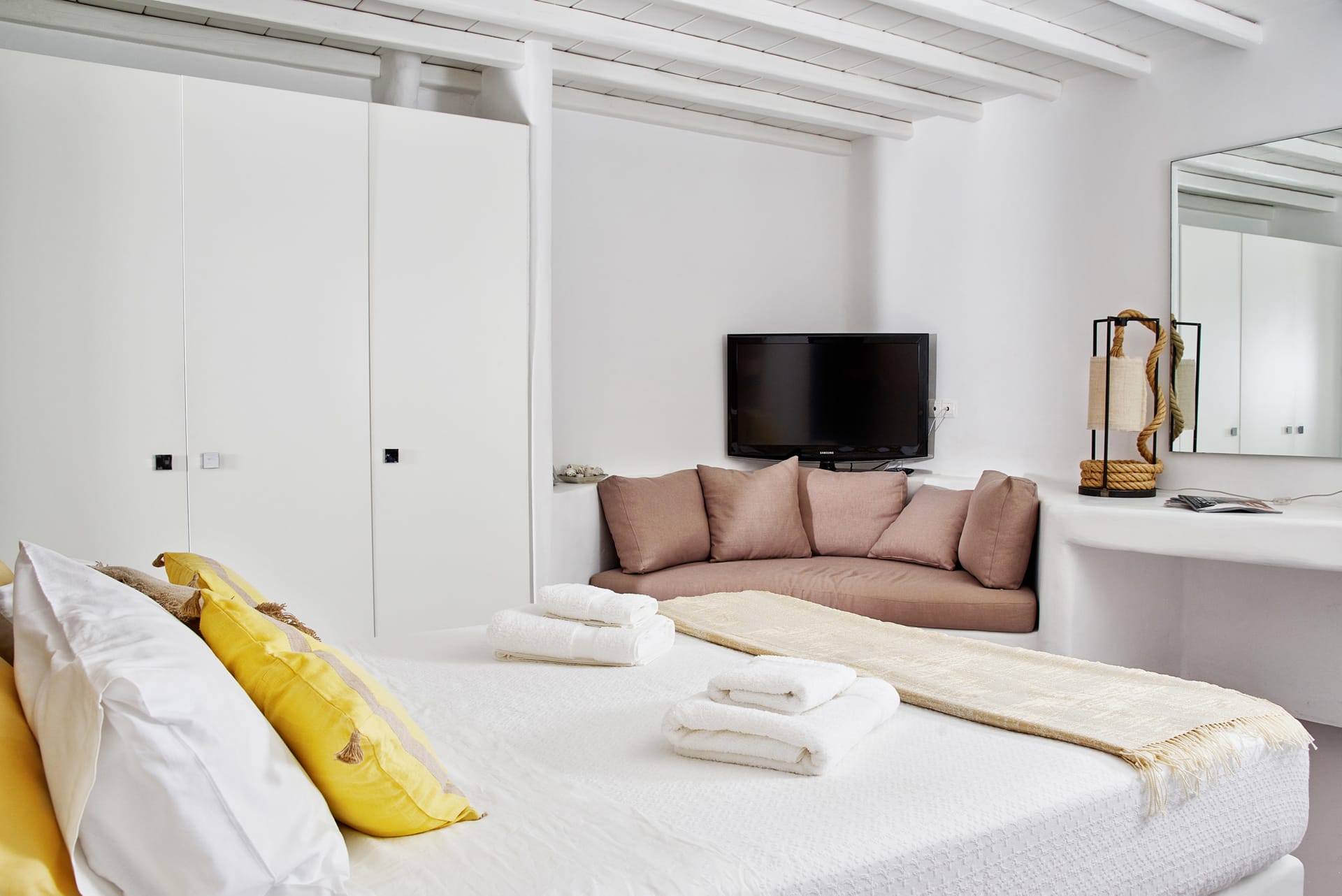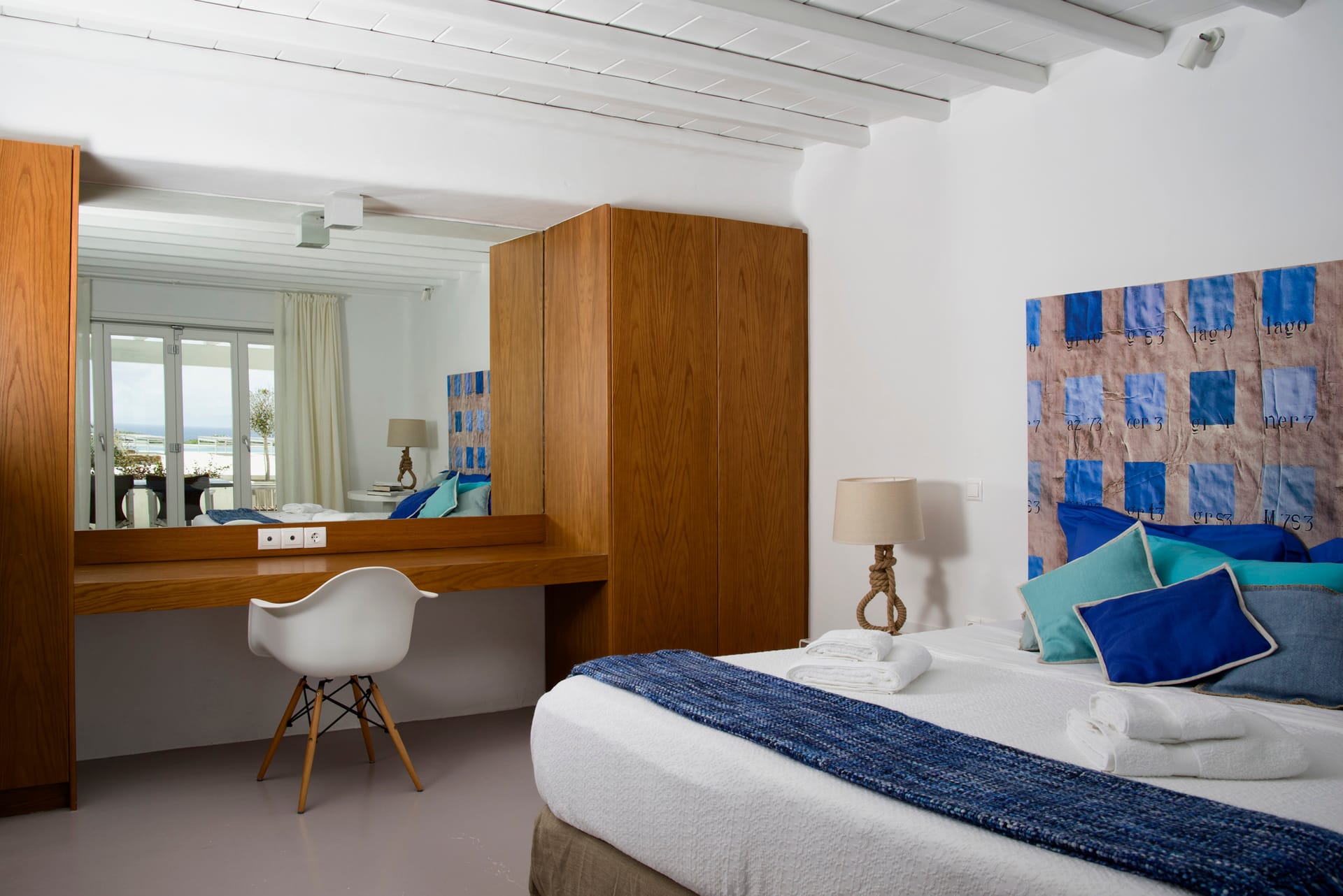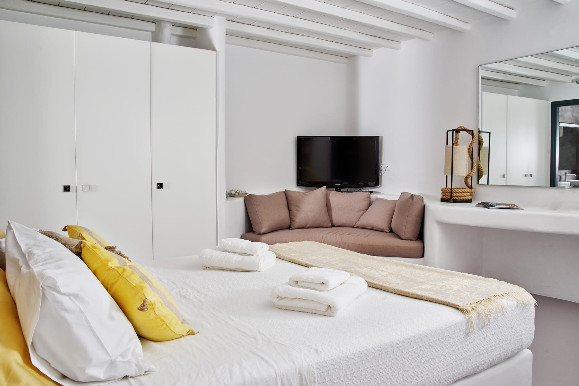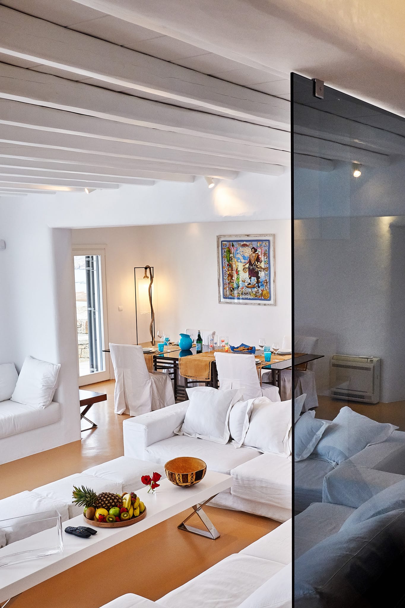 The latter beach is just a short drive away just as the village of Ano Mera is perfect for day-to-day groceries and more traditional culinary experiences.