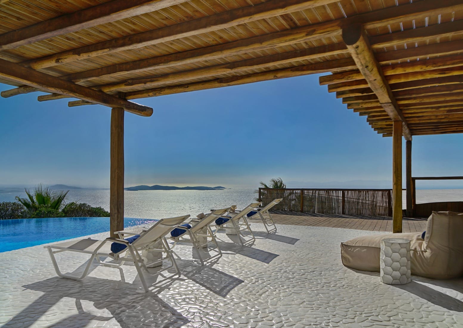 Sunbeds and Verandas: Lounge on sunbeds throughout the outdoor spaces and relax on the private veranda facing the sunset.