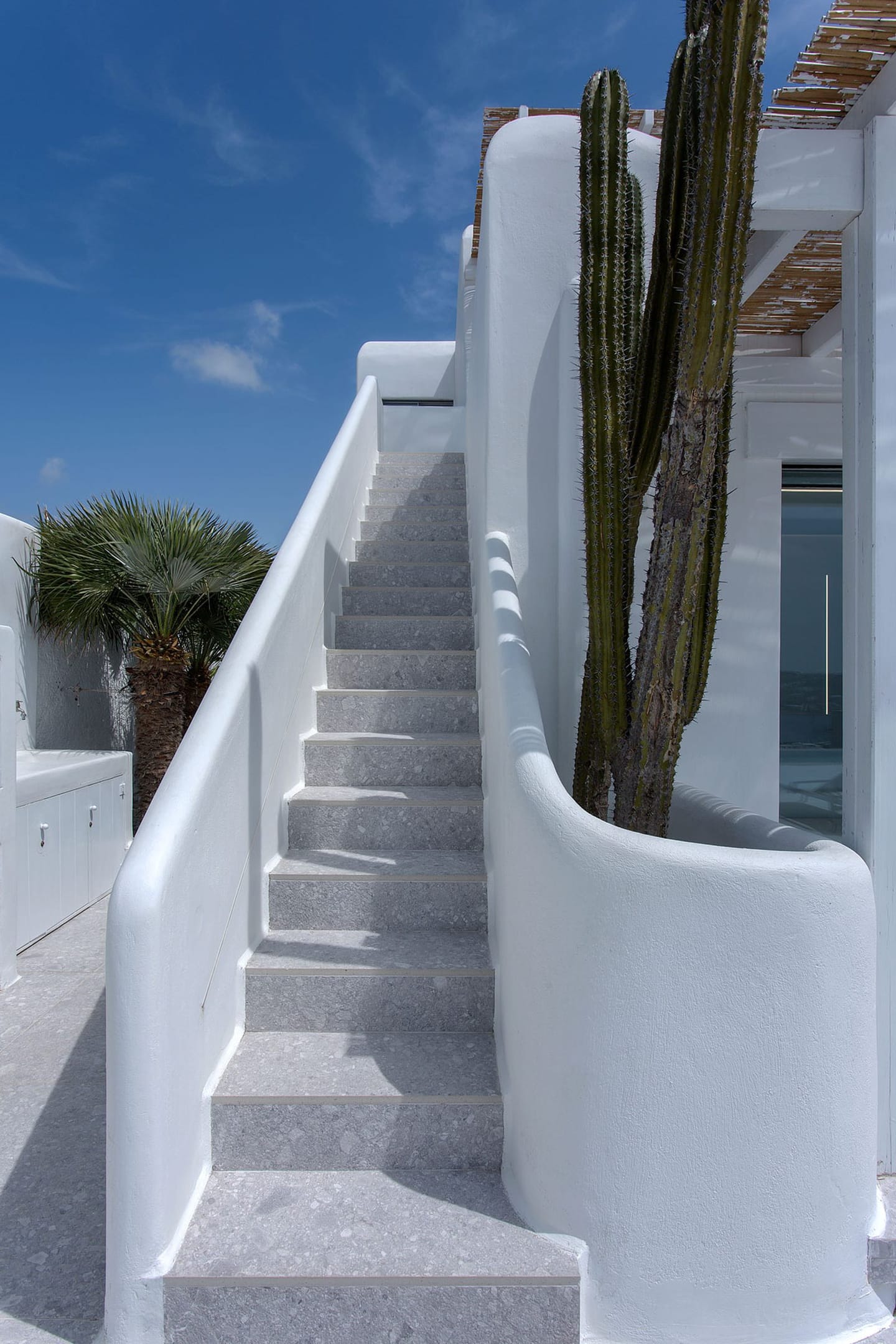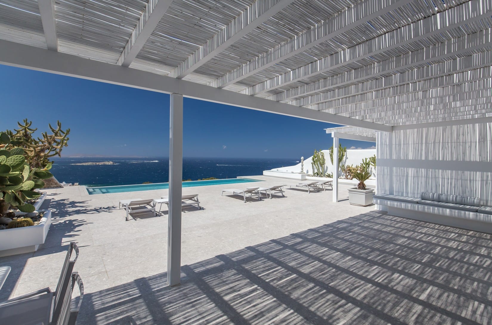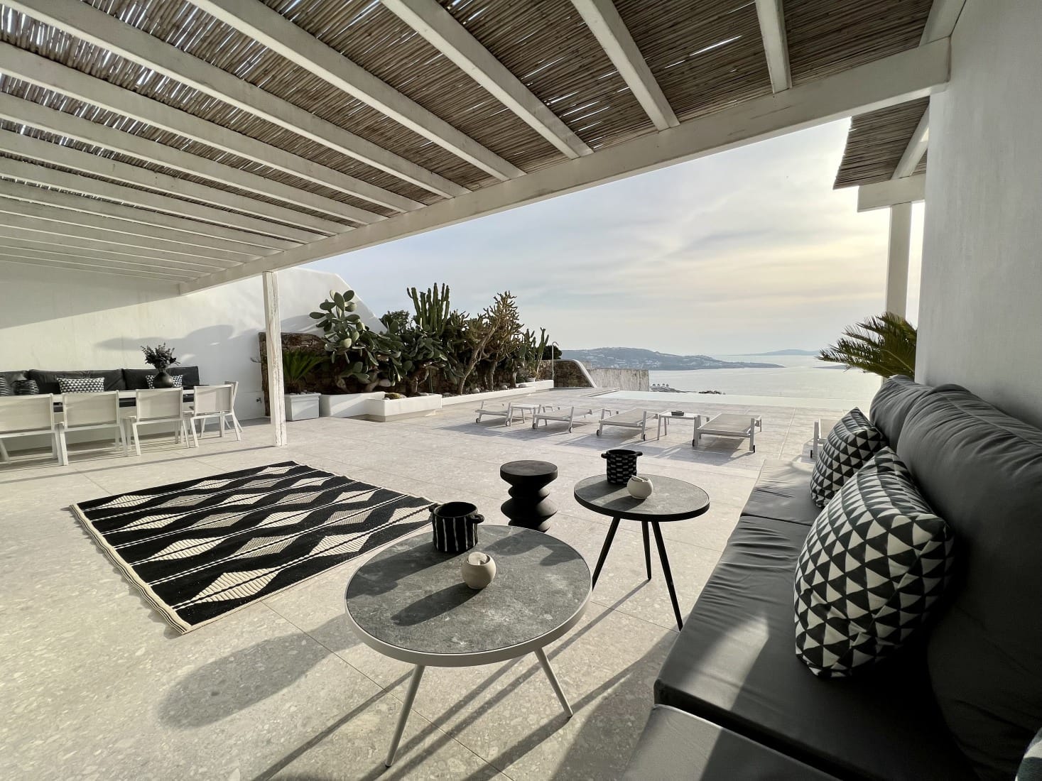 The Villa is settled in an imposing location providing unobstructed 270 0 views of Agios Stefanos, the islands of Paros. Antiparos & Tinos, and the cosmopolitan Mykonos town.