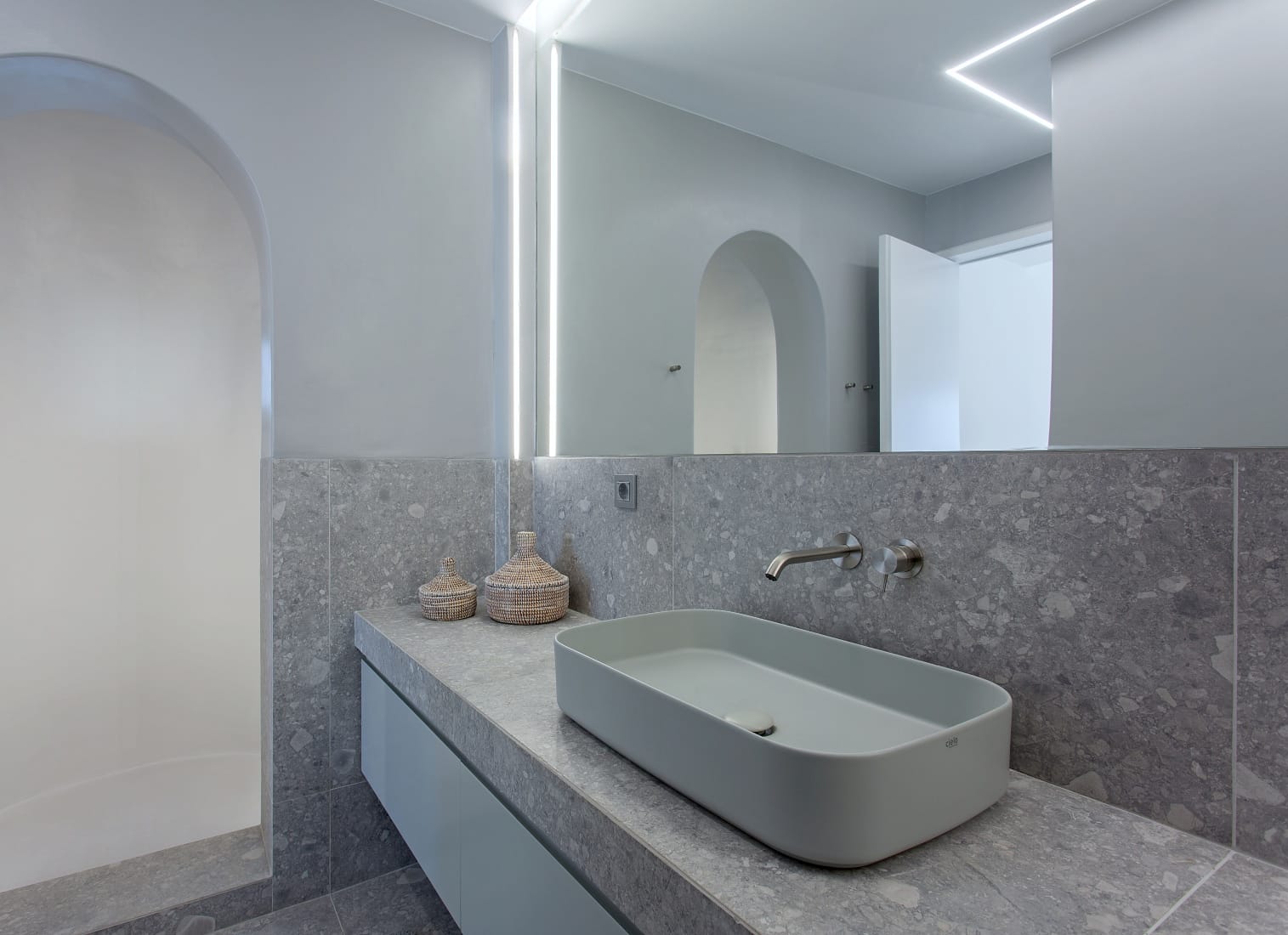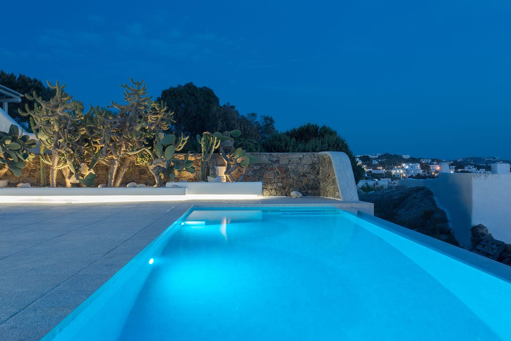 The outdoor area is the hidden gem of Villa Ventura! Guests can relax next to the 40m2 bio-pool while enjoying the tranquility and elegance of the surroundings. The large pool features a resistance swimming system, a hydro-massage operated by a remote control, and a choice of different color illumination scenarios. Breathtaking sea & island views and panoramic sunsets will captivate even the most demanding guests.