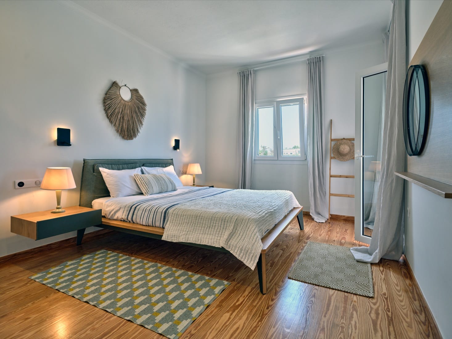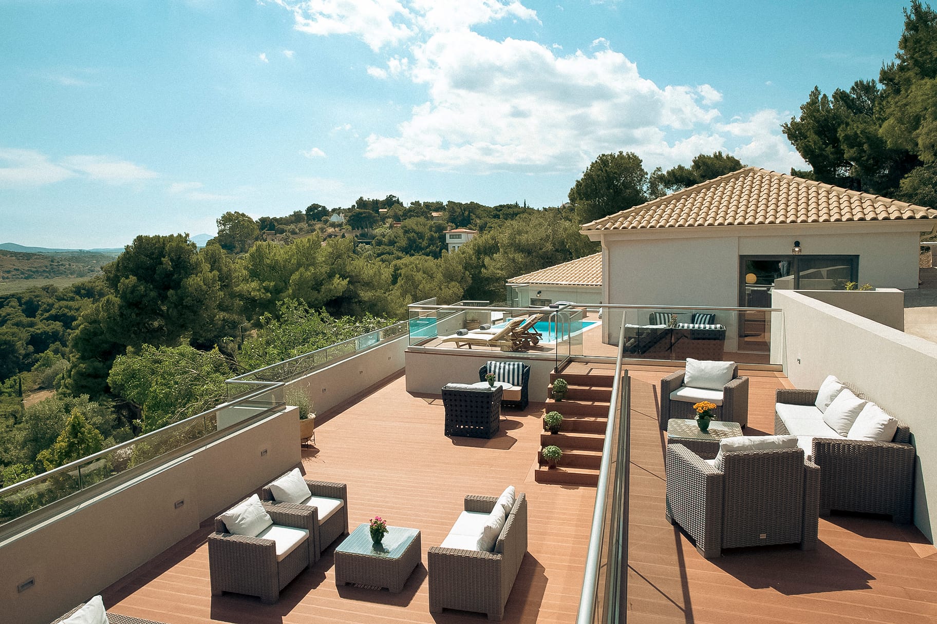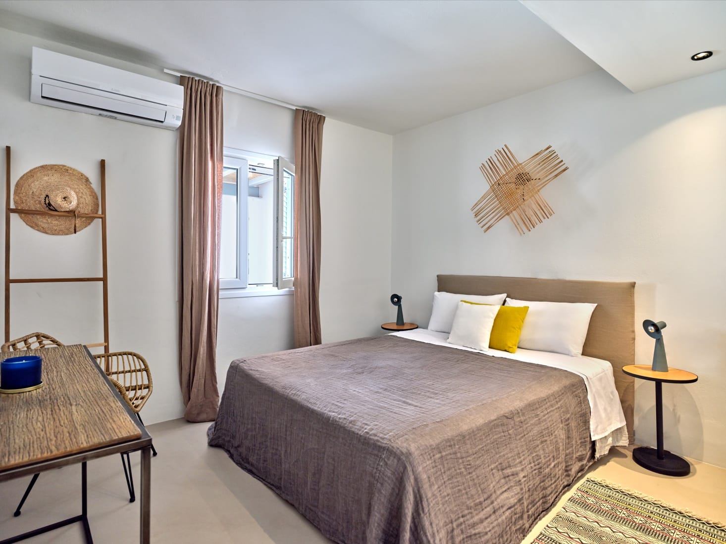 In the master bedroom, you can access the rooftop area which has a two-person sunbed and a corner bench, making it the perfect place to catch the beautiful Parian sunset.