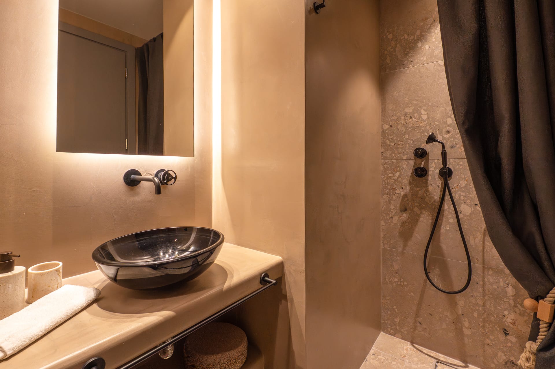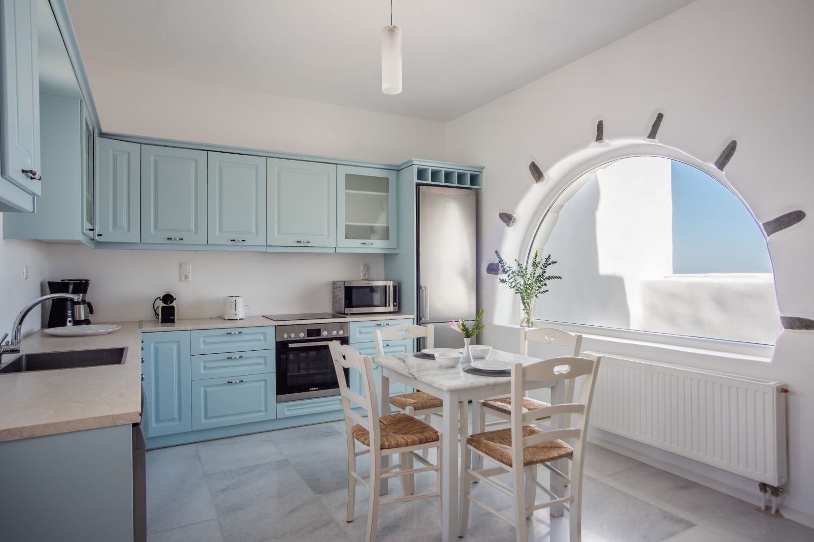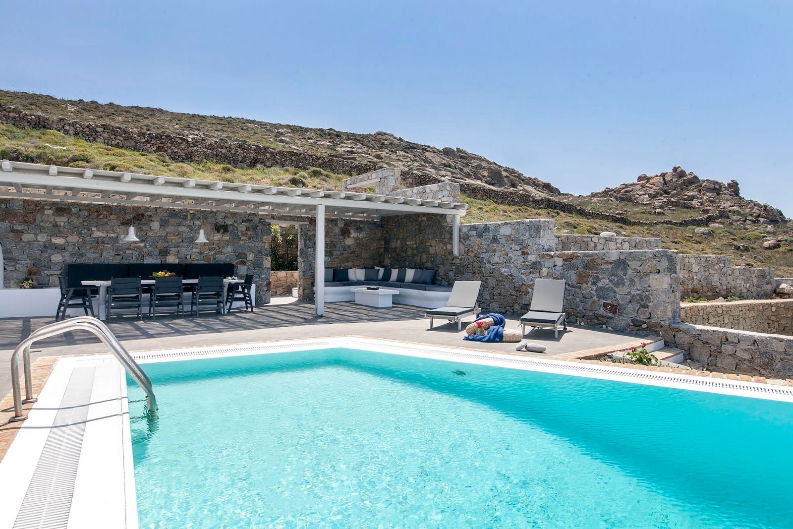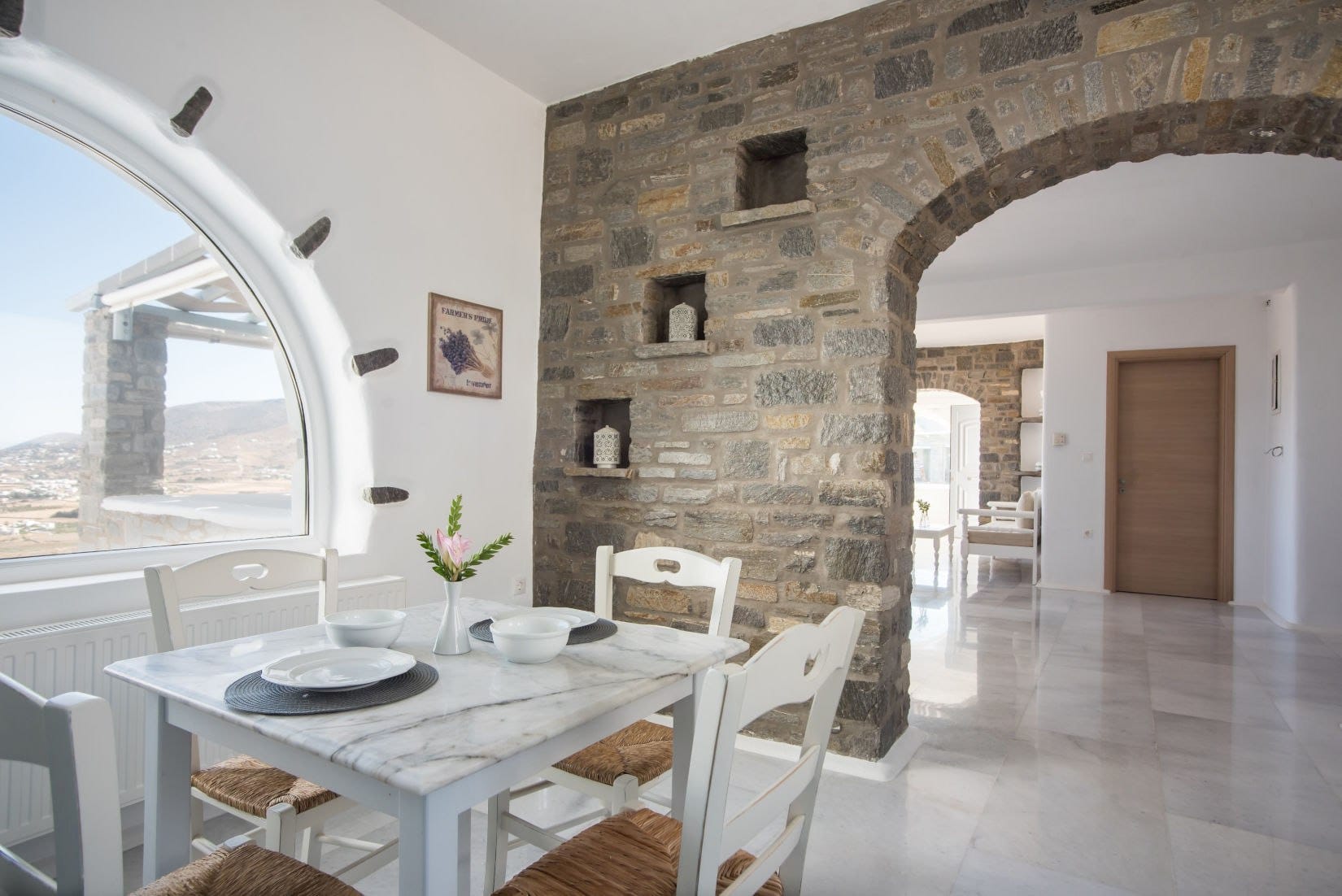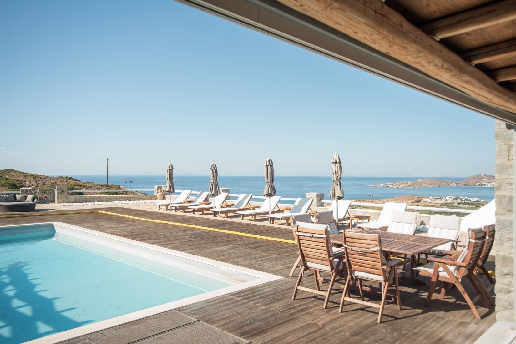The outdoor area with the private swimming pool with lounge and dining areas, is a great spot for moments of relaxation while gazing the spectacular views of Paroikia bay as well as the Aegean Sea.
