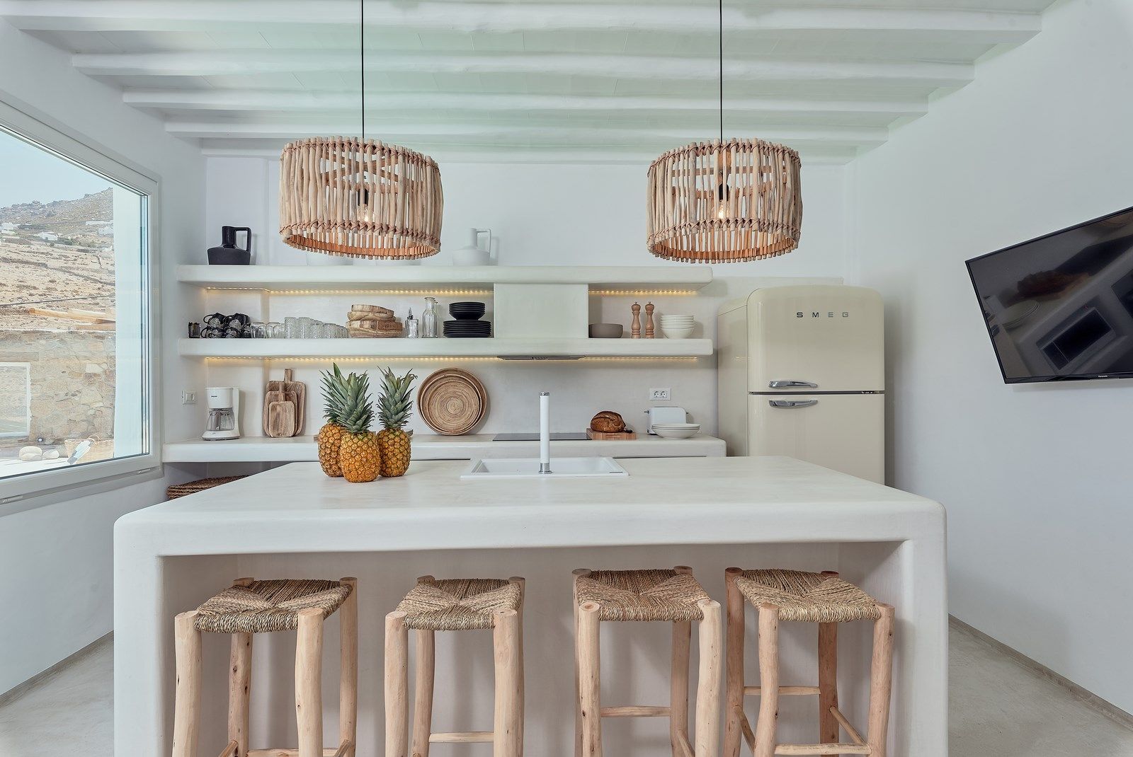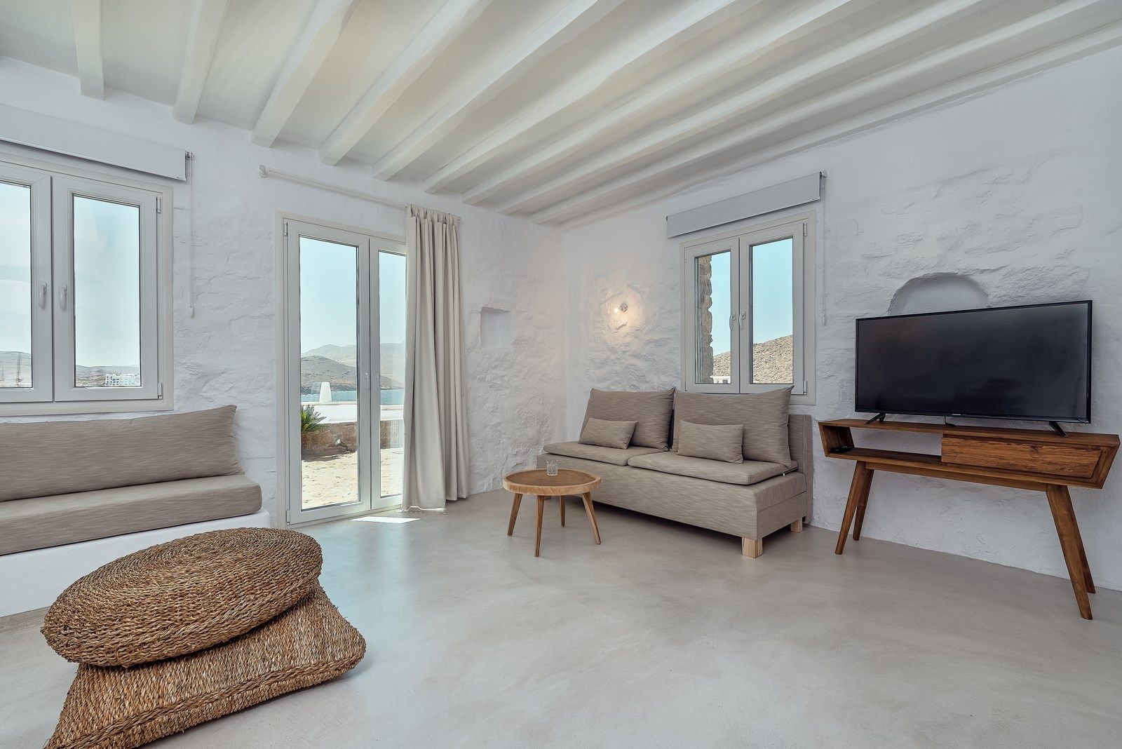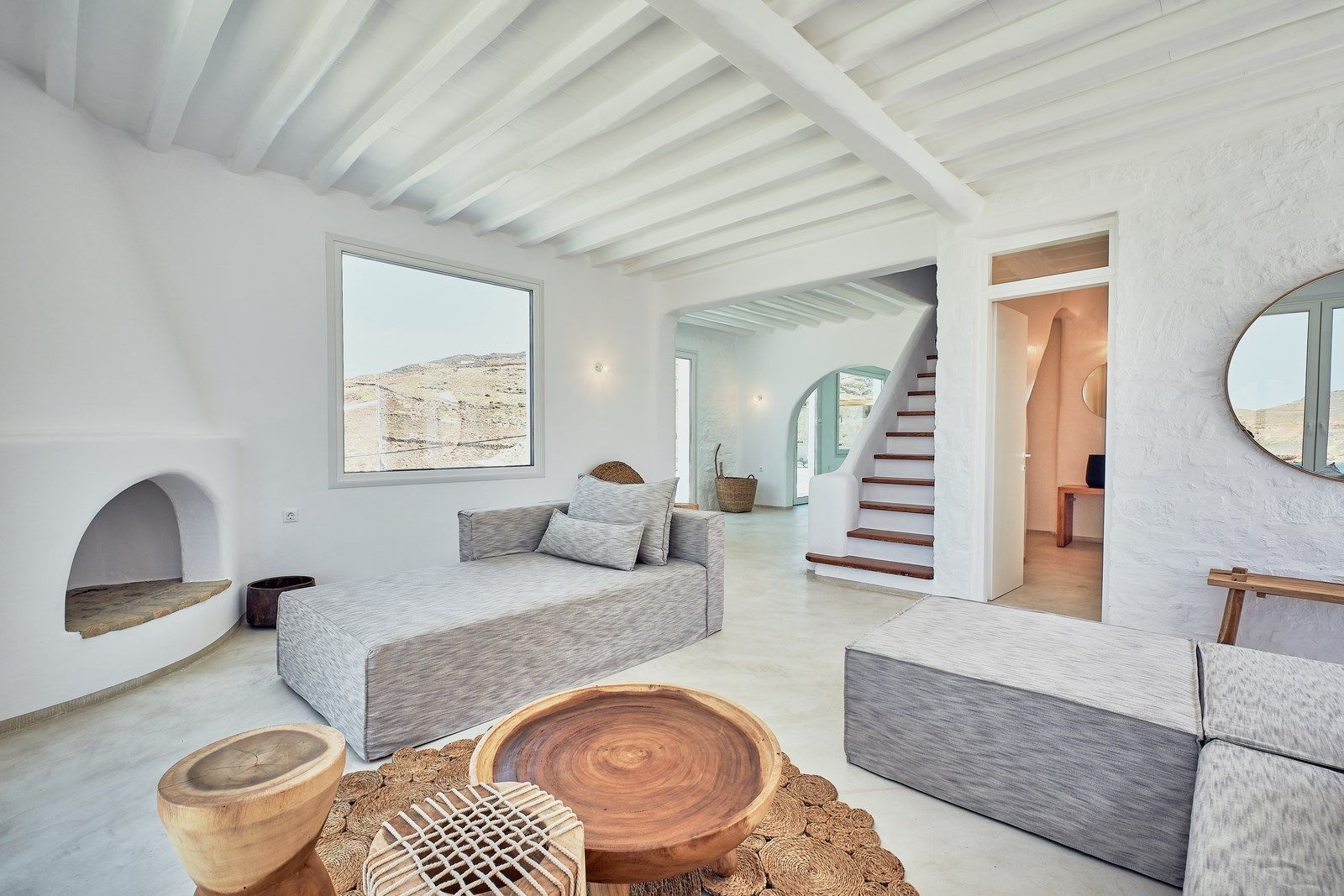 This beautiful Villa Complex comprises 4 unique three-bedroom independent villas, all with minimal Cycladic decoration, sharing a large outdoor swimming pool and the beautiful outdoor spaces that provide unforgettable views of the Aegean Sea and the famous Cycladic landscape