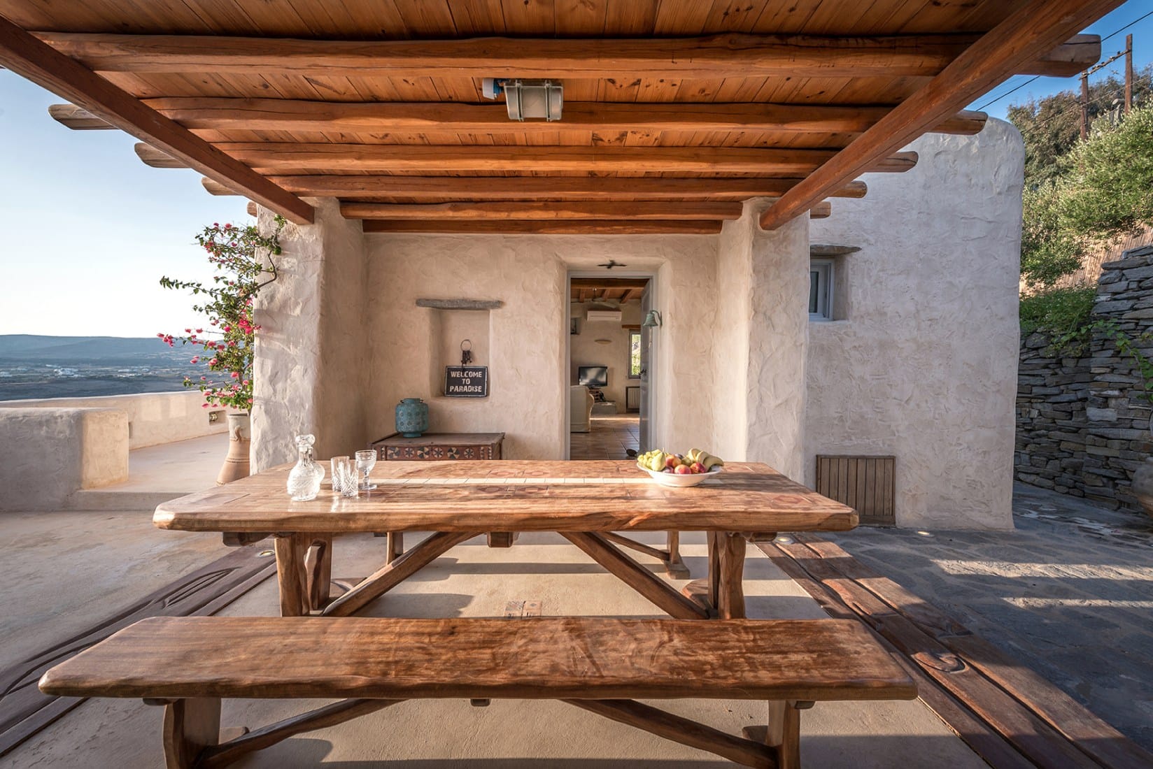 The most impressive spot of the house is the swimming pool surrounded by a large terrace area that offers panoramic views. It is an idyllic relaxing and drinking spot of the house and It overlooks the Aegean the nature of the rocks and the ancient Acropolis.