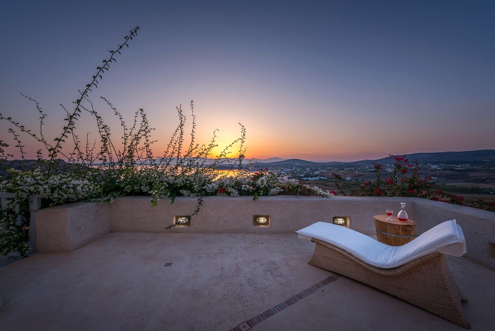 Villa Ninemia is a 6 bedroom luxurious villa situated just a short walk from Kolybithres sandy beach. It offers amazing sea views of the bay in the front, nice views of Naoussa town, as well as views of Naxos island. You can also see the ancient ruins of Mycenaen Acropolis from the villa.