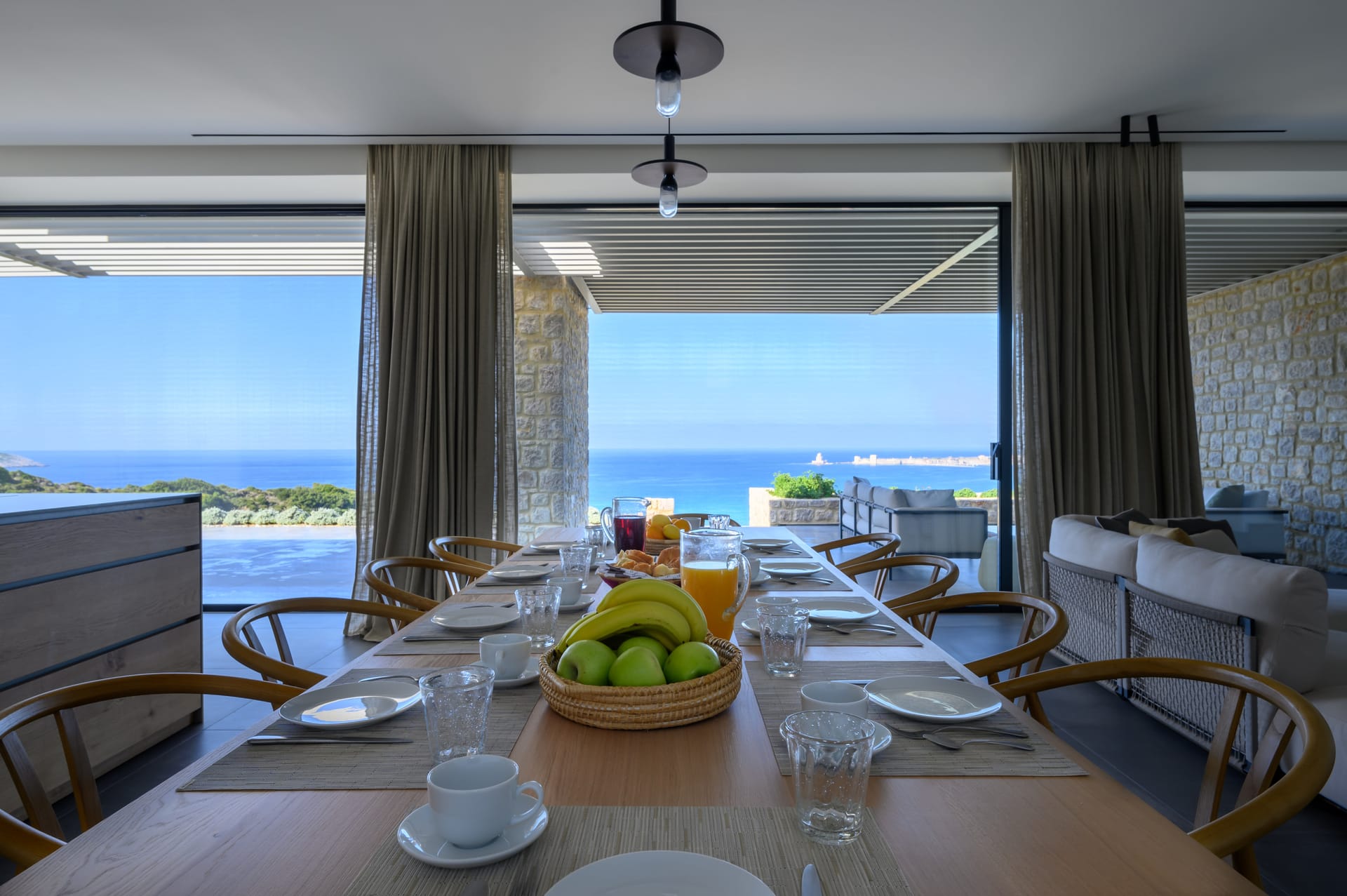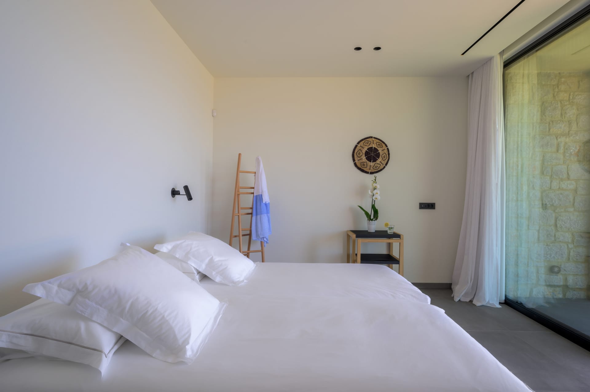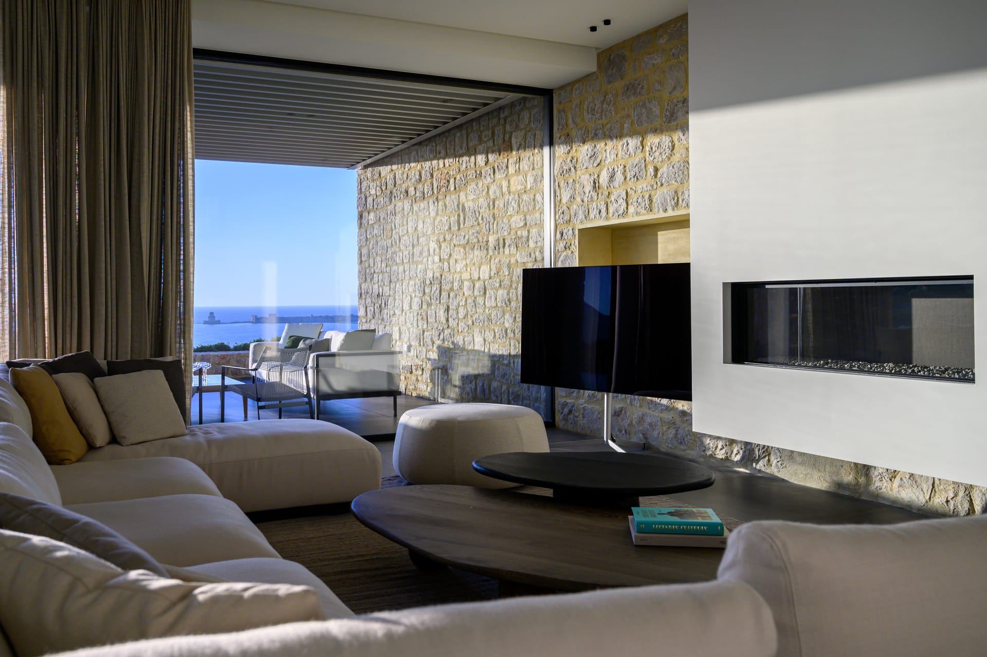 The outdoor area, includes a private swimming pool offering panoramic views over the sea, sunbeds, and an exterior dining area where guests will enjoy culinary explorations! Villa Brusite will captivate its guests with its warm and boho-chic design while offering true moments of tranquility and seclusion.