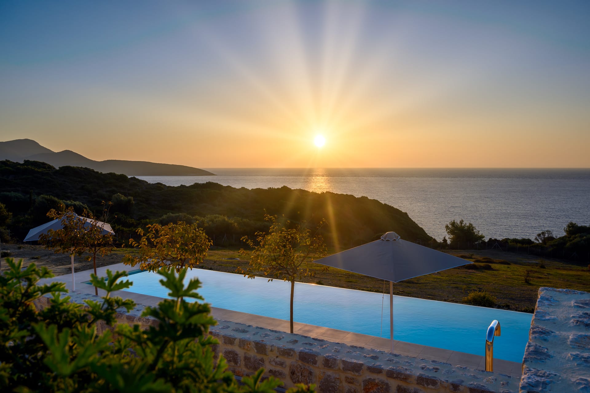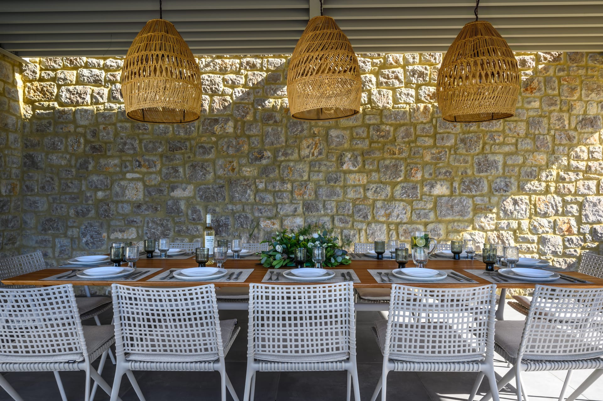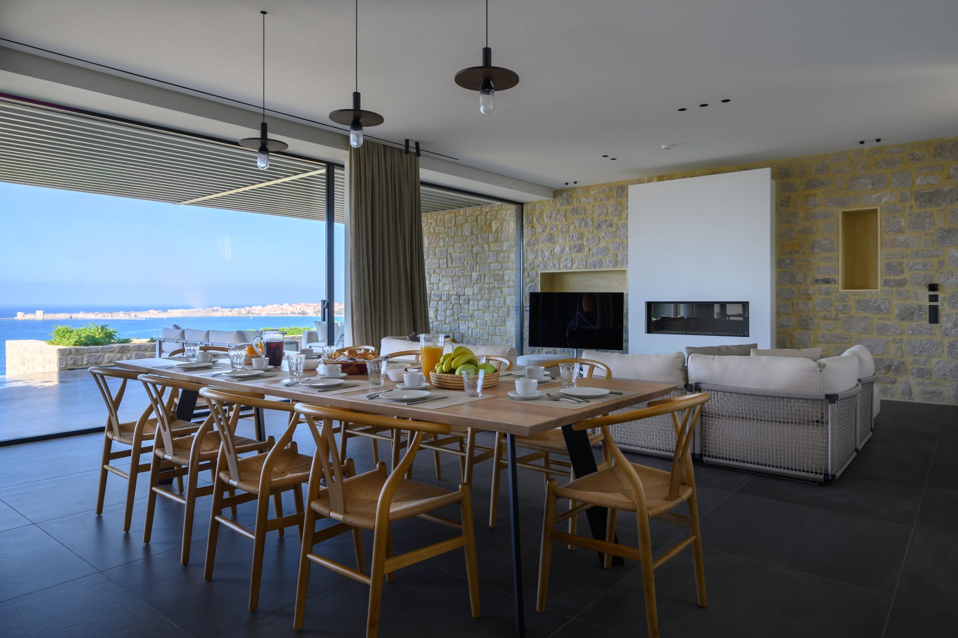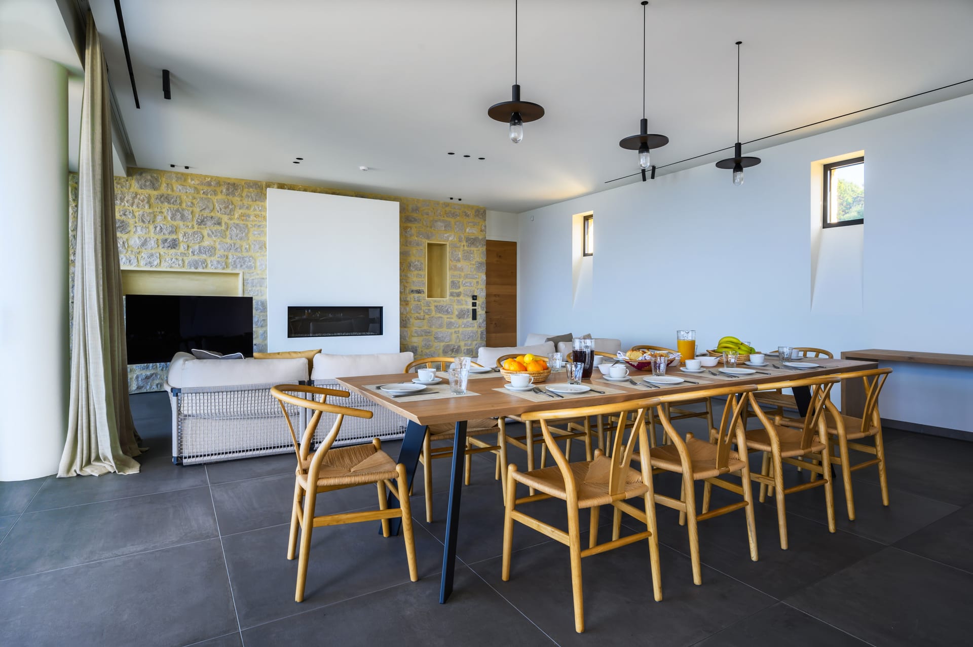 The outdoor area, includes a private swimming pool offering panoramic views over the sea, sunbeds, and an exterior dining area where guests will enjoy culinary explorations! Villa Brusite will captivate its guests with its warm and boho-chic design while offering true moments of tranquility and seclusion.